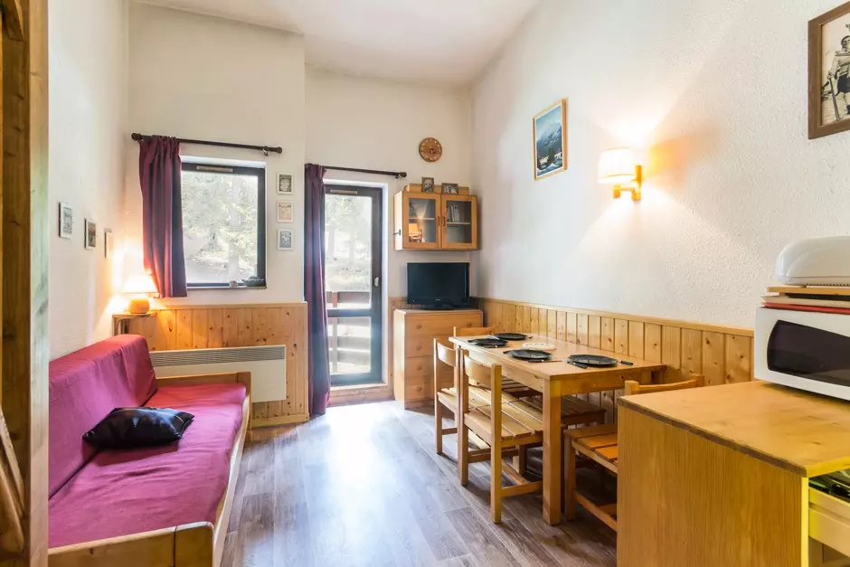 35m² mezzanine studio close to the slopes for 6 people. It is located on the 3rd floor of building A1 and has a north-facing balcony.