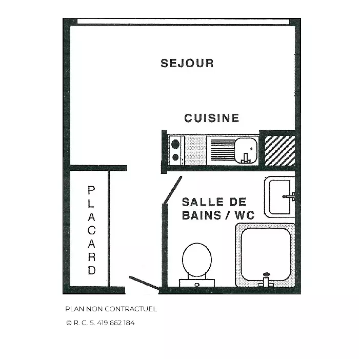 Les Combes No. 744, studio, 2 people, 13m², 7th floor with elevator; no balcony, north facing