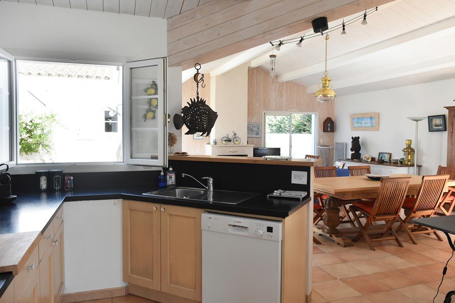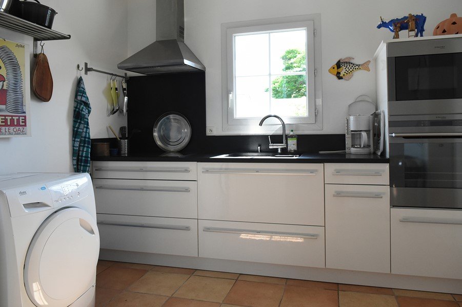Kitchen equipped, back kitchen, with oven, washing machine, large fridge, dishwasher,