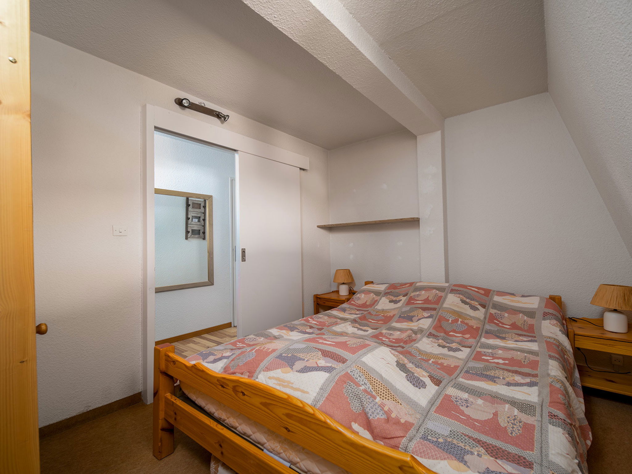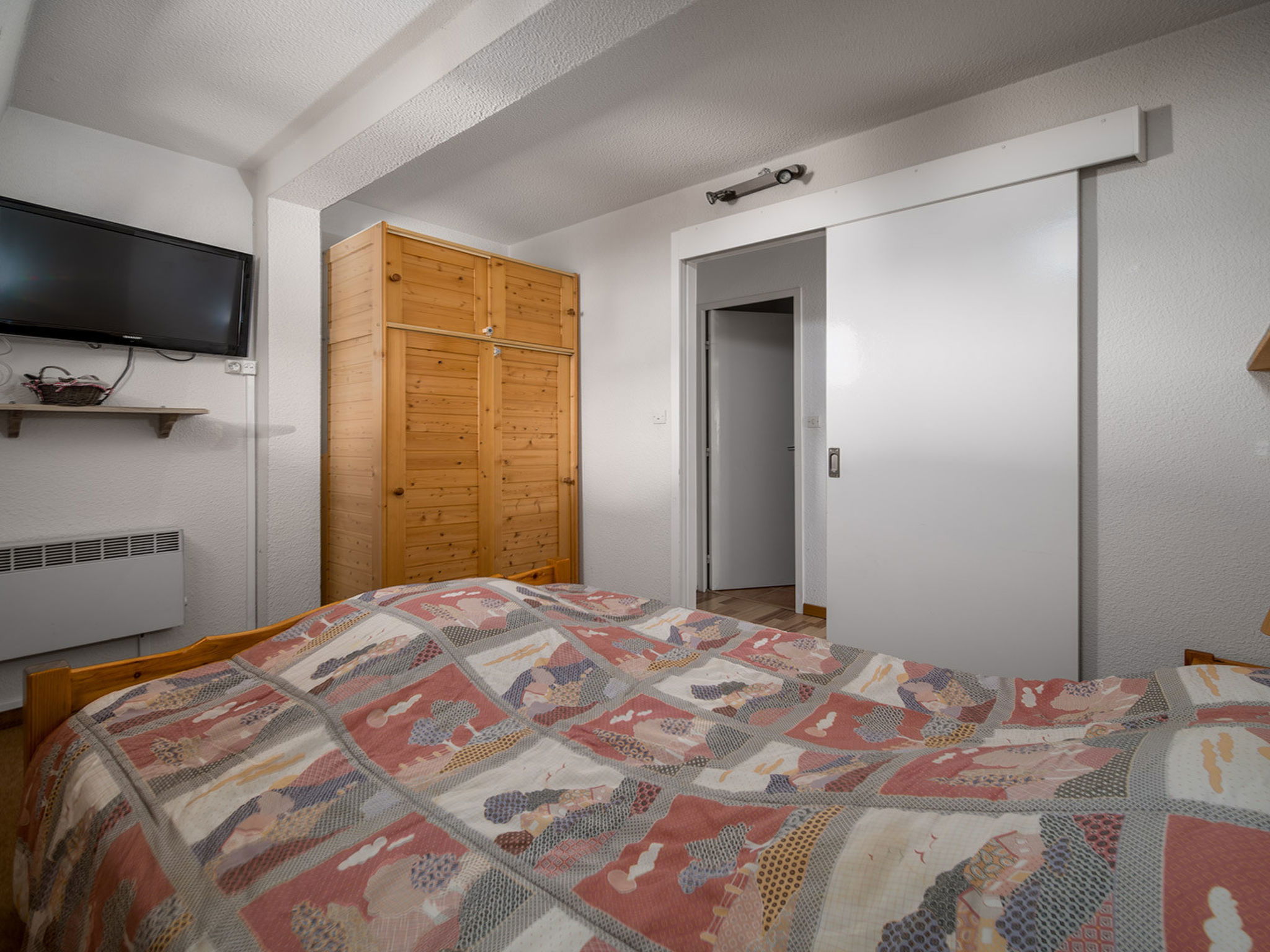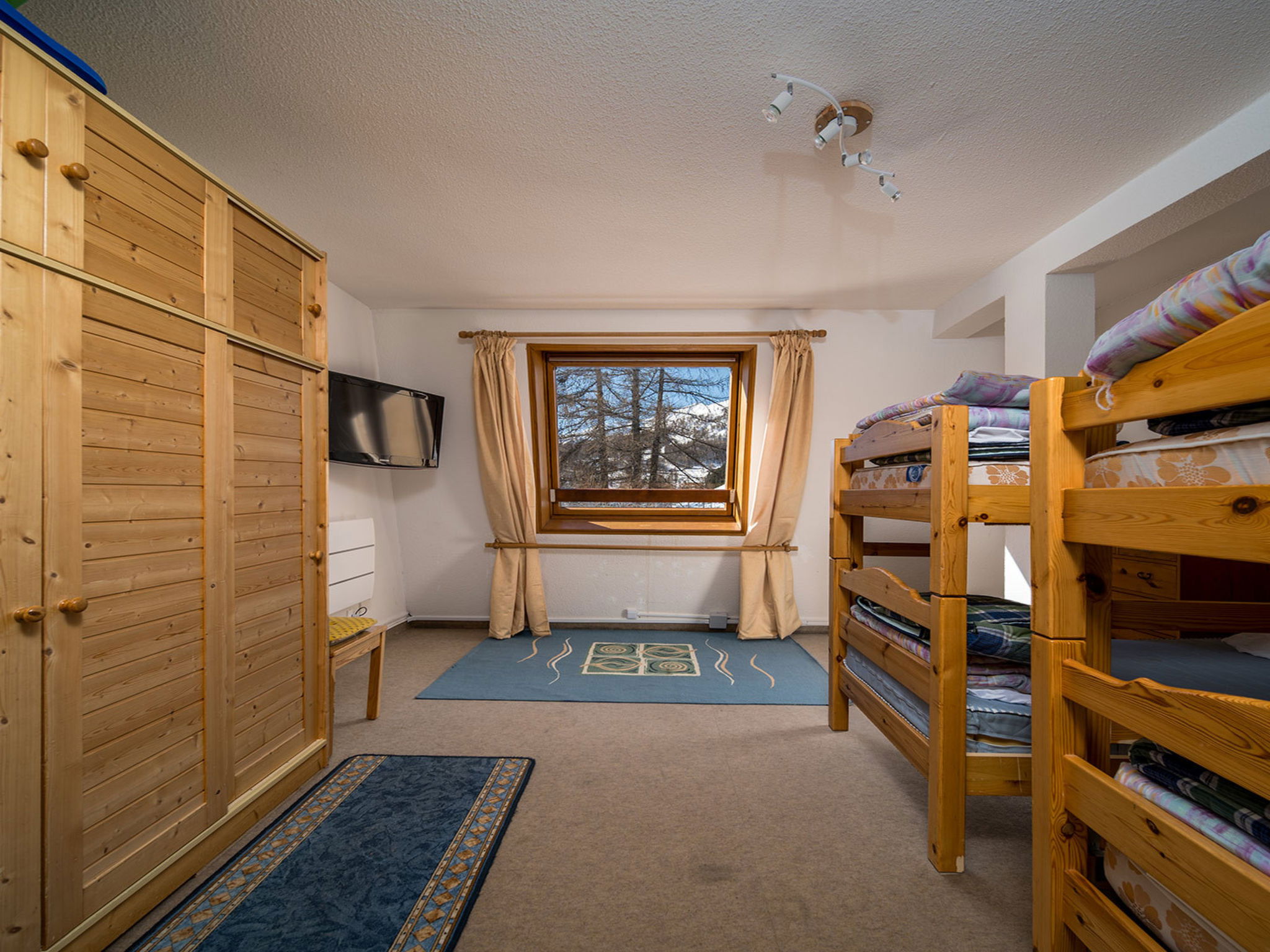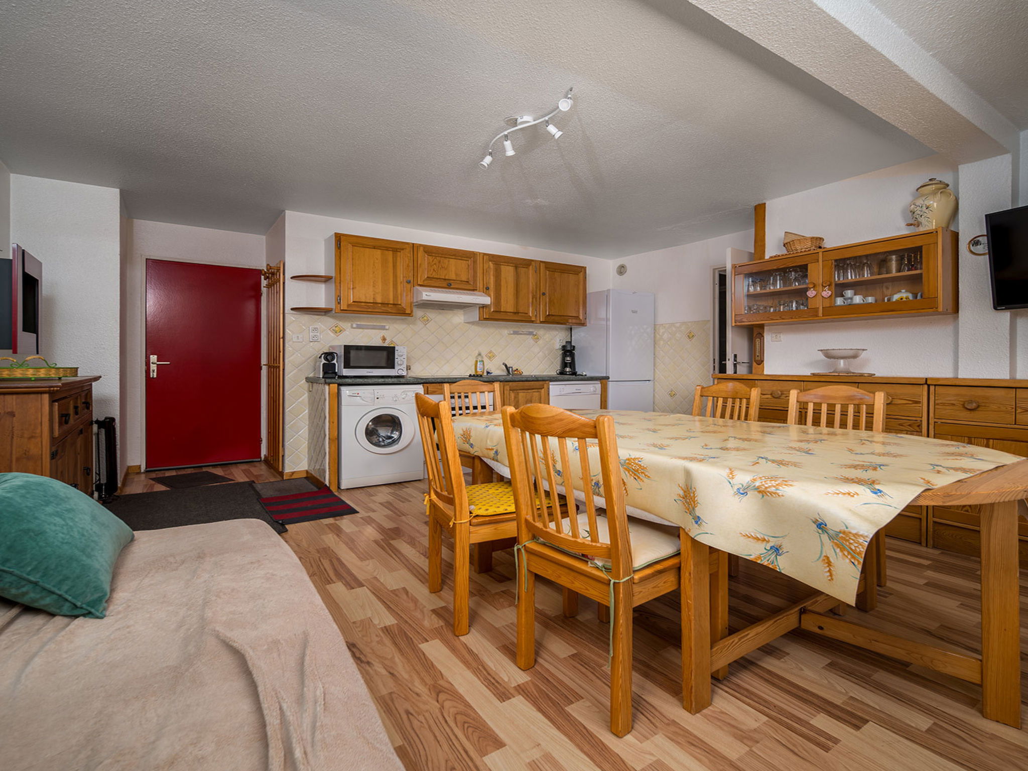 "Les Etoiles D", 3-room apartment 60 m2 on 2nd floor. Object suitable for 8 adults. 1 room with 2 x 2 bunk beds, TV. 1 room with 1 double bed and TV. Living room with 1 sofabed, 1 pull-out bed and TV. Open kitchen (4 hot plates, oven, dishwasher, toaster, microwave, freezer, electric coffee machine). Shower/WC. View of the mountains. Facilities: washing machine. Please note: non-smokers only. Smoke alarm. Offer by a commercial proprietor according to Art. 155, IV, CGI 04006000387CI