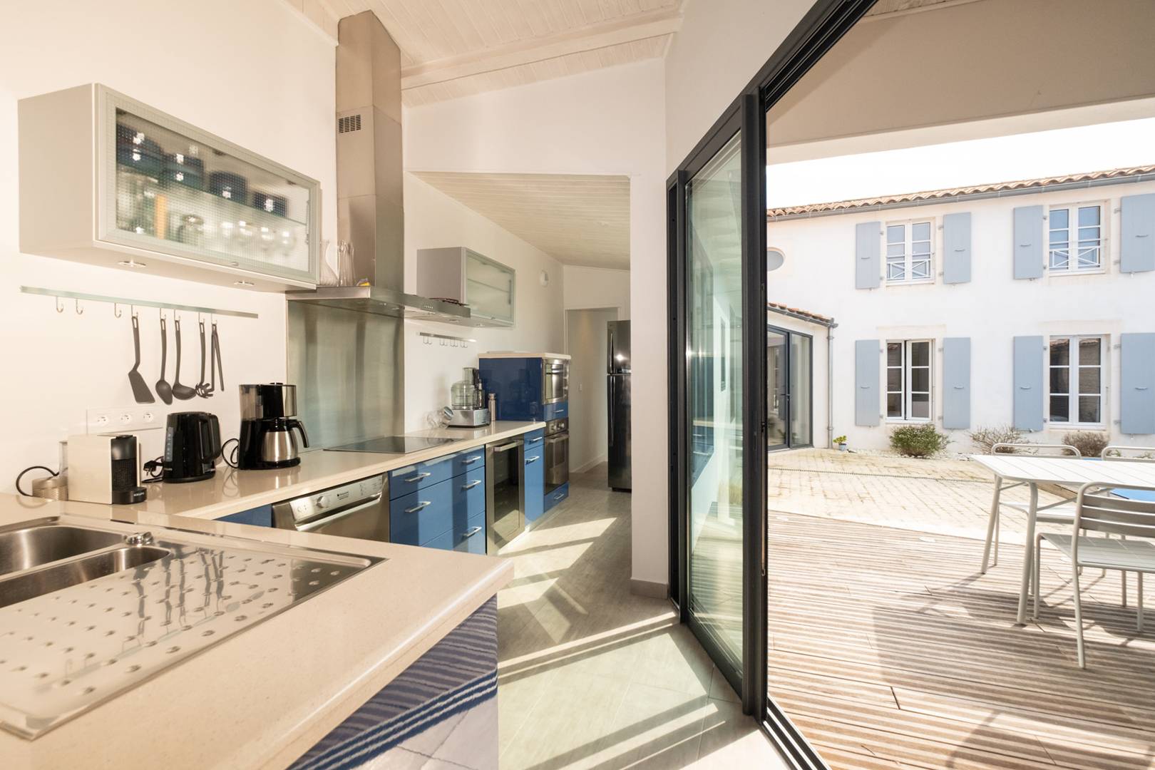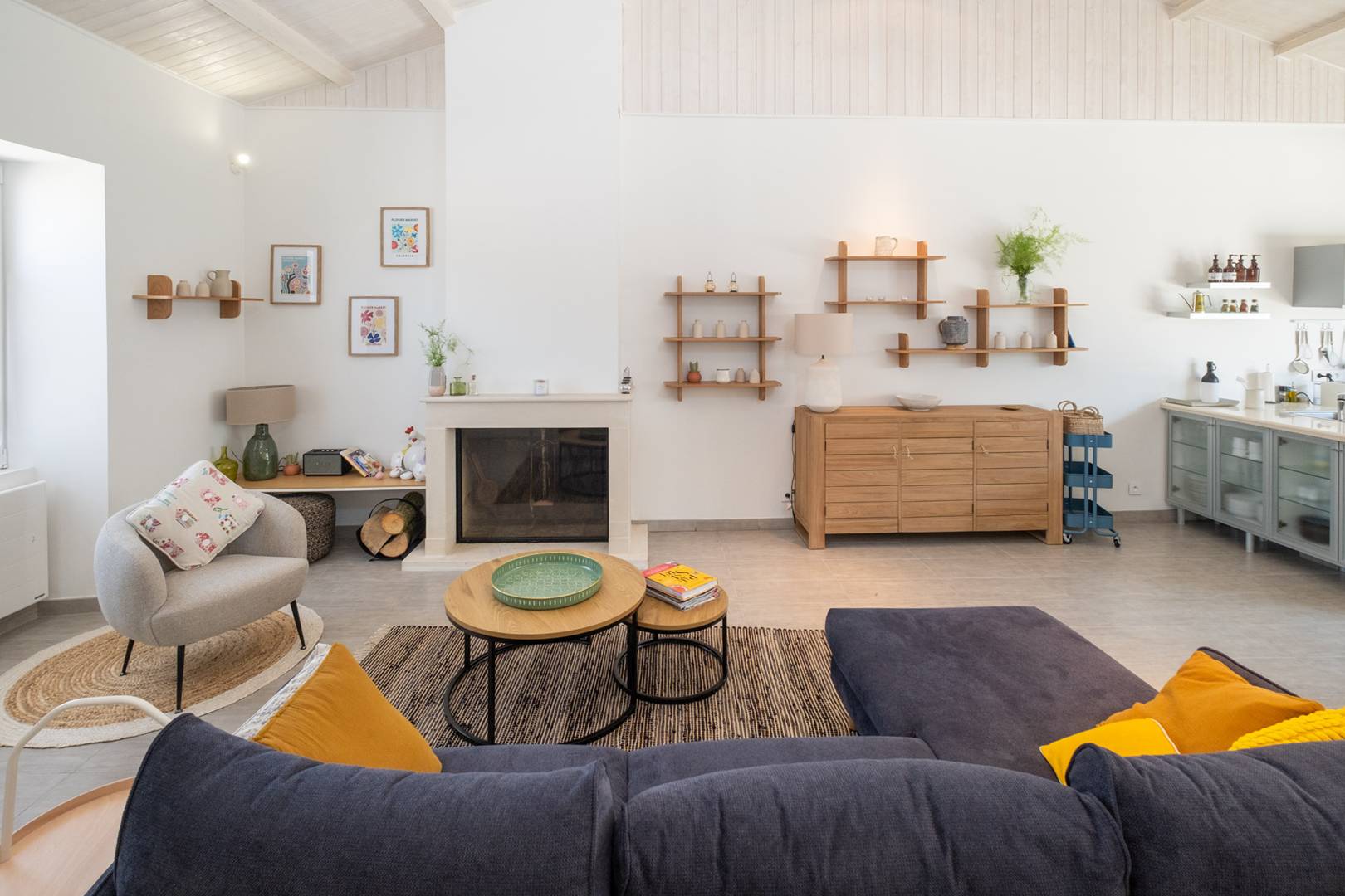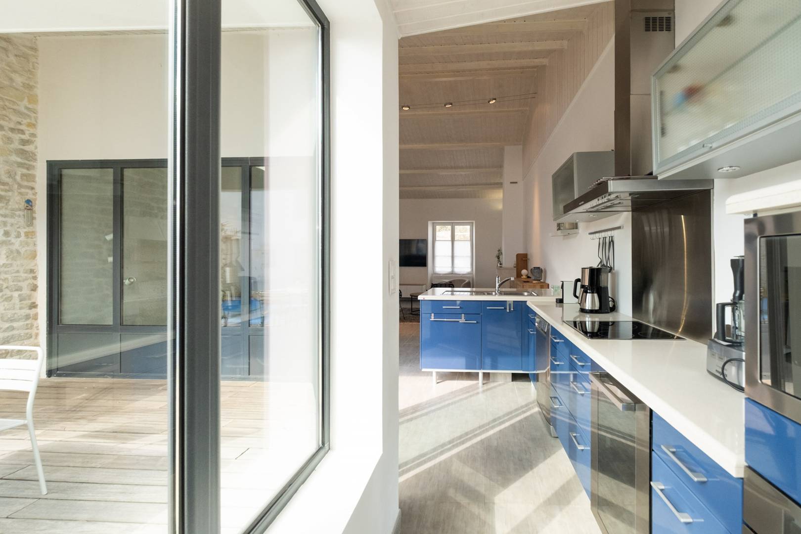 Fully equipped open-plan kitchen opening onto the living room
