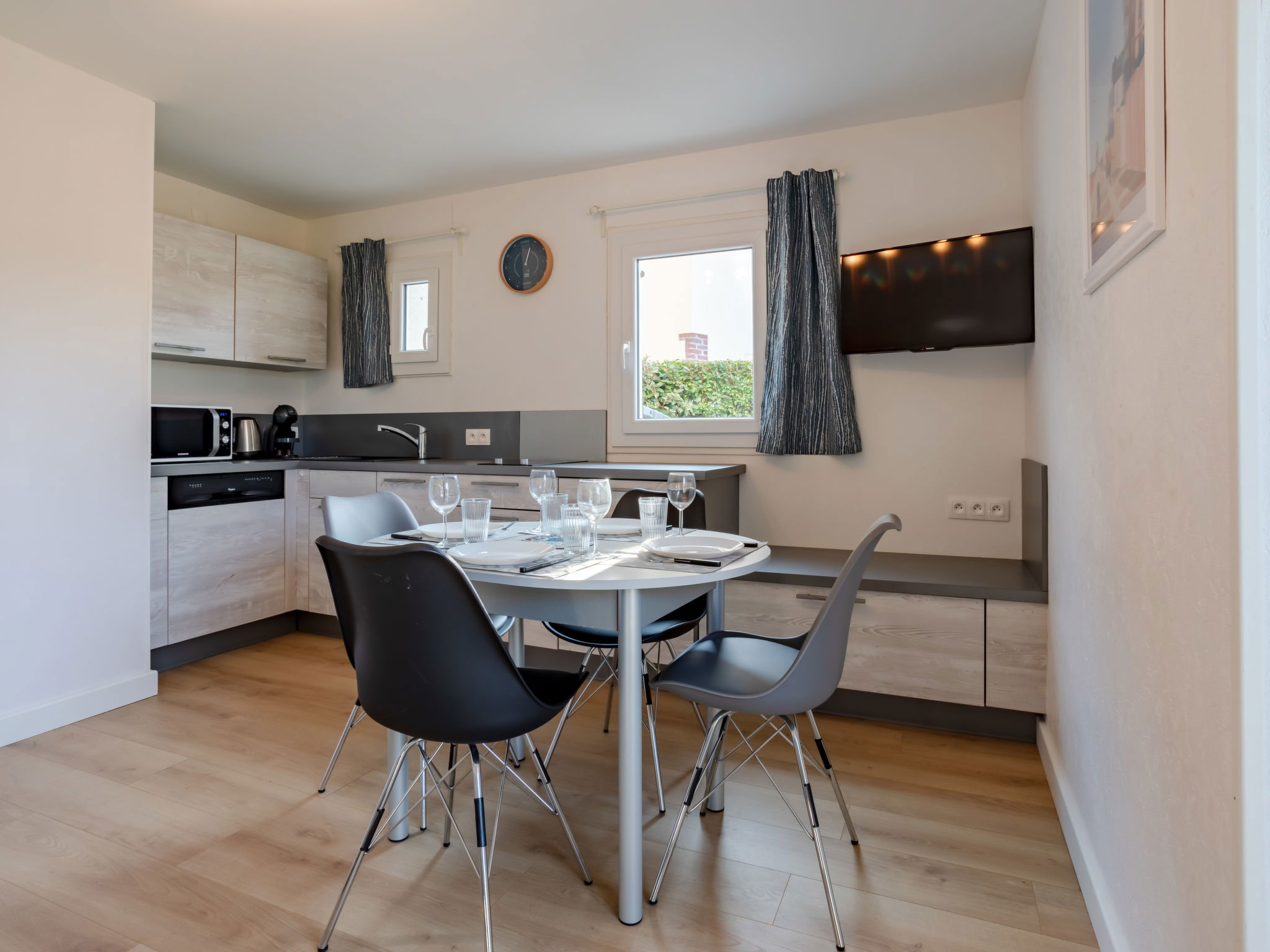Residence "Thalassa". In the resort 500 m from the centre of Houlgate, 550 m from the sea, 550 m from the beach. Shop, grocery 500 m, supermarket 4.7 km, restaurant, bar, bakery, café 500 m, bicycle rental 4 km, bus stop "Houlgate Mairie" 400 m, sandy beach 550 m, thermal baths "Thalazur Cabourg" 5.8 km. Sports harbour 3 km, golf course (18 hole) 450 m, tennis 1.2 km, minigolf 5.5 km. Nearby attractions: Deauville 15 km, Honfleur 33 km, Caen 35 km. The keys‘ handover takes place by the agency in Cabourg, 5 km.