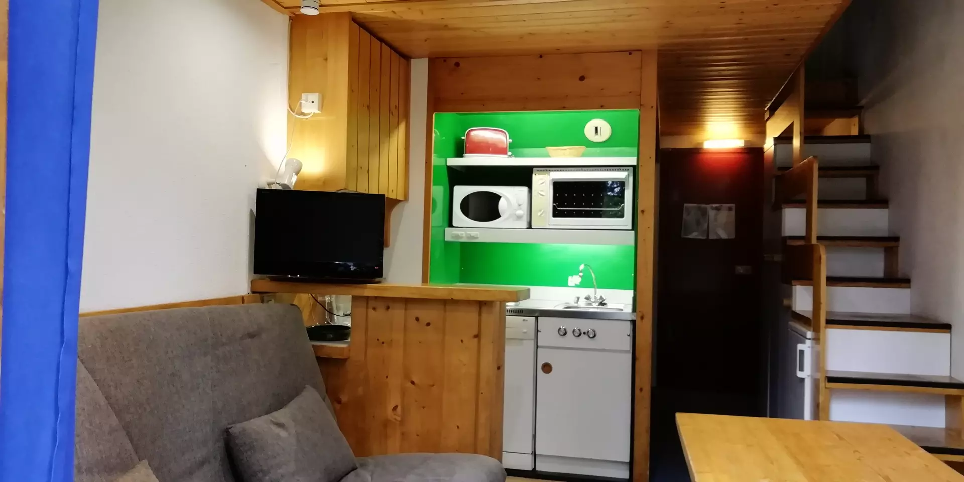 For your skiing holiday or summer vacation in Les Arcs 1800, book this duplex studio with a balcony and southwest exposure.