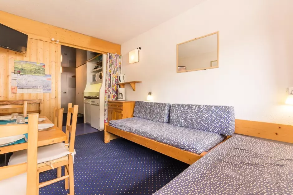 Furnished studio for 4 people, with a surface area of 24m², located at the foot of the slopes and shops, in the Les Lanchettes d'Arcs 2000 residence.