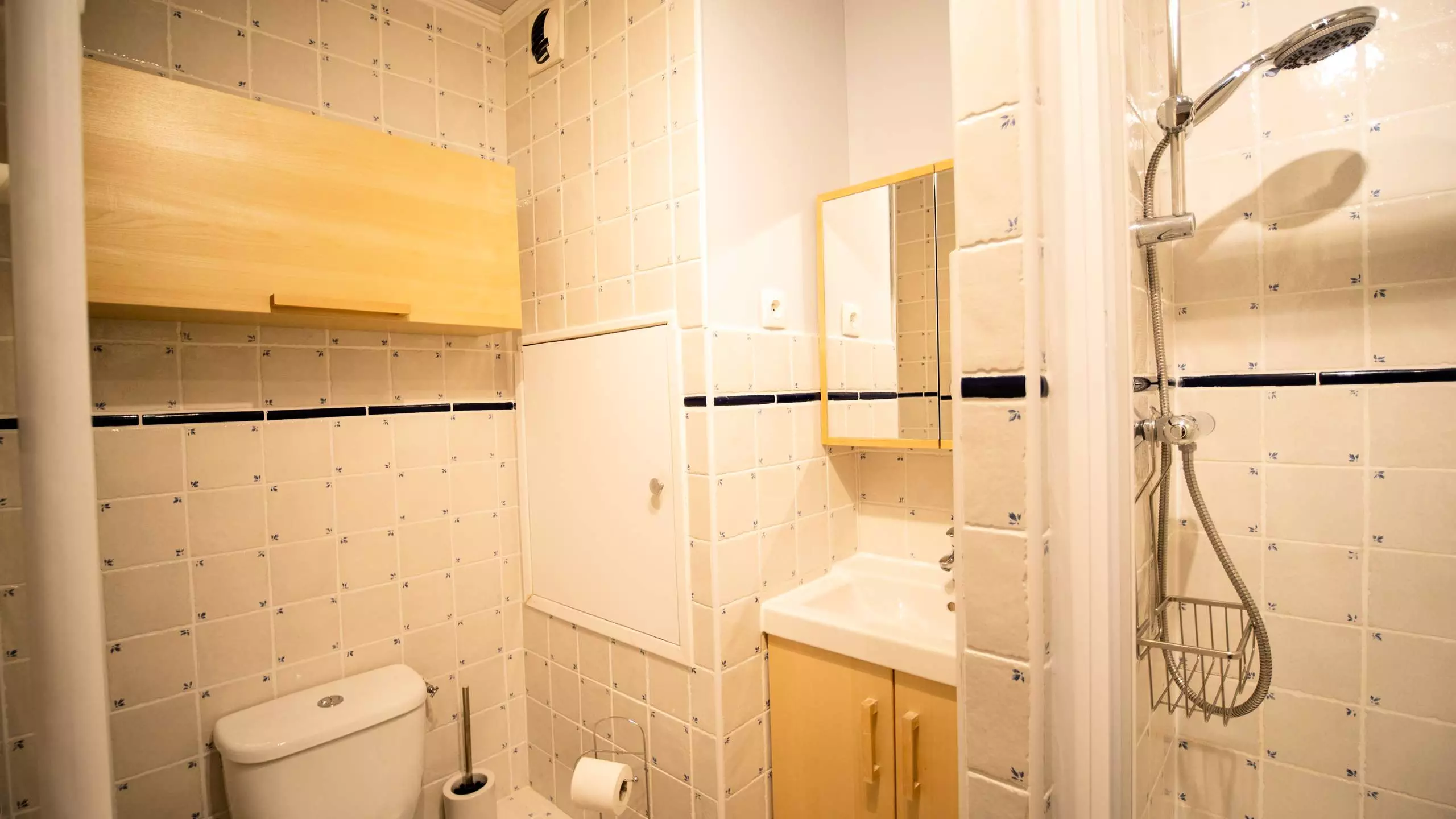 - A bathroom with a toilet.