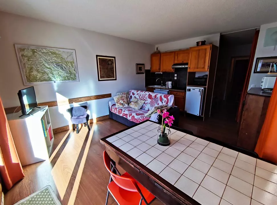 CM301 1* 40 m² apartment, sleeps 6, well-equipped with covered garage. In a mountain residence at the top of the resort, 5 minutes from the ski lifts. Ski-in ski-out access is at the bottom of the building and a shuttle bus stop in winter.