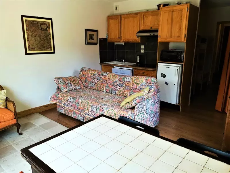 Apartment composed of a living room (with access to a large south-facing terrace), dining area, a pull-out sofa bed in the living room, television; an open-plan kitchen with a mini oven, microwave, 4-burner ceramic hob + extractor fan, refrigerator. Large entrance with 4 bunk beds (reserved for children, not suitable for adults) + 1 single bed; a shower room and separate toilet. No WiFi.