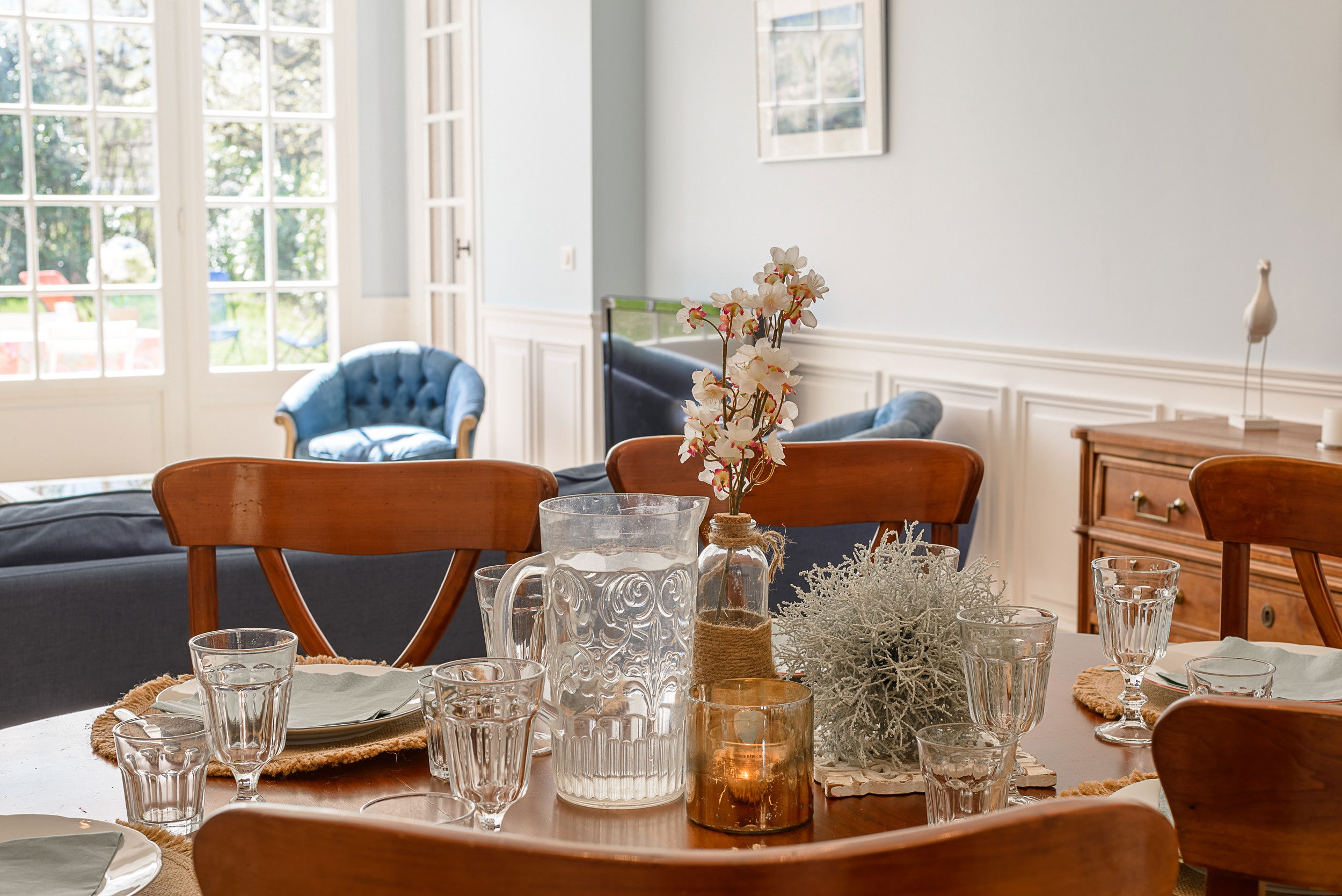 The beds will be made upon your arrival according to the number of registered participants; towels (2 per person), dish towels, bath mats, and welcome products (soap, shampoo, shower gel, dishwashing liquid, a few dishwasher tablets, sponge, rolls of toilet paper per WC) are included in the service, as well as the end-of-stay cleaning.