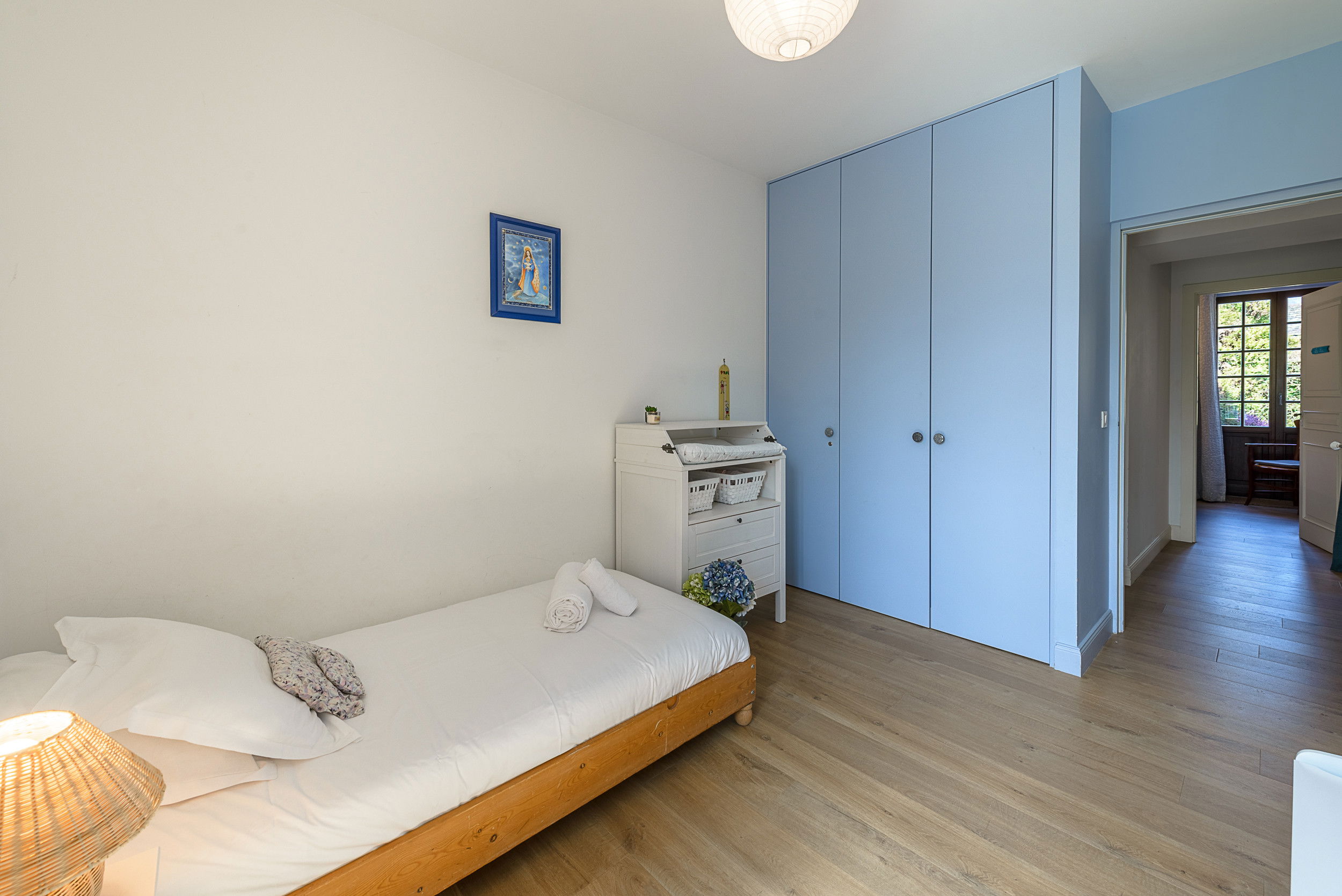 - Bedroom n°2, : 1 single bed 90x200 with access to terrace& garden with storage cupboard, changing table and storage cupboard