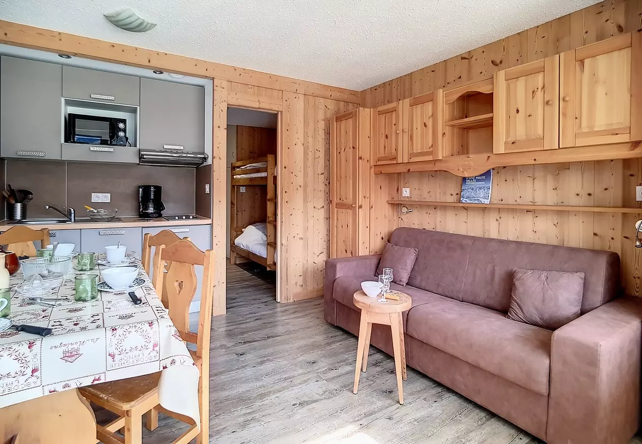 Beautiful studio, fully renovated in 2015, with a surface area of 22m² for 4 people. Located on the ground floor of a residence close to the ski lifts and the ESF departure point, it has a south-facing balcony.