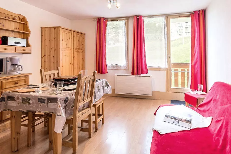 It is located on the ground floor with a northeast-facing balcony in the Ski Soleil residence, with ski-in/ski-out access. On the ground floor, you will have a ski locker.
