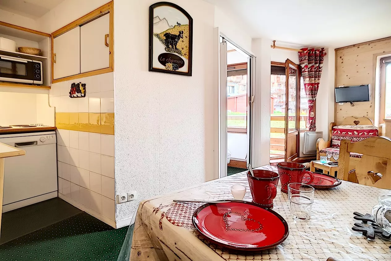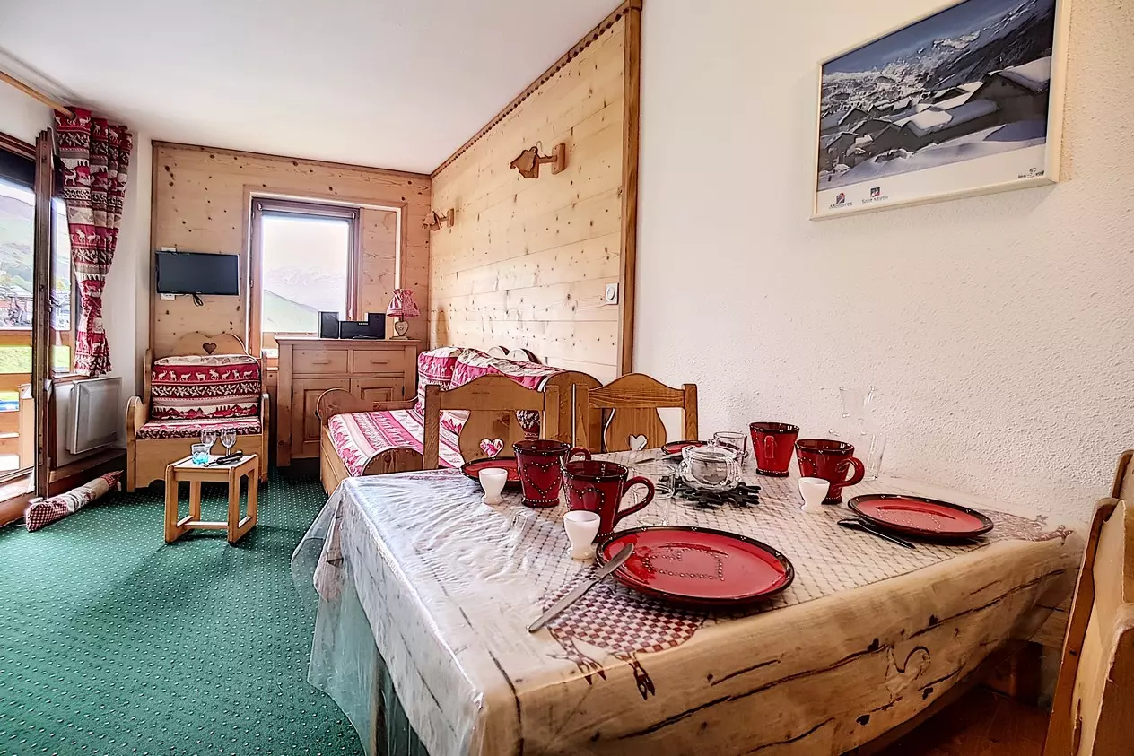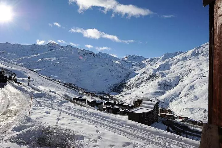 South-facing balcony with views of Val Thorens and Cime Caron.
