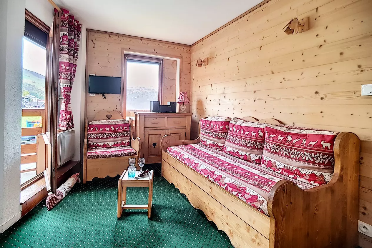 Living room: 1 single bed and 1 pull-out bed. Equipped with a television.
