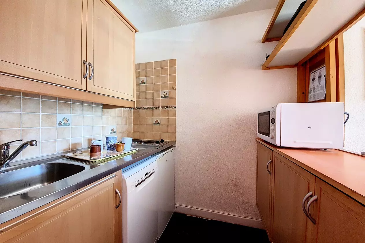 Independent kitchen with 2 hotplates, oven, refrigerator, dishwasher, toaster, kettle and coffee maker.