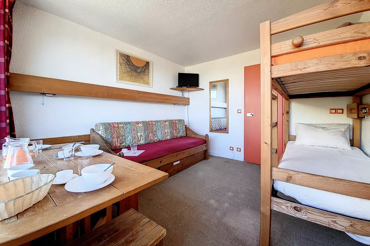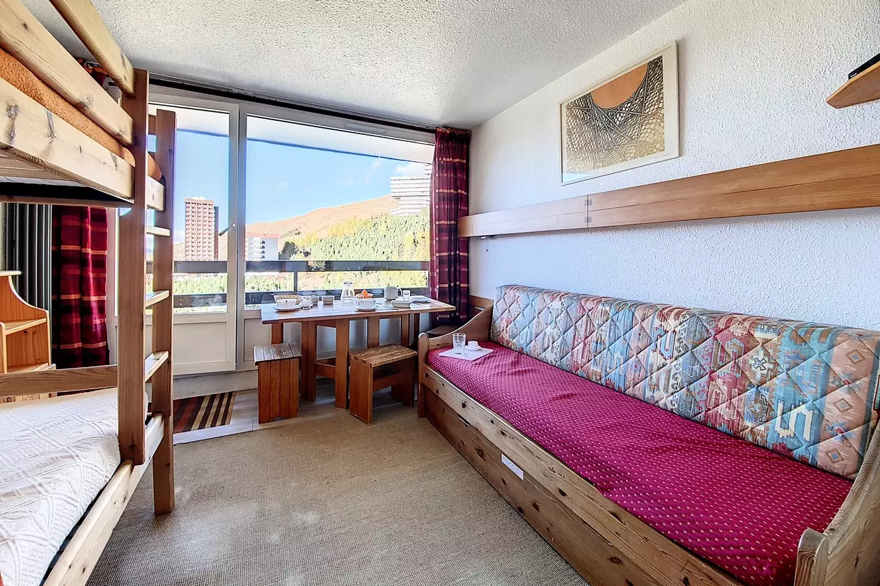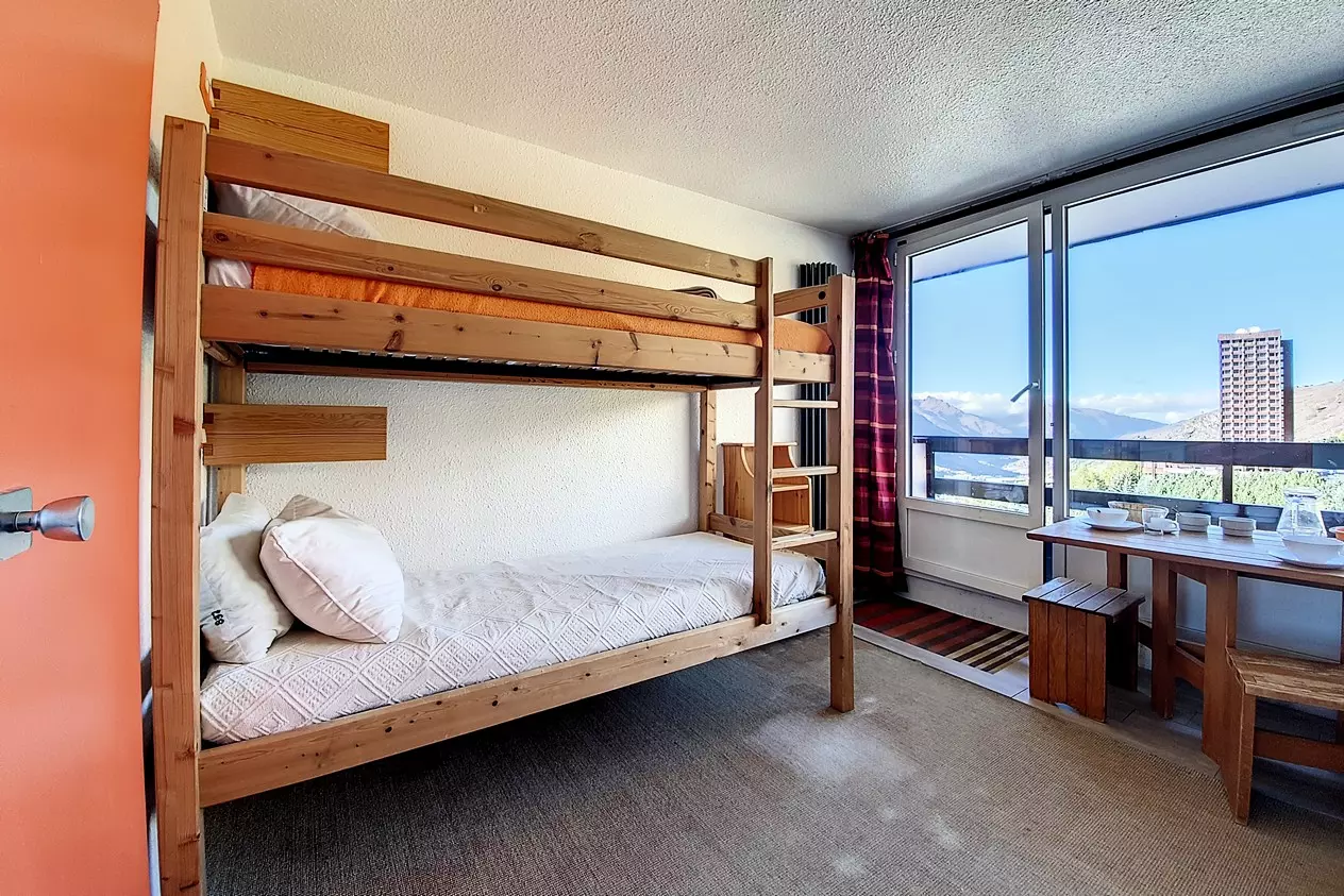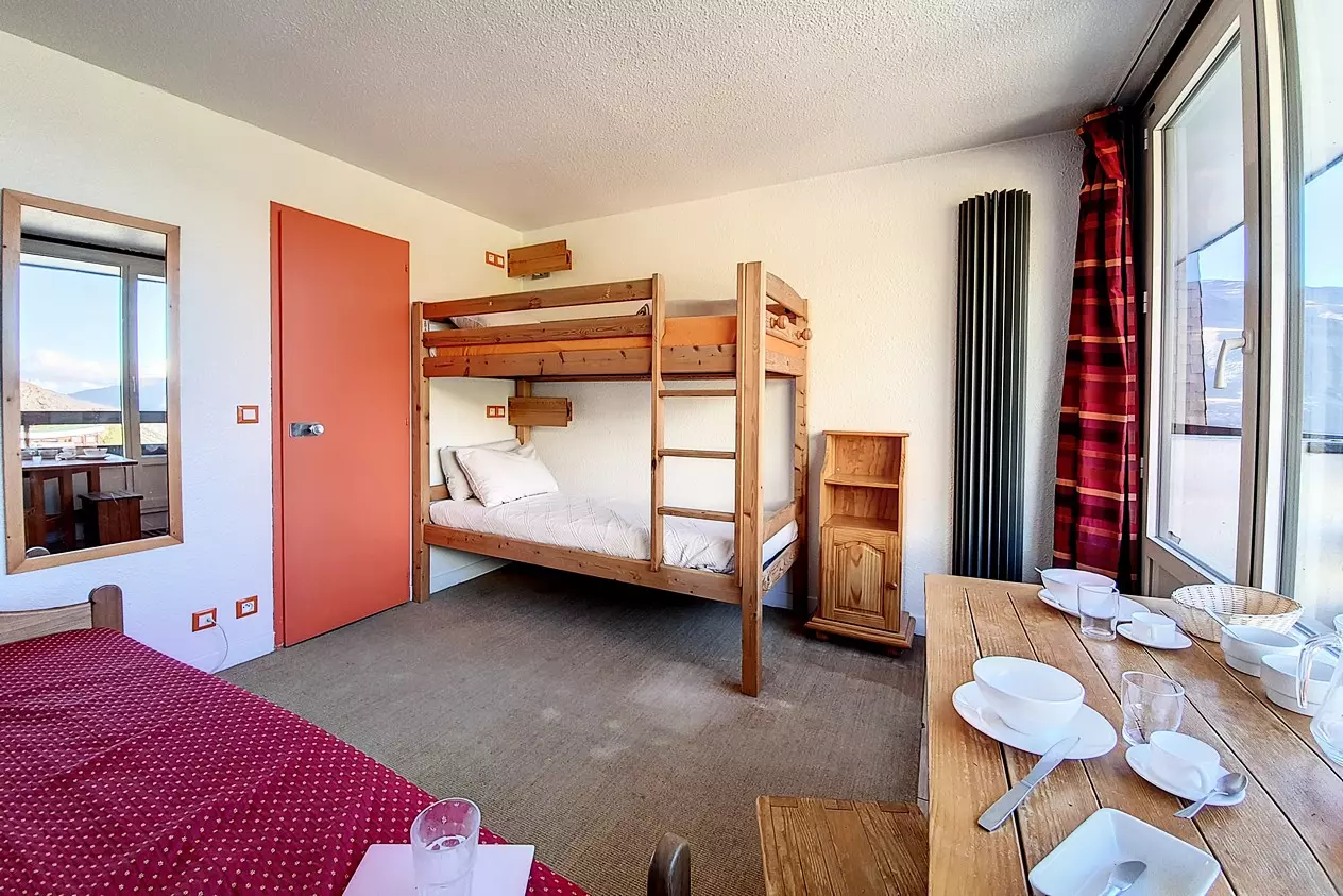 Living room: 1 single bed + 1 single sofa bed + 1 pull-out trundle bed.