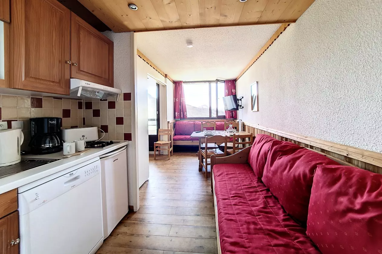 Living room: 1 single sofa bed + 1 pull-out bed. Equipped with a television.