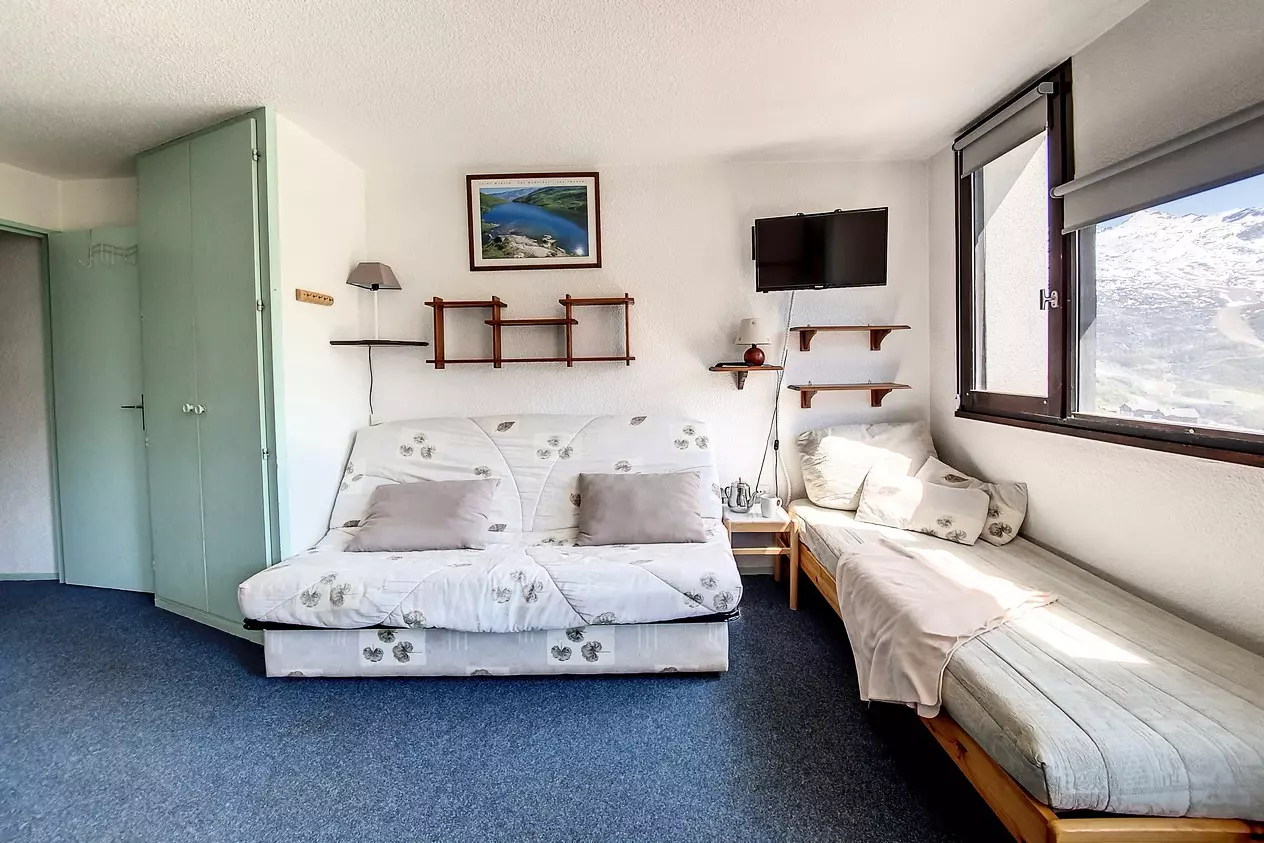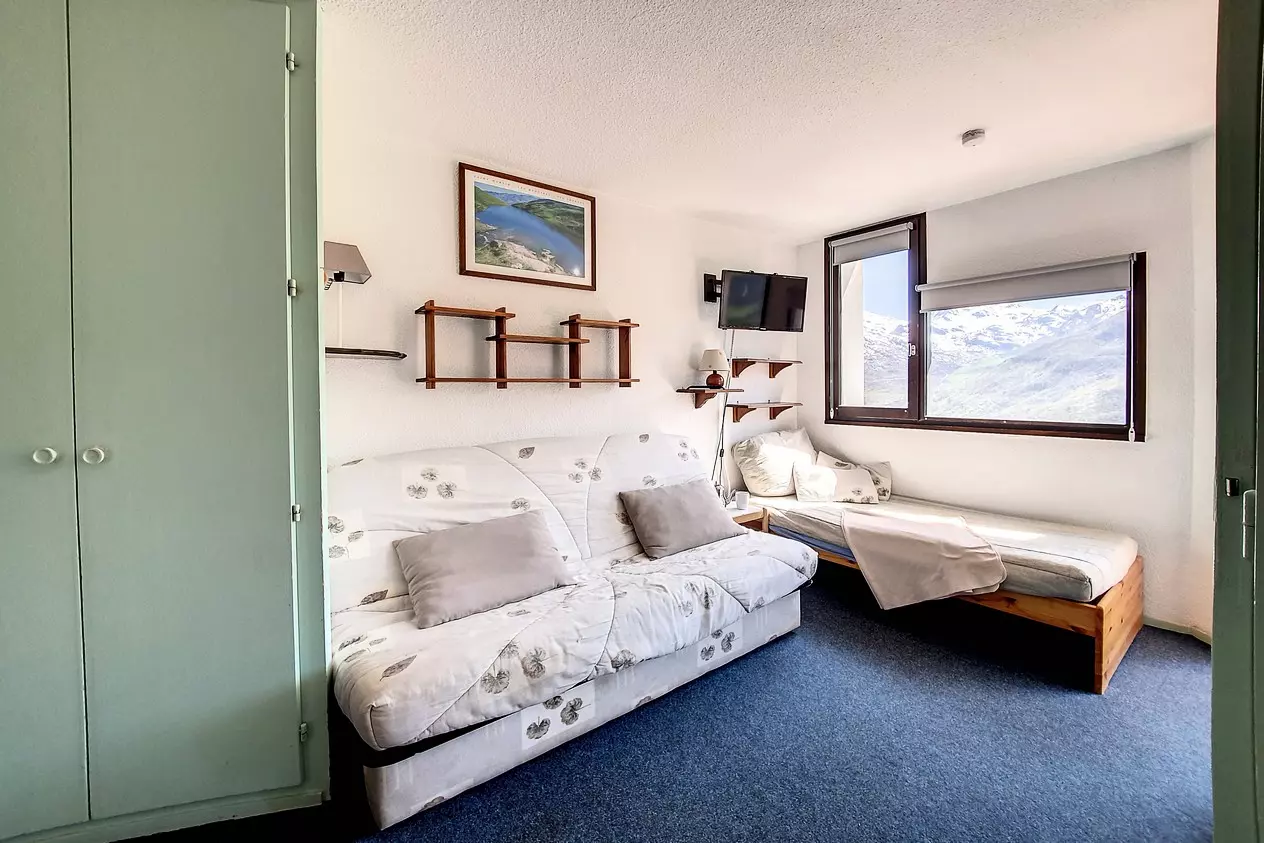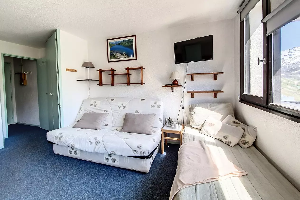 Living room: 1 double sofa bed (130 cm). Equipped with a television.