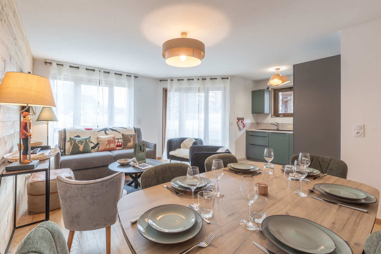 In the heart f Alpe d'Huez, apartment B02 in the prestigious Expression residence embodies contemporary alpine elegance. Ths 70 sq.m ground floor or three-bedroom apartment offers a bright and refined setting for up to six guests, including a master suite. Its warm living area, stylish open kitchen, and high-end finishes create inviting atmosphere. Facing southeast, it enjoys ideal morning sunlignt. the residence, private ski locker, indoor parking, and direct access to the slopes via the Alpe Express lift. Perfectly located near the Palais des Sports and the lively Avenue des Jeux with its shops, restaurants, and entertainment.