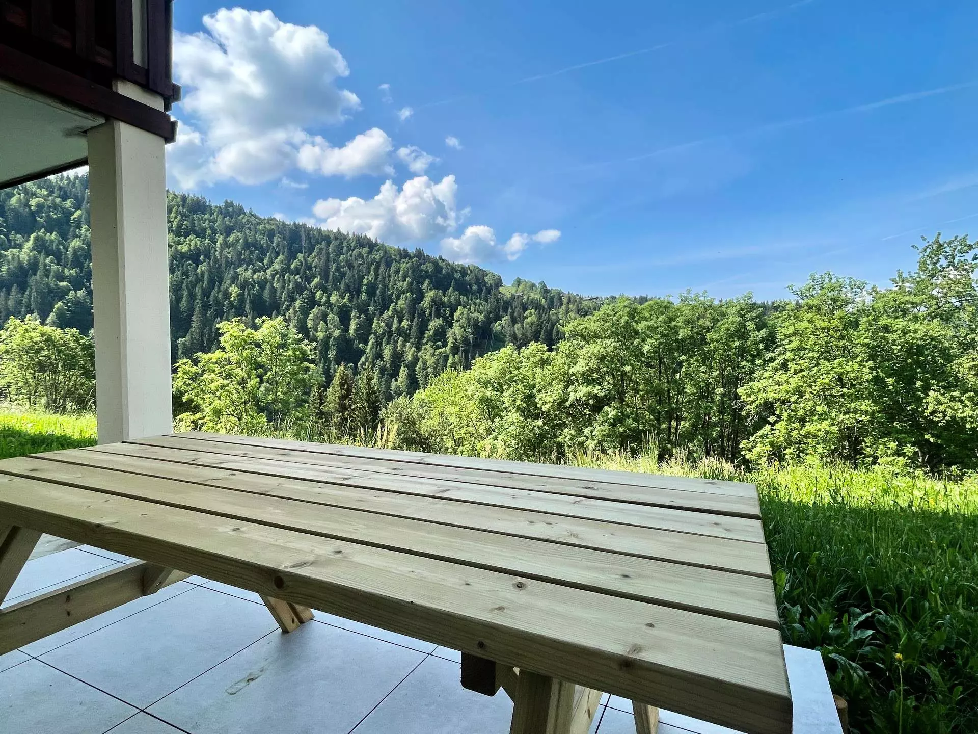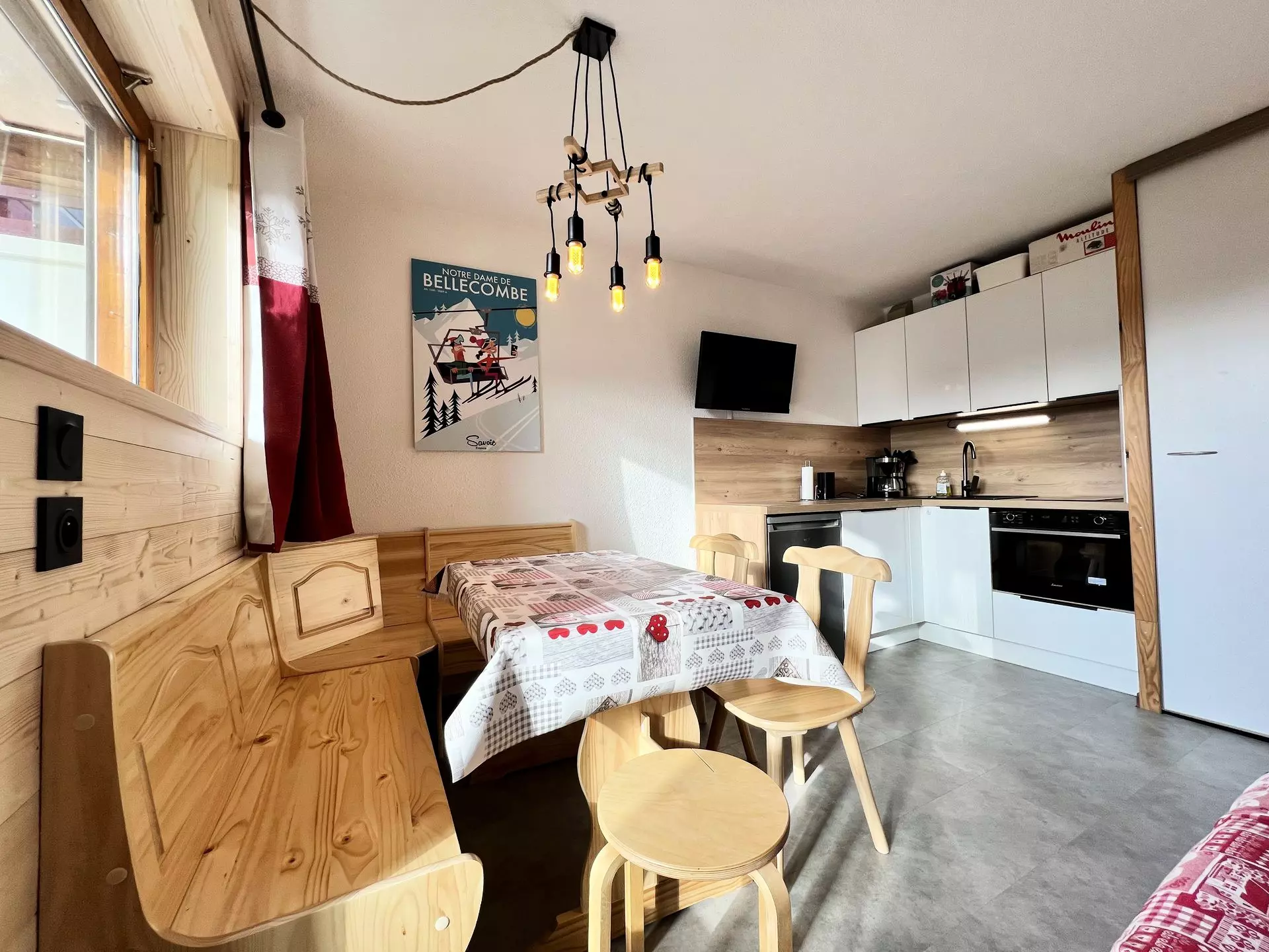 Located in the village of Notre Dame de Bellecombe, this 27m² apartment sleeps 4. Located on the ground floor, it features a southwest-facing terrace with views of the surrounding forest and mountains.