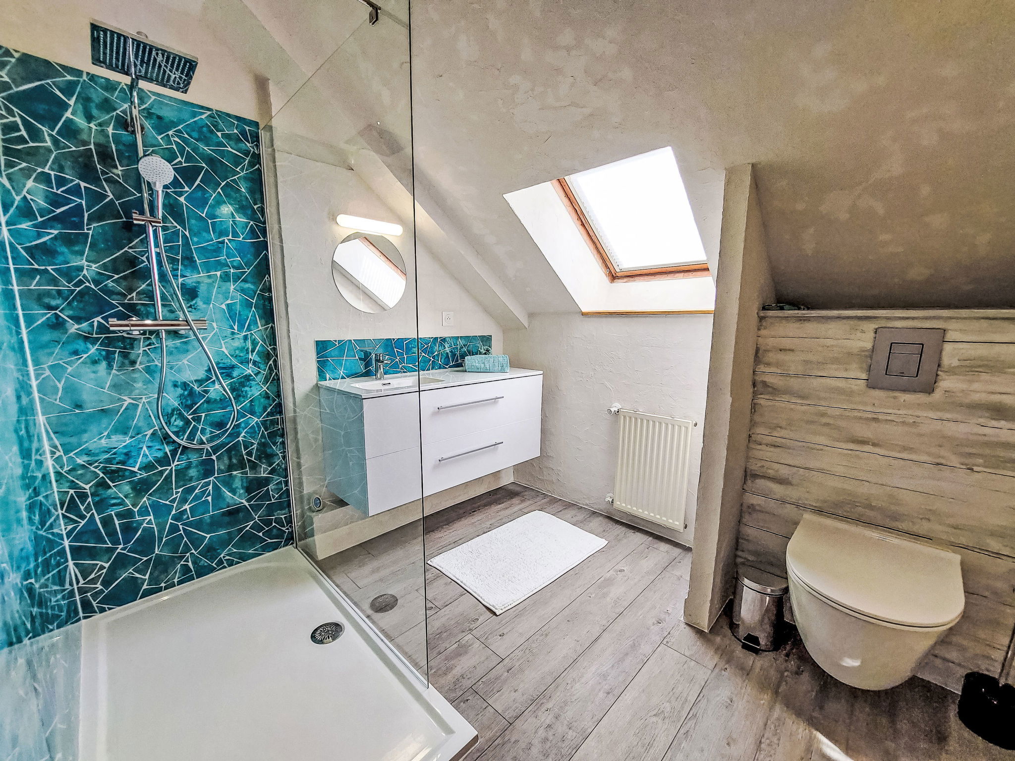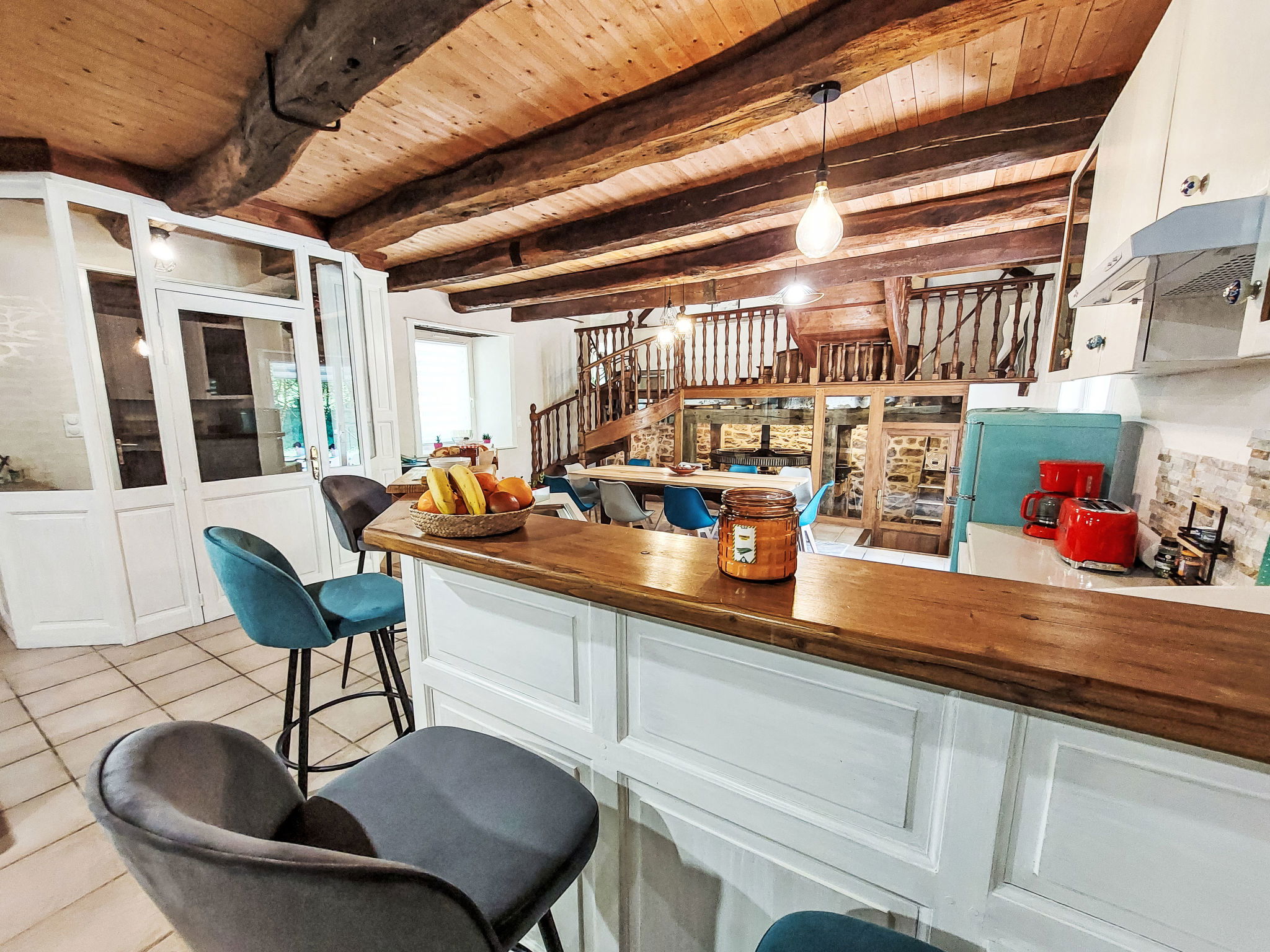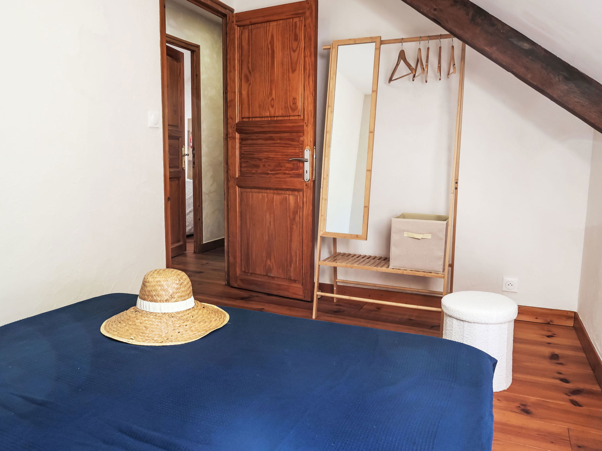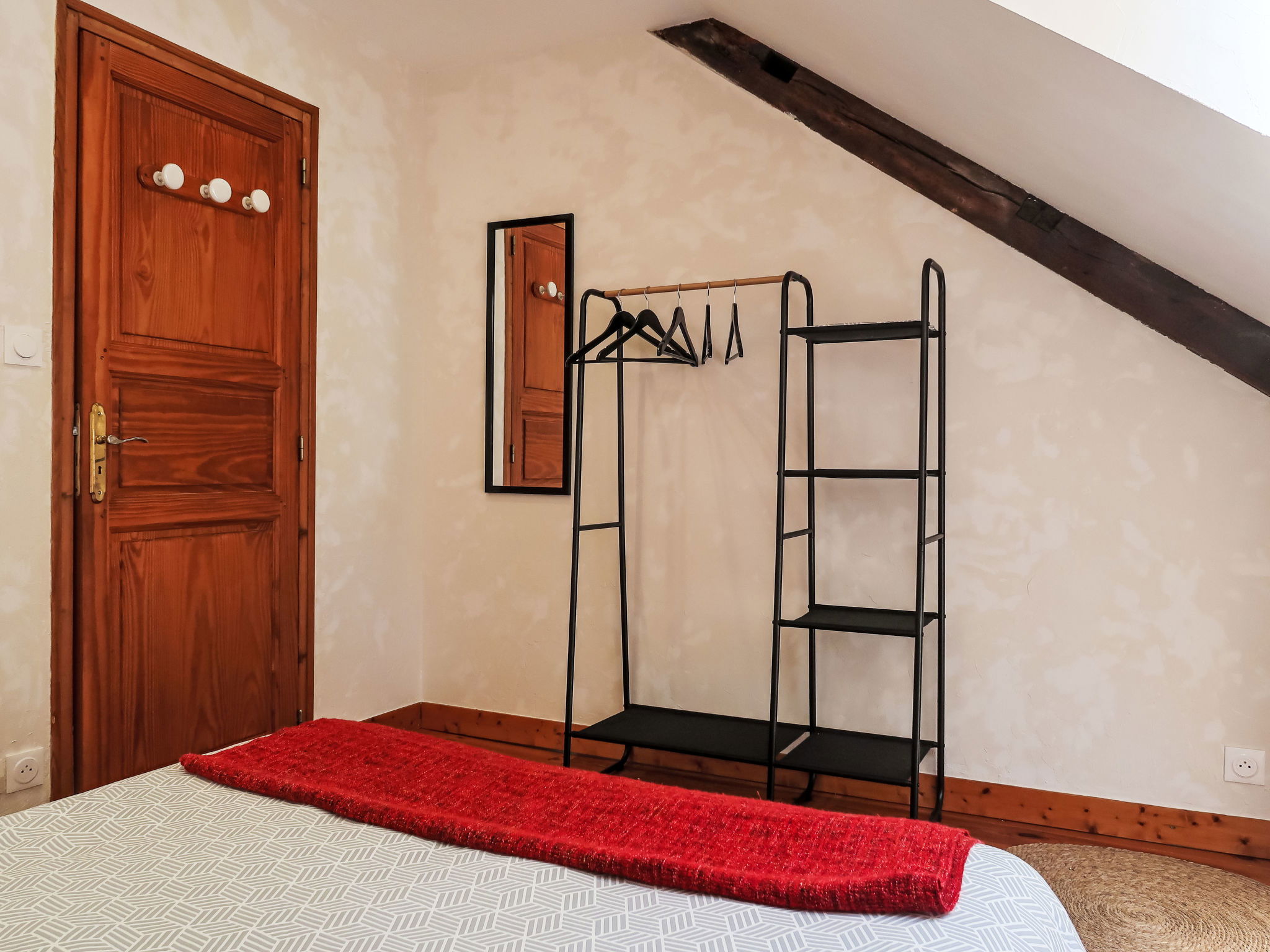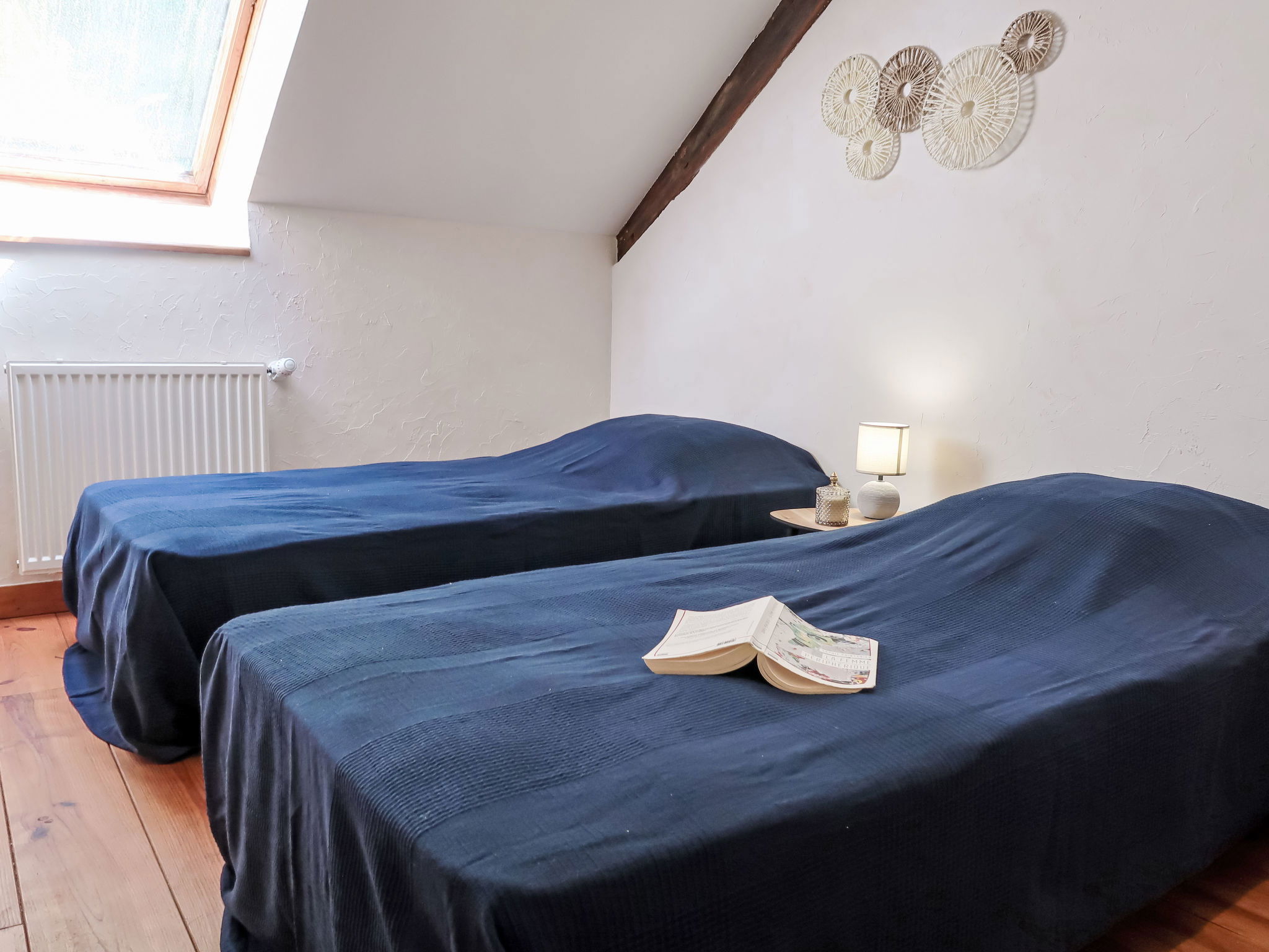 "La Meunière", 5-room terraced house 120 m2 on 2 levels. Cosy furnishings: entrance hall. Large living/dining room with open-hearth fireplace and TV (flat screen). Exit to the terrace. Open kitchen (oven, dishwasher, 3 induction hot plates, toaster, kettle, microwave, freezer, electric coffee machine) with bar. Sep. WC. Upper floor: with sloping ceilings, 3 rooms, each room with 1 french bed (140 cm, length 190 cm). 1 room with 2 beds (90 cm, length 190 cm). Shower/WC. Electric heating. Terrace furniture, barbecue, deck chairs (3). Facilities: Internet (WiFi, free). Please note: not suitable for small children. Non-smoking house. Maximum 1 pet/ dog allowed. Smoke alarm. Offer by a private individual according to Art. 155, IV of CGI.