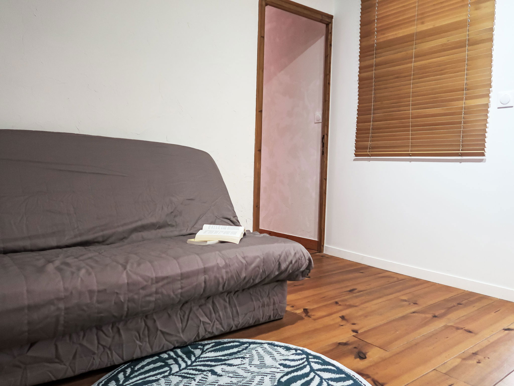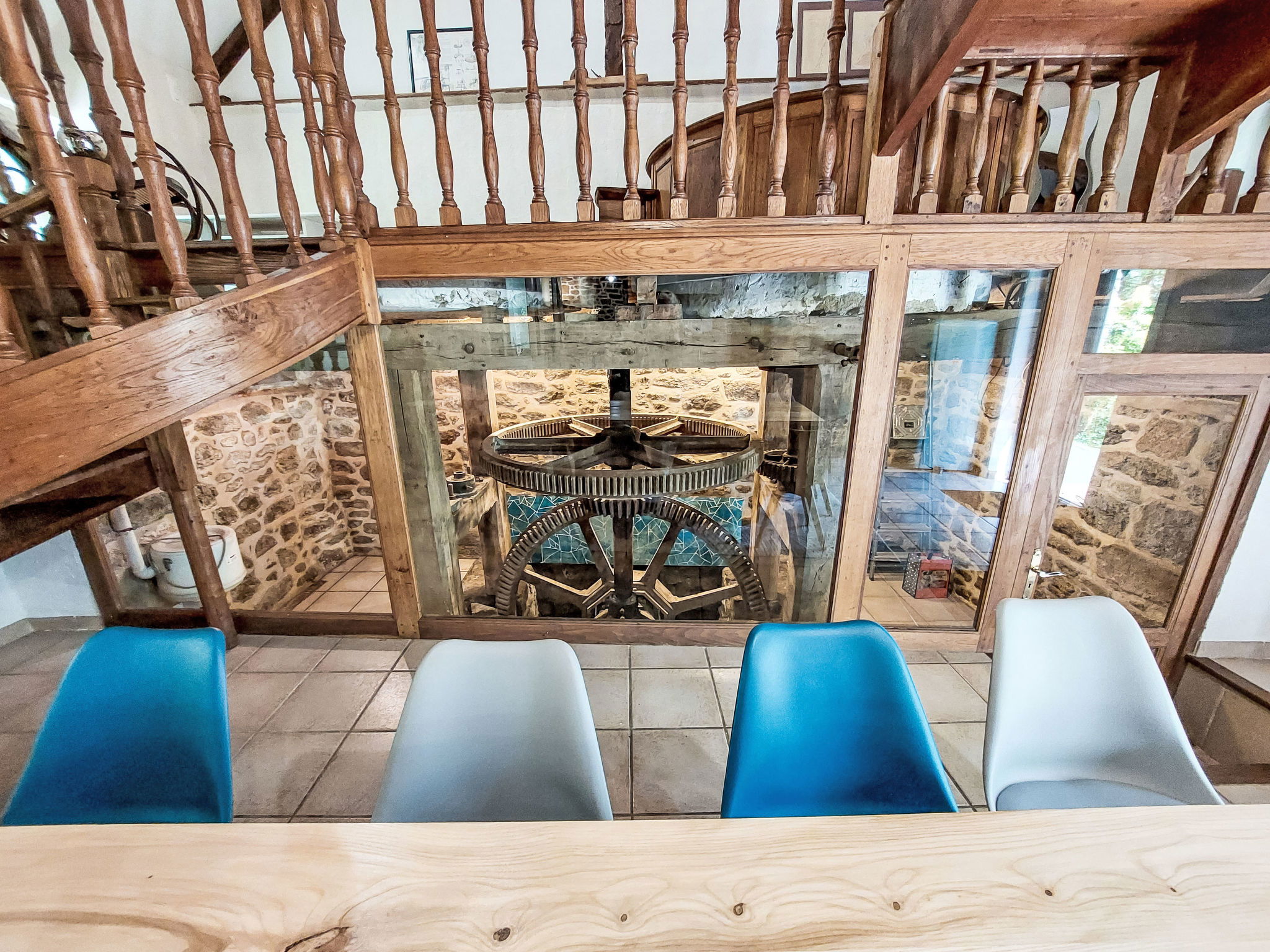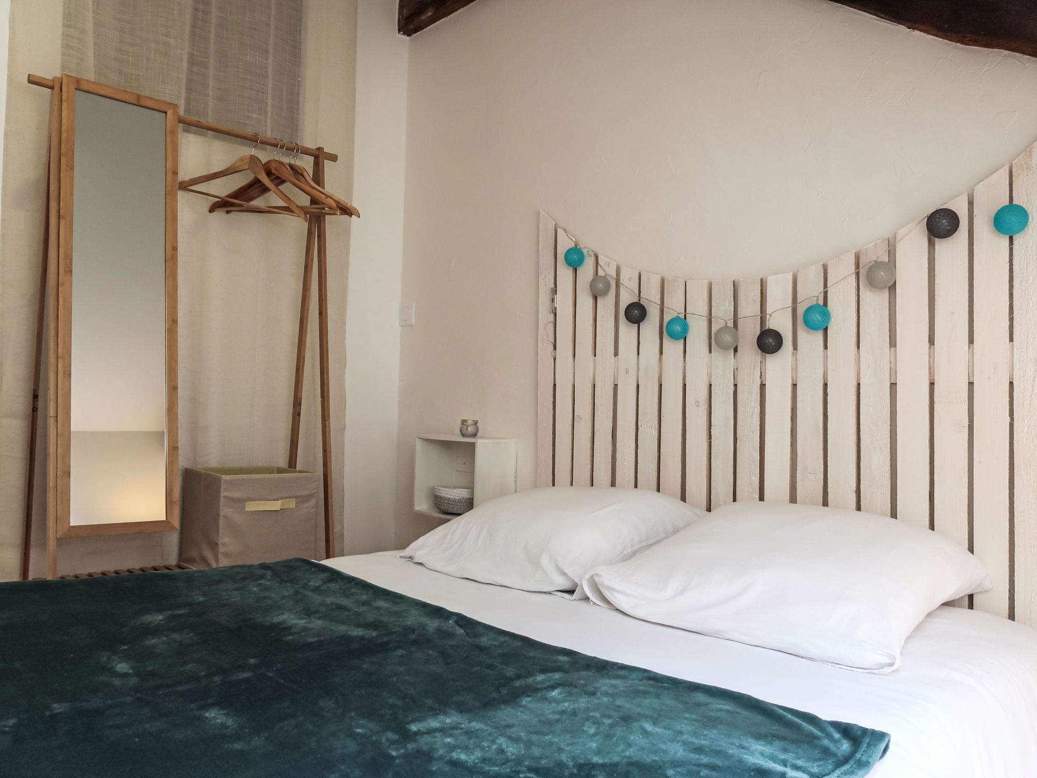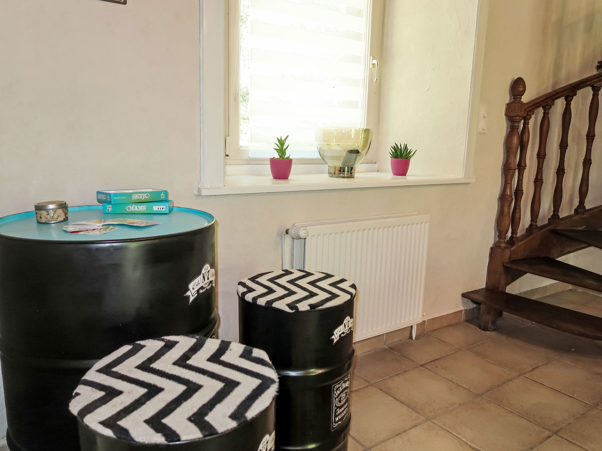 "La Meunière", 5-room terraced house 120 m2 on 2 levels. Cosy furnishings: entrance hall. Large living/dining room with open-hearth fireplace and TV (flat screen). Exit to the terrace. Open kitchen (oven, dishwasher, 3 induction hot plates, toaster, kettle, microwave, freezer, electric coffee machine) with bar. Sep. WC. Upper floor: with sloping ceilings, 3 rooms, each room with 1 french bed (140 cm, length 190 cm). 1 room with 2 beds (90 cm, length 190 cm). Shower/WC. Electric heating. Terrace furniture, barbecue, deck chairs (3). Facilities: Internet (WiFi, free). Please note: not suitable for small children. Non-smoking house. Maximum 1 pet/ dog allowed. Smoke alarm. Offer by a private individual according to Art. 155, IV of CGI.