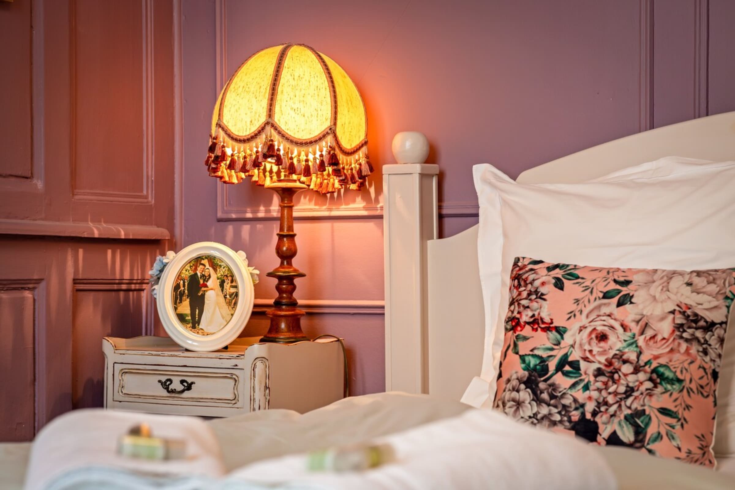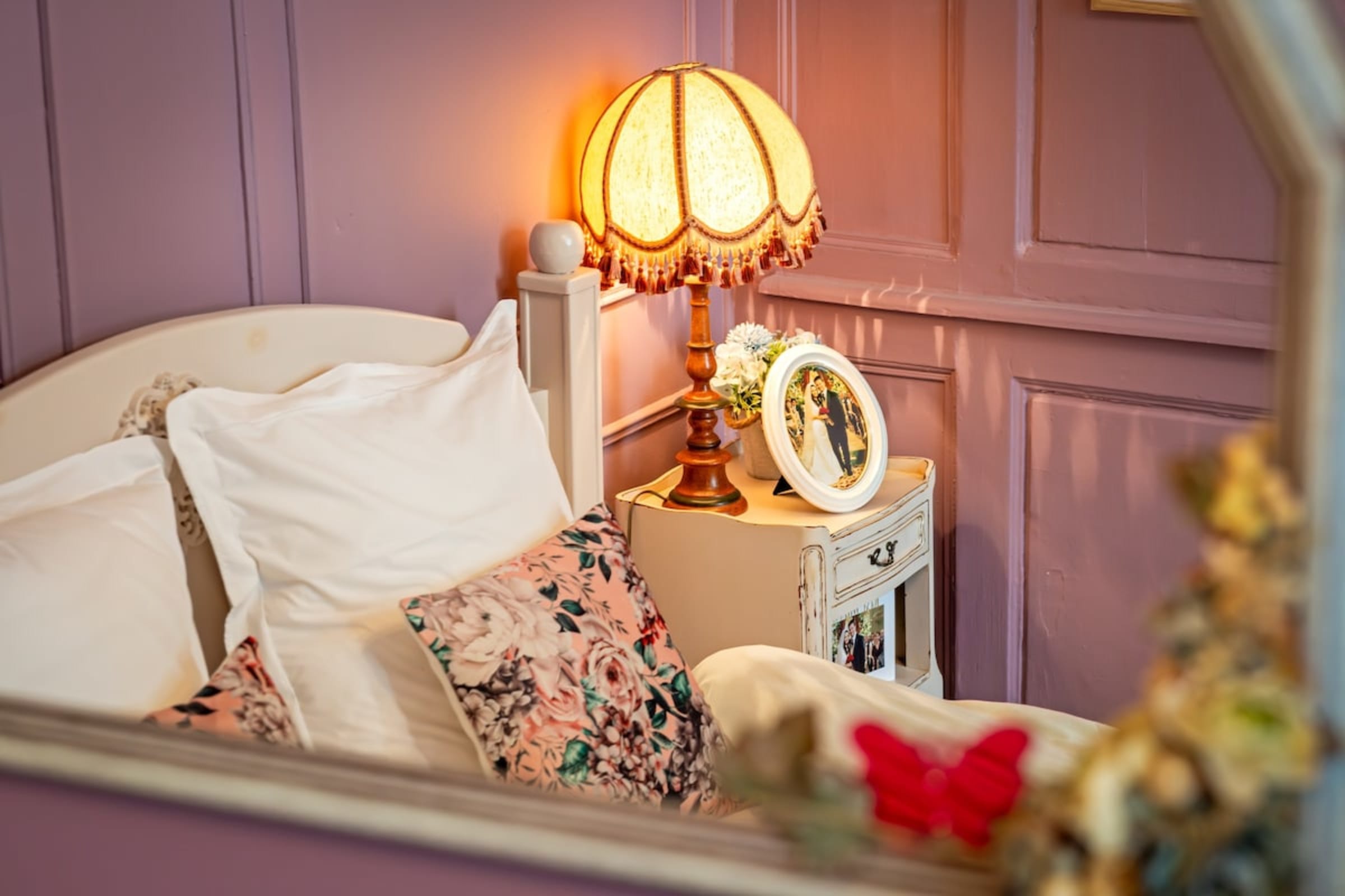 The comfortable bedroom is decorated in soft tones with touches reminiscent of the rooms in the series. The double bed has memory foam for a soothing night's sleep.