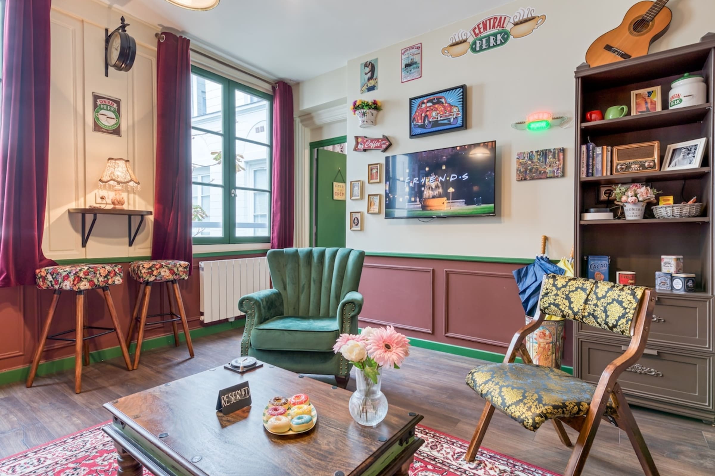 The flat is a real nod to the iconic 90s series, offering a unique space where every detail recalls the friendly atmosphere of Monica and Rachel's flat. From the colourful kitchen and cult objects to the quotes and accessories inspired by your favourite characters, you'll feel right at home at Friends!