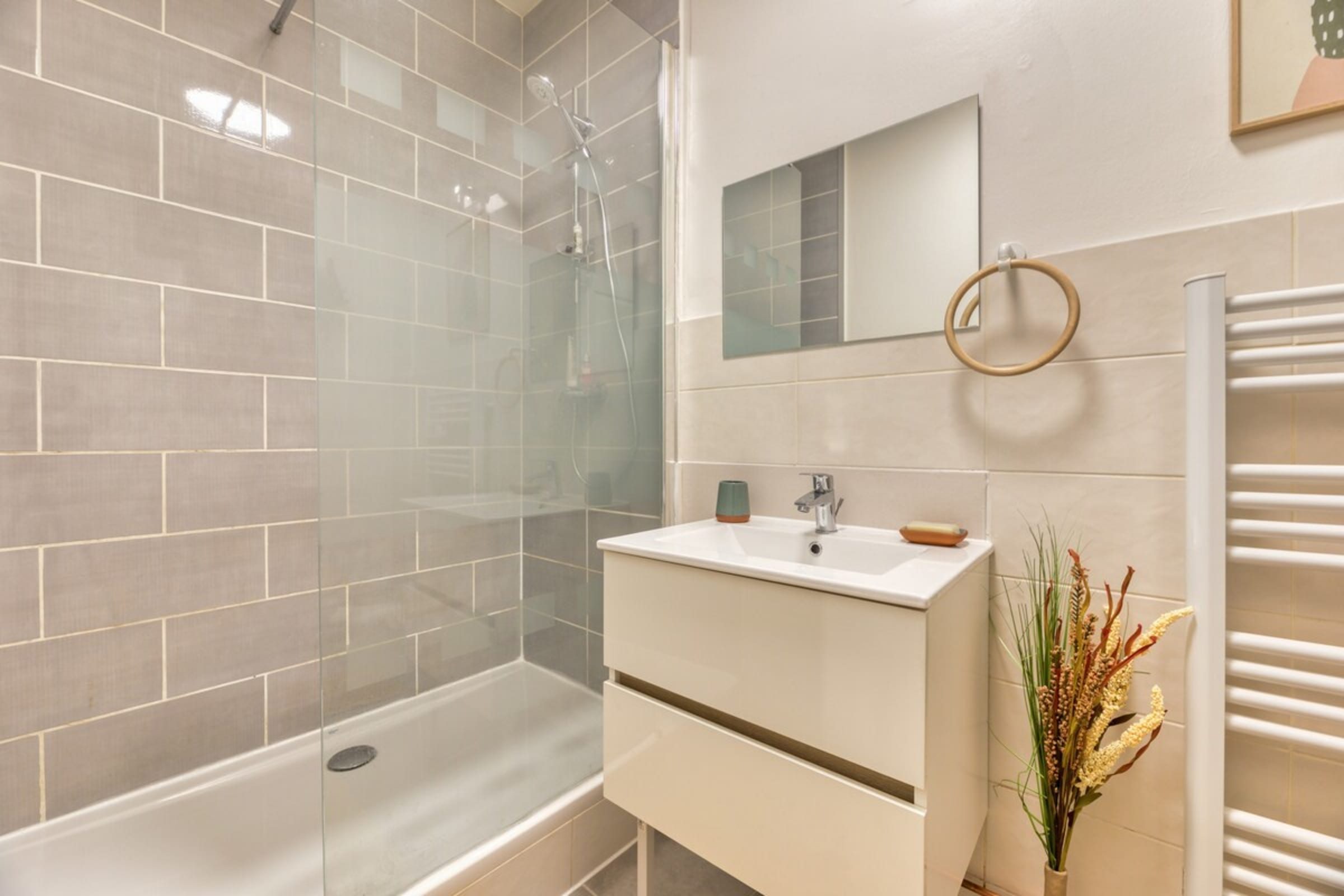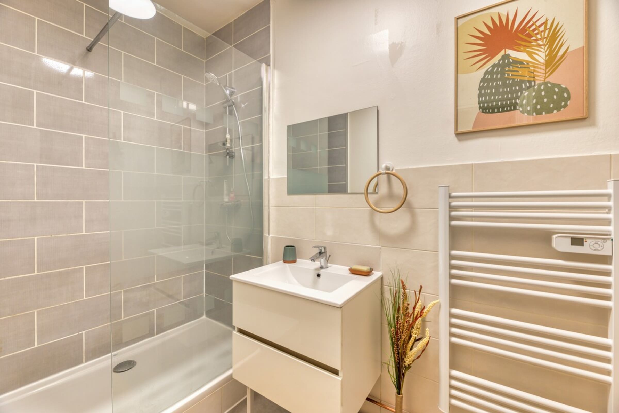 The private shower room offers a modern, well-appointed space, with everything you need for your comfort.