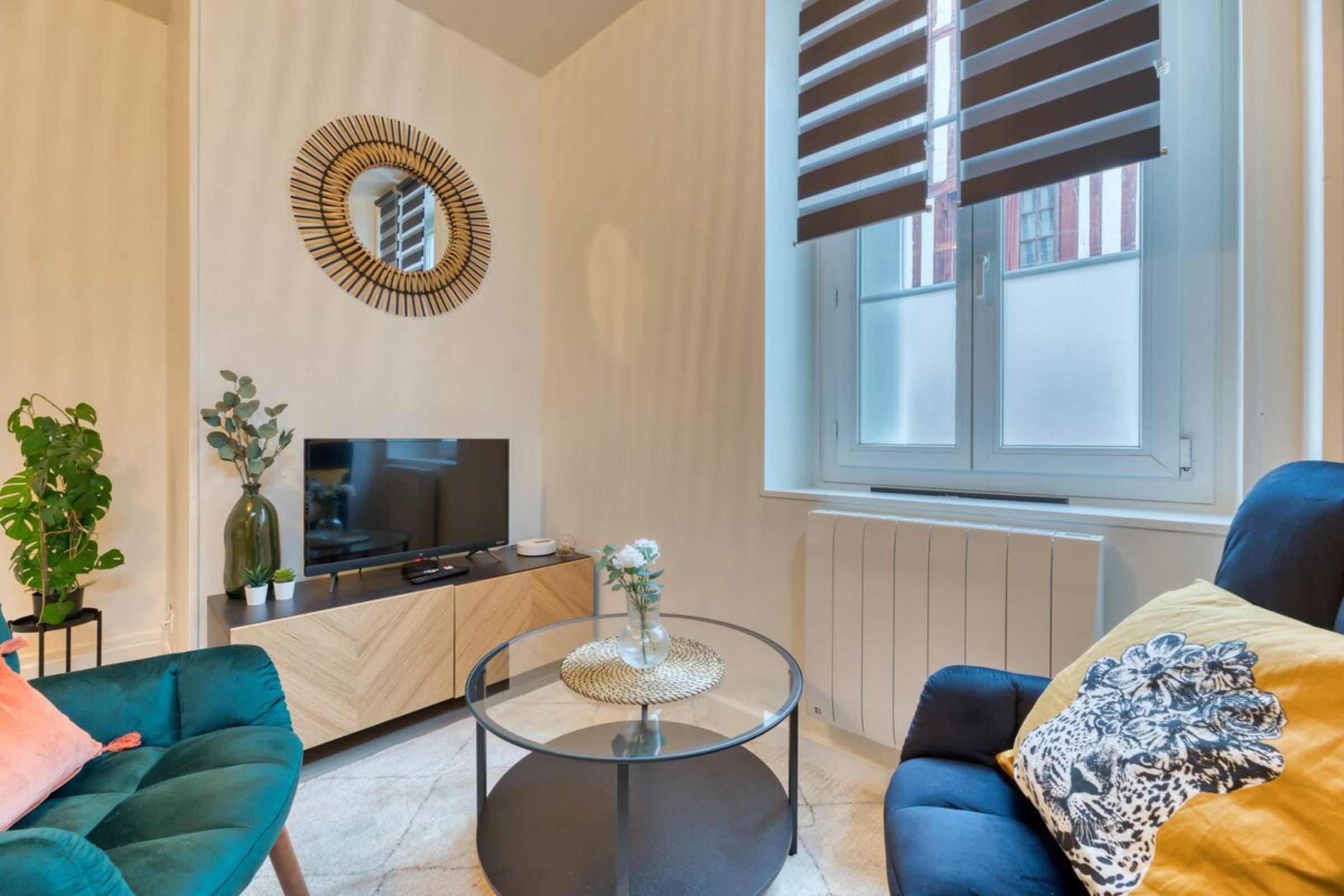 As soon as you walk through the door, you'll be greeted by a warm and cosy atmosphere. The living room, bathed in natural light, is the ideal place to relax after a busy day exploring Rouen. Make yourself comfortable on the sofa and enjoy a movie night on the flat-screen TV.