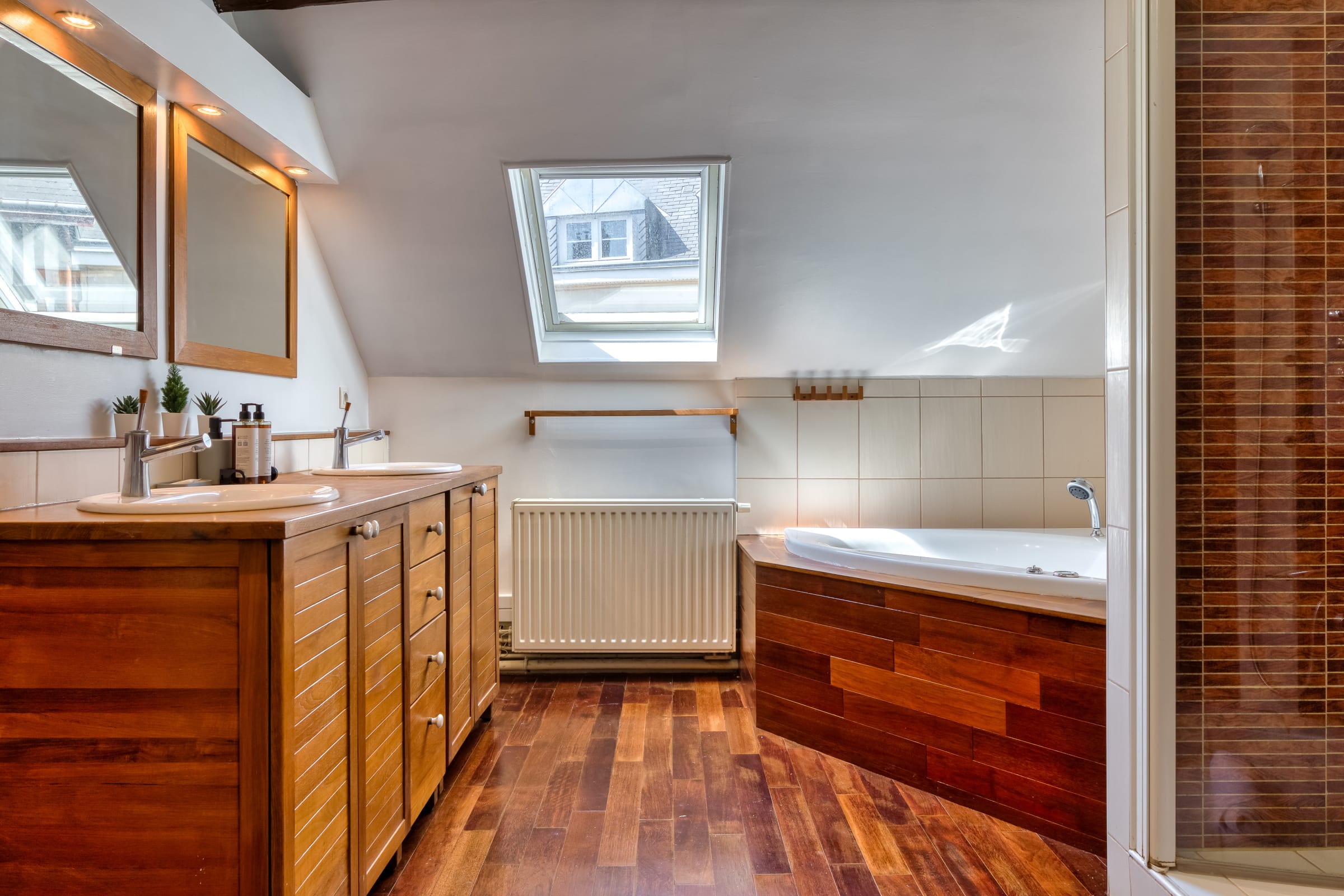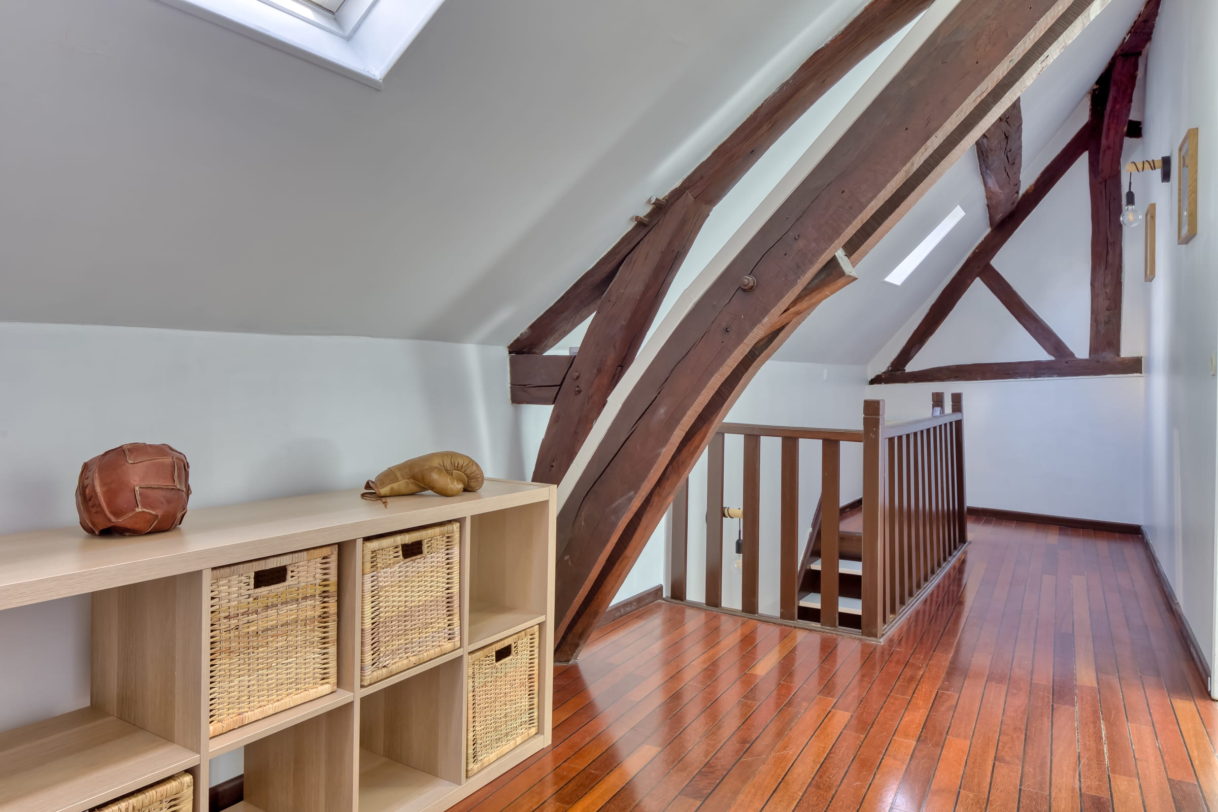 Take the staircase to the upper floor, a true haven of peace: three spacious bedrooms with double beds (140x200) await you, including a superb master suite with a double bed and a pull-out bed, perfect for families. The private corridor of the master bedroom leads to an additional toilet, a large dressing room for optimal storage and an exceptional bathroom: a spa bath, large shower and double washbasin create an ideal wellness area to recharge your batteries after a day of discovery.