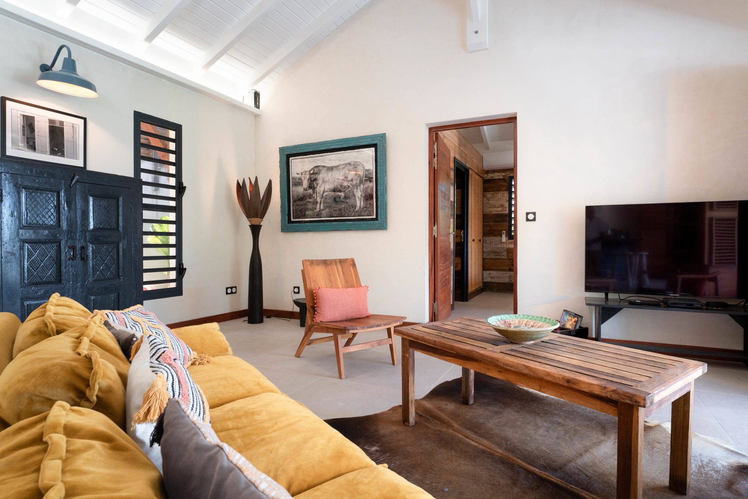 The spacious living room, equipped with fans, offers a convivial space where you can gather for moments of sharing. Small details such as linen and essentials ensure a hassle-free stay.