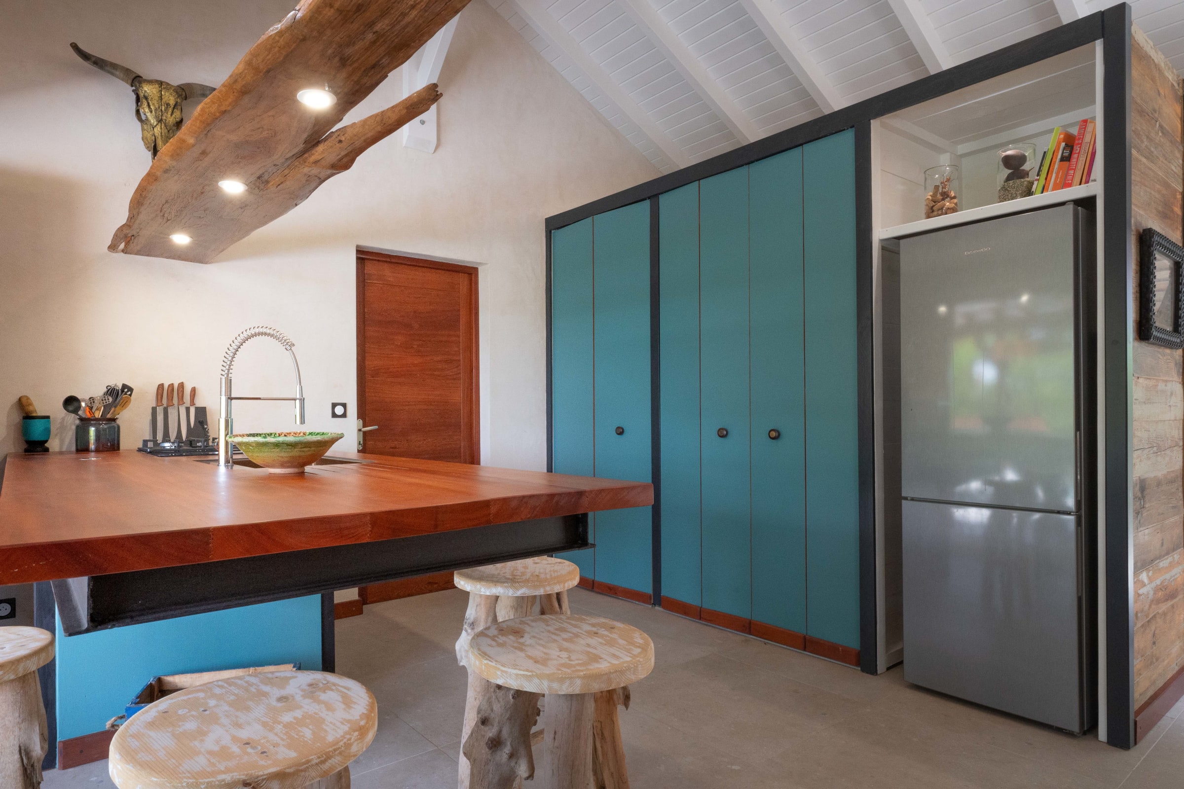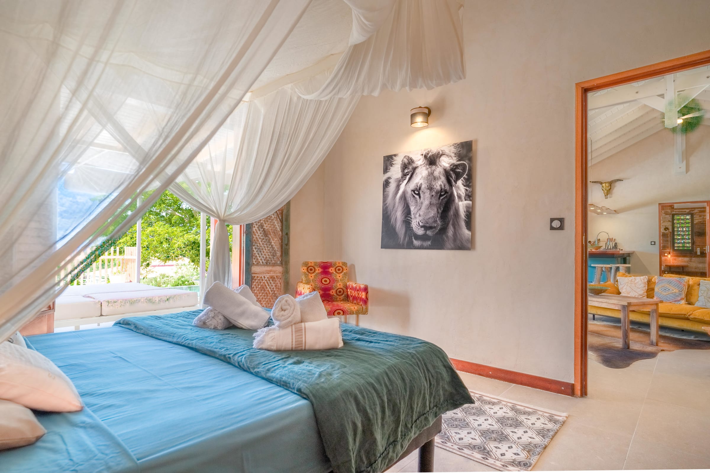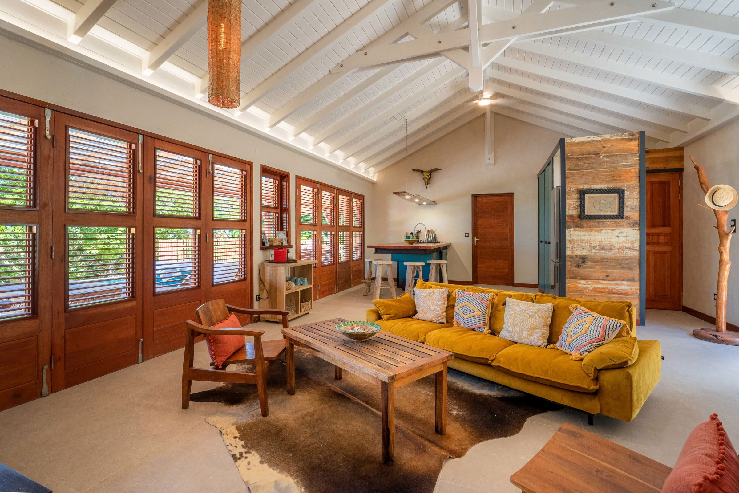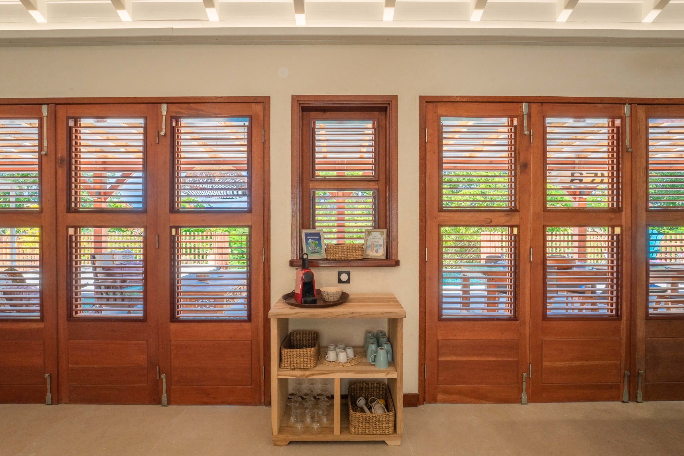 The villa is ideally located in Grand Bourg, on the island of Marie-Galante, offering outstanding tranquility yet close proximity to local amenities. Just five minutes will take you to the vibrant heart of Grand Bourg, with its colorful spice markets, fragrant bakeries and well-stocked supermarkets.
