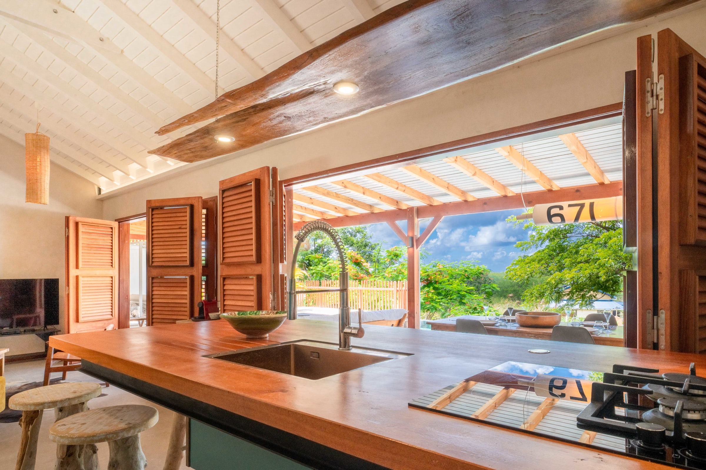 Let yourself be seduced by its modern, fully-equipped kitchen, including oven, microwave, fridge and even a Nespresso coffee machine for perfect mornings. For outdoor meals, take advantage of the plancha on the terrace, perfect for grilling. After a long day, relax by the private pool, a veritable paradise for lounging to the sound of tropical birds.
