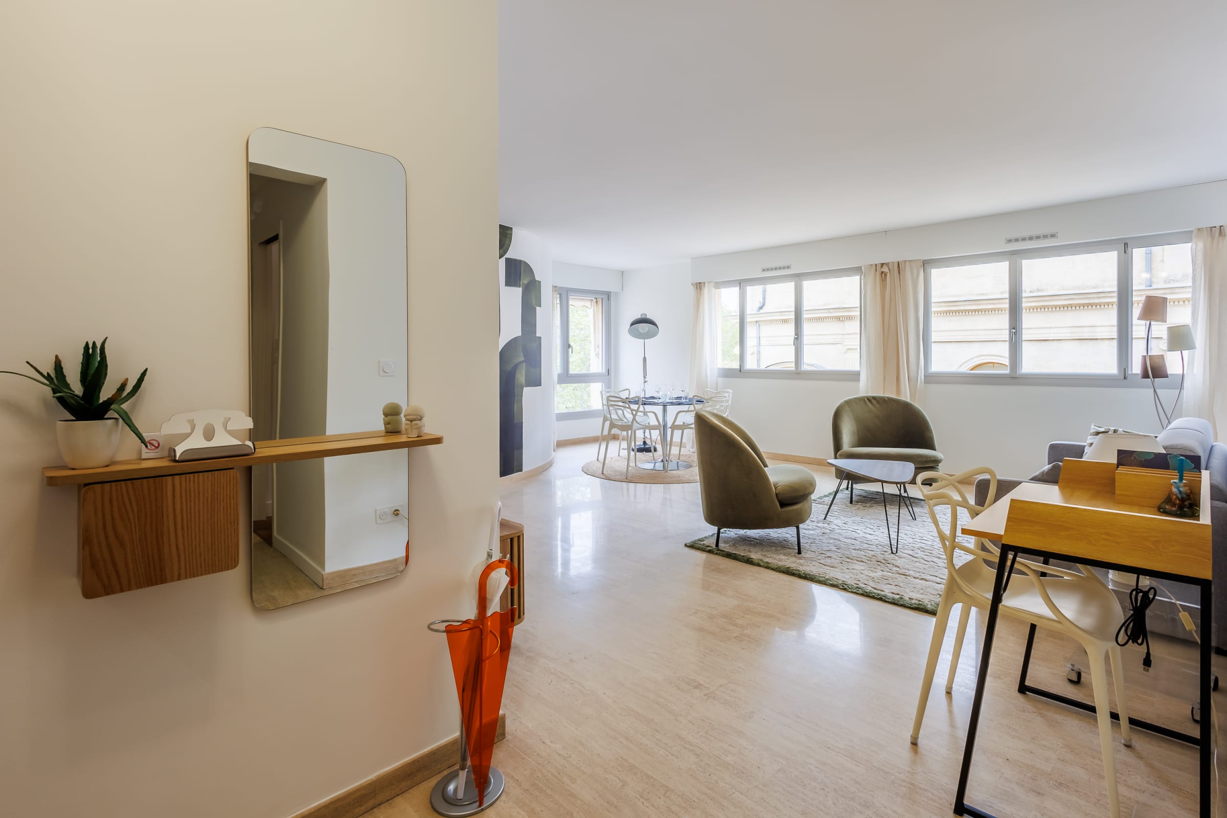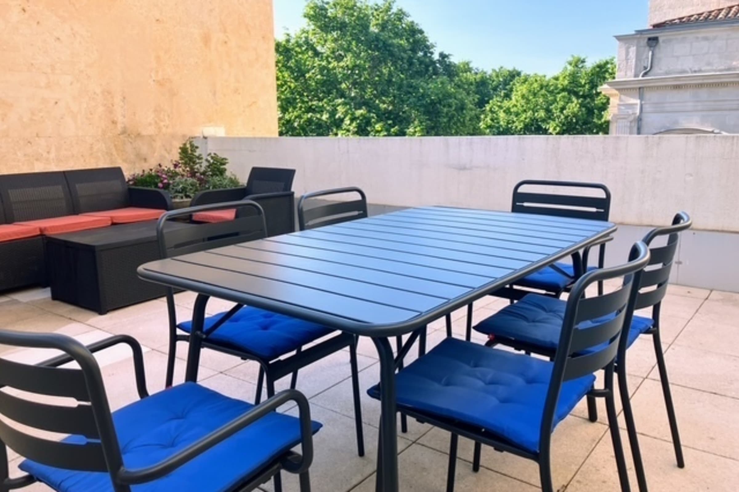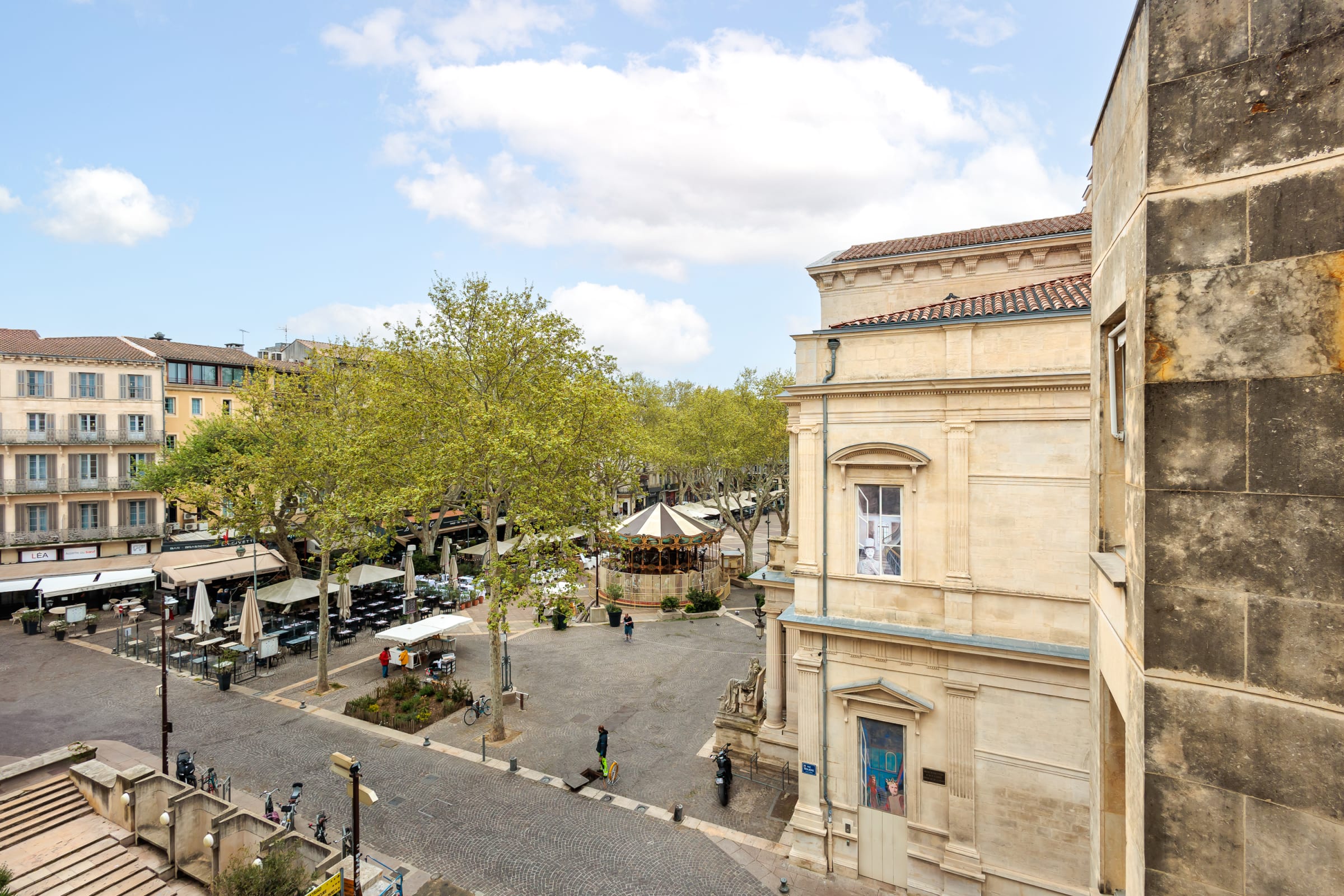 This elegant 80 m² apartment, located on the fifth floor with elevator, was completely renovated in 2025 by an architect and offers a breathtaking view of the opera-theater and Place de l'Horloge. Enjoy a spacious terrace with lounge and balcony for relaxing.