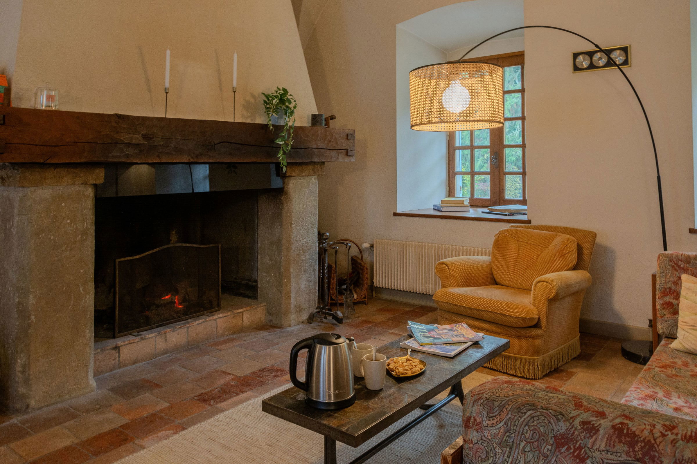 The thick walls keep the building cool in summer. It has a highly efficient, adjustable heating system in every room, ensuring comfortable temperatures during the cold season. To comply with the new regulations issued by the Pays Voironnais, the open fireplace can unfortunately no longer be used.