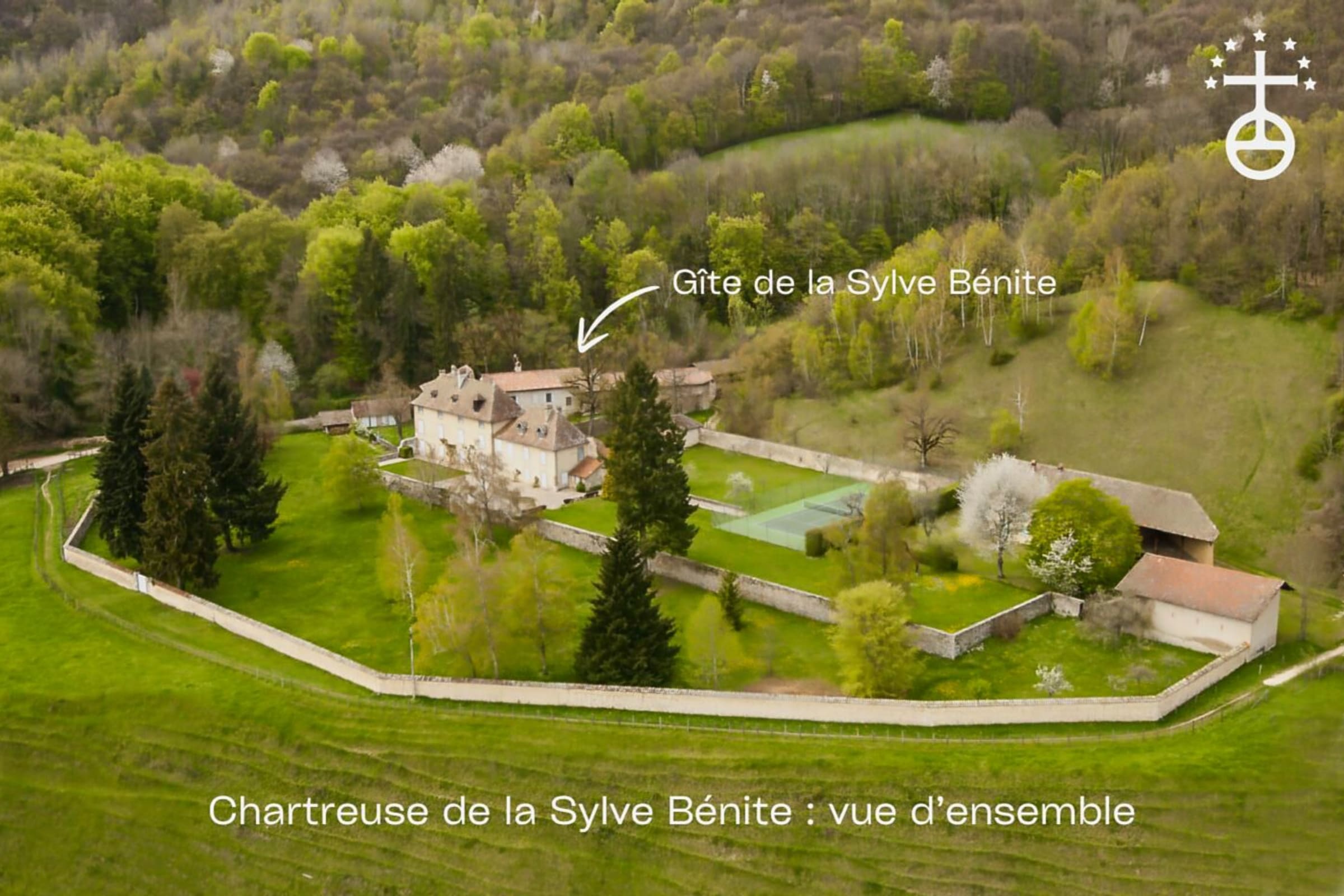 The CHARTREUSE DE LA SYLVE BÉNITE is just waiting for you. At the crossroads of hiking trails (GR65 / via Gebennensis on the Pilgrim's Way to Santiago de Compostela), in a green setting, the gîte is ideal for family gatherings, friendships, training courses or other events requiring a serene setting, just 35 minutes from Grenoble and 1 hour from Lyon and Chambéry.