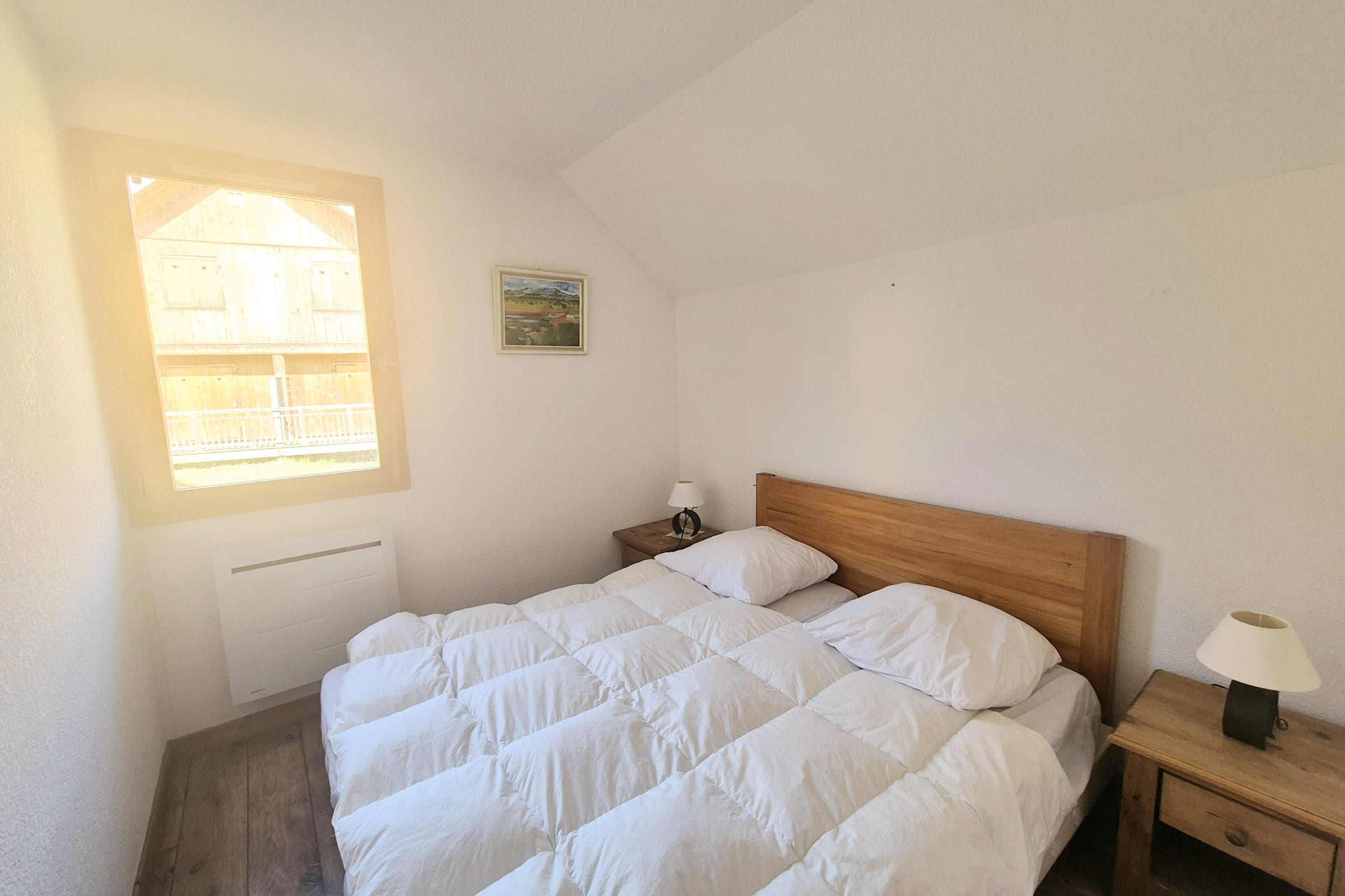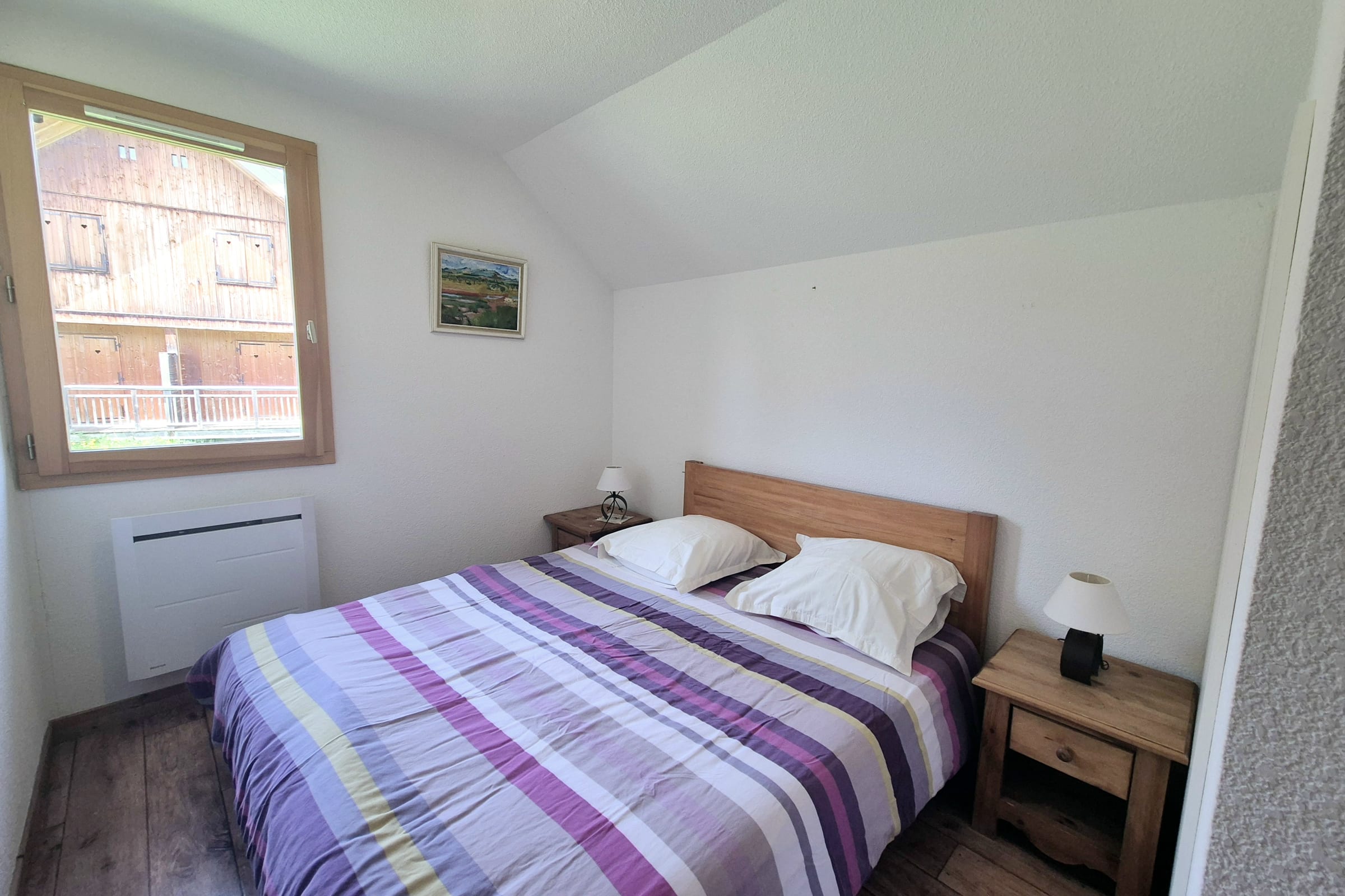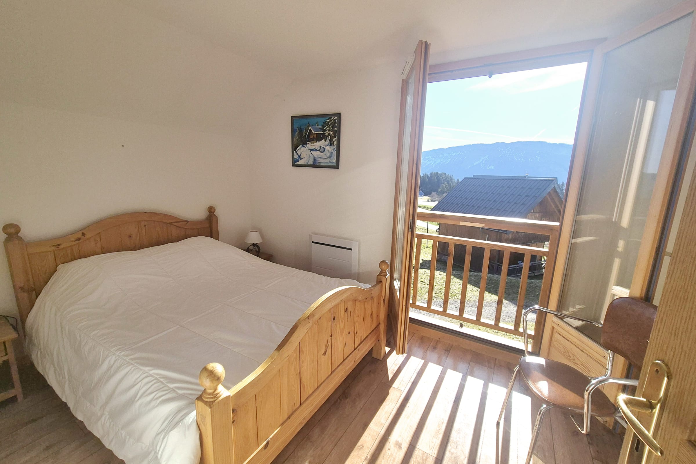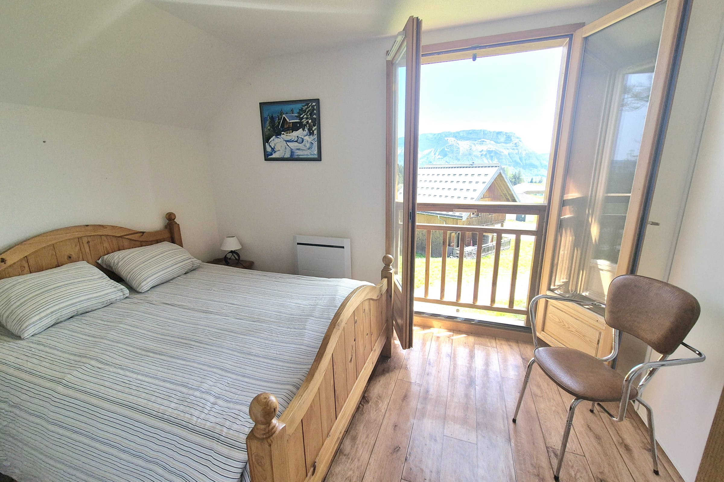 * Une deuxième chambre avec **lit double** et porte-fenêtre offrant une **superbe vue montagne**