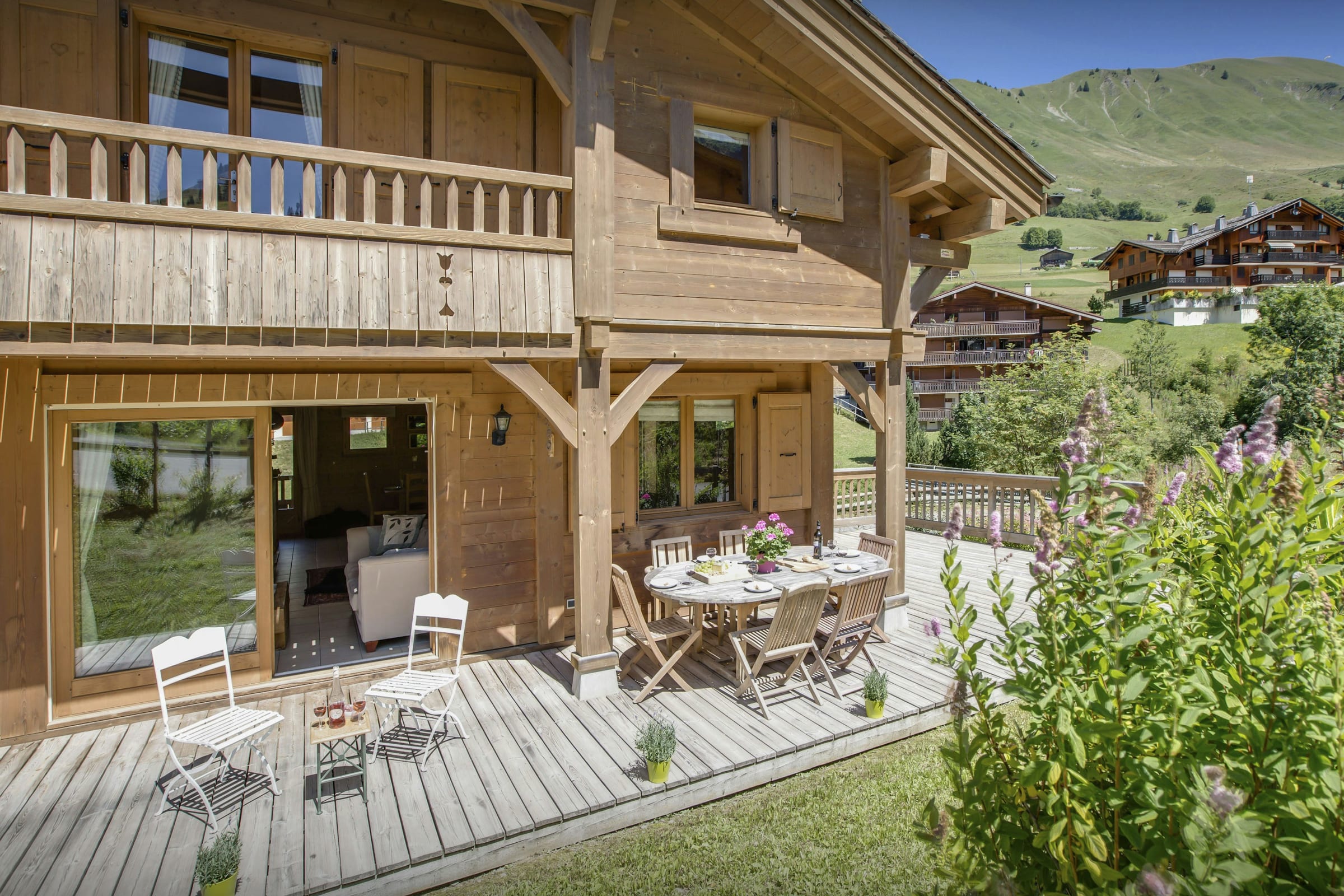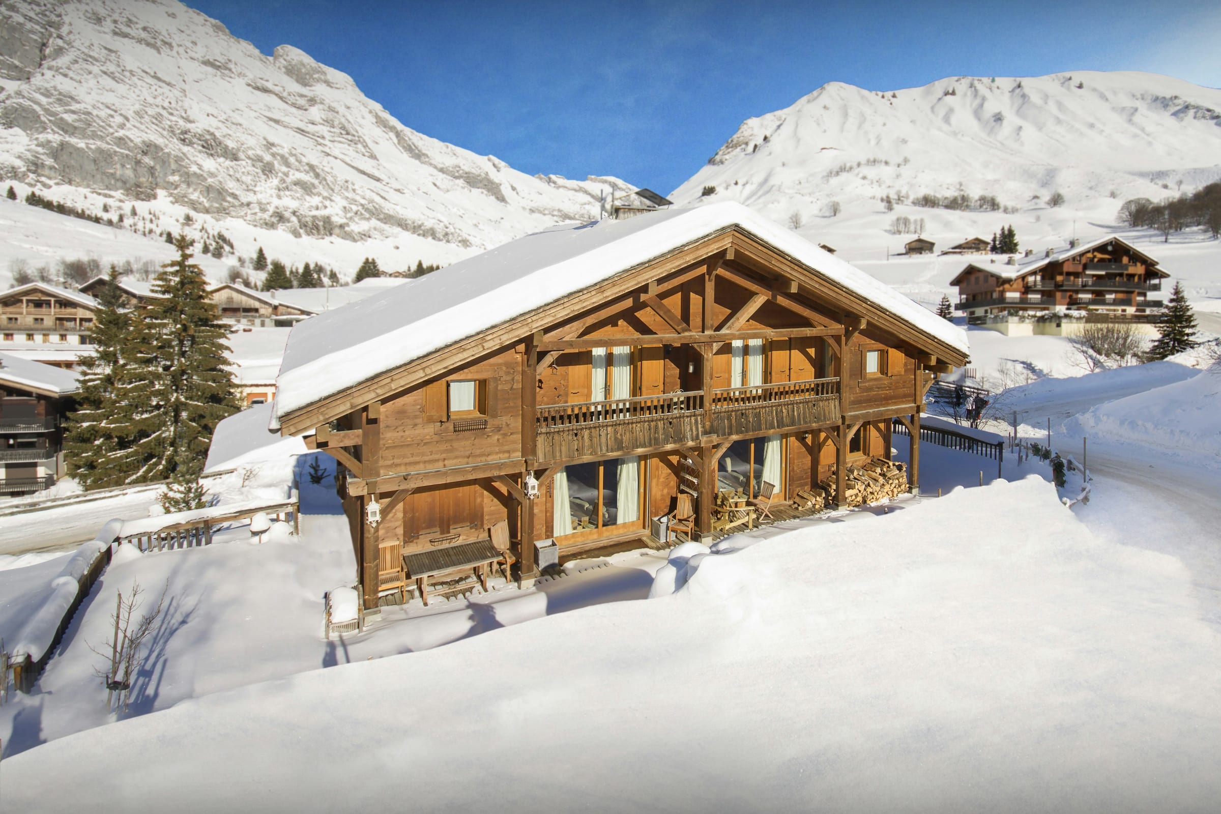 Chalet L’Ours Blanc is a ski-in ski-out chalet only 30 metres away from the slopes, and a short 5 minute walk from the centre of the village.