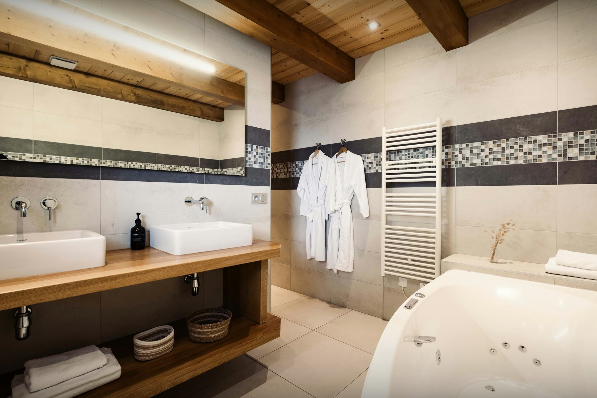 Please note this chalet is a semi-detached property, particular attention was paid to high-quality sound proofing during construction. For electric vehicle owners, a flat-rate fee of €50 will be charged upon arrival at the chalet to cover the cost of the electricity needed to recharge the batteries. The access to the separate hammams for each apartment is via the garage. The maximum capacity of the chalet is 8 people + 1 baby sleeping in a travel cot. This number cannot be exceeded for safety and insurance reasons. The table football, ping-pong table and deck chairs are not available in winter. The table football and ping-pong table are located in the garage and for the use of both properties. As part of a responsible approach to energy management, please ensure that lights and electronic devices are turned off when not in use.