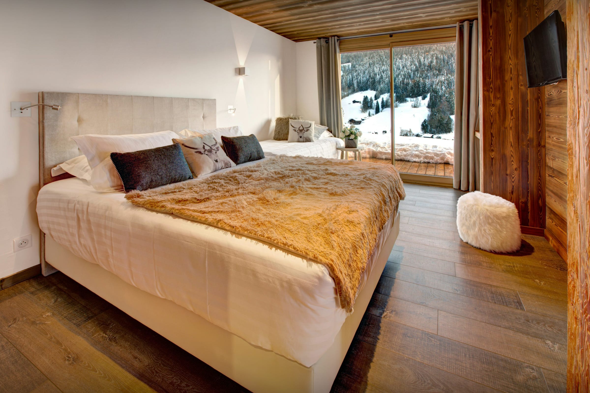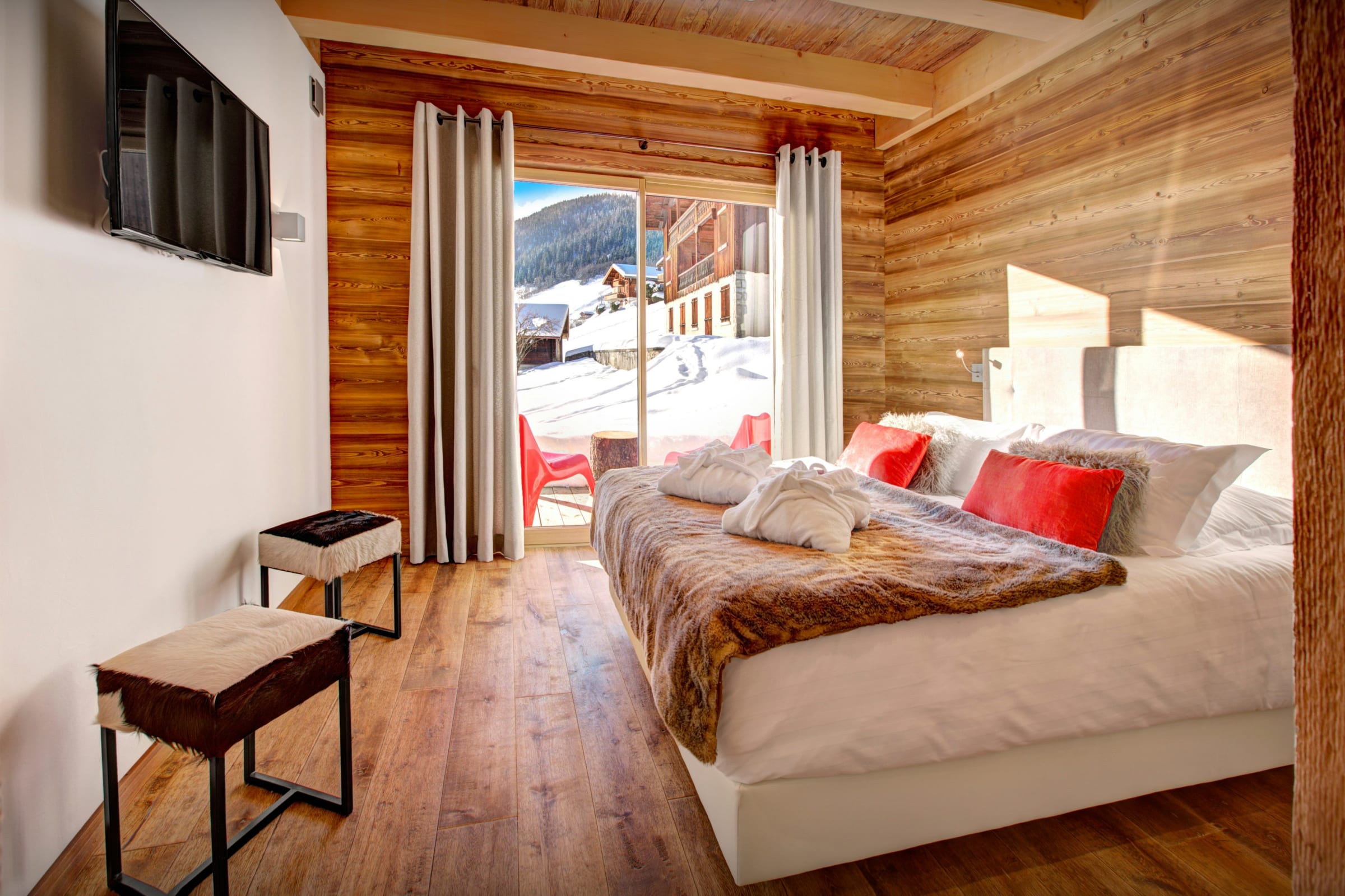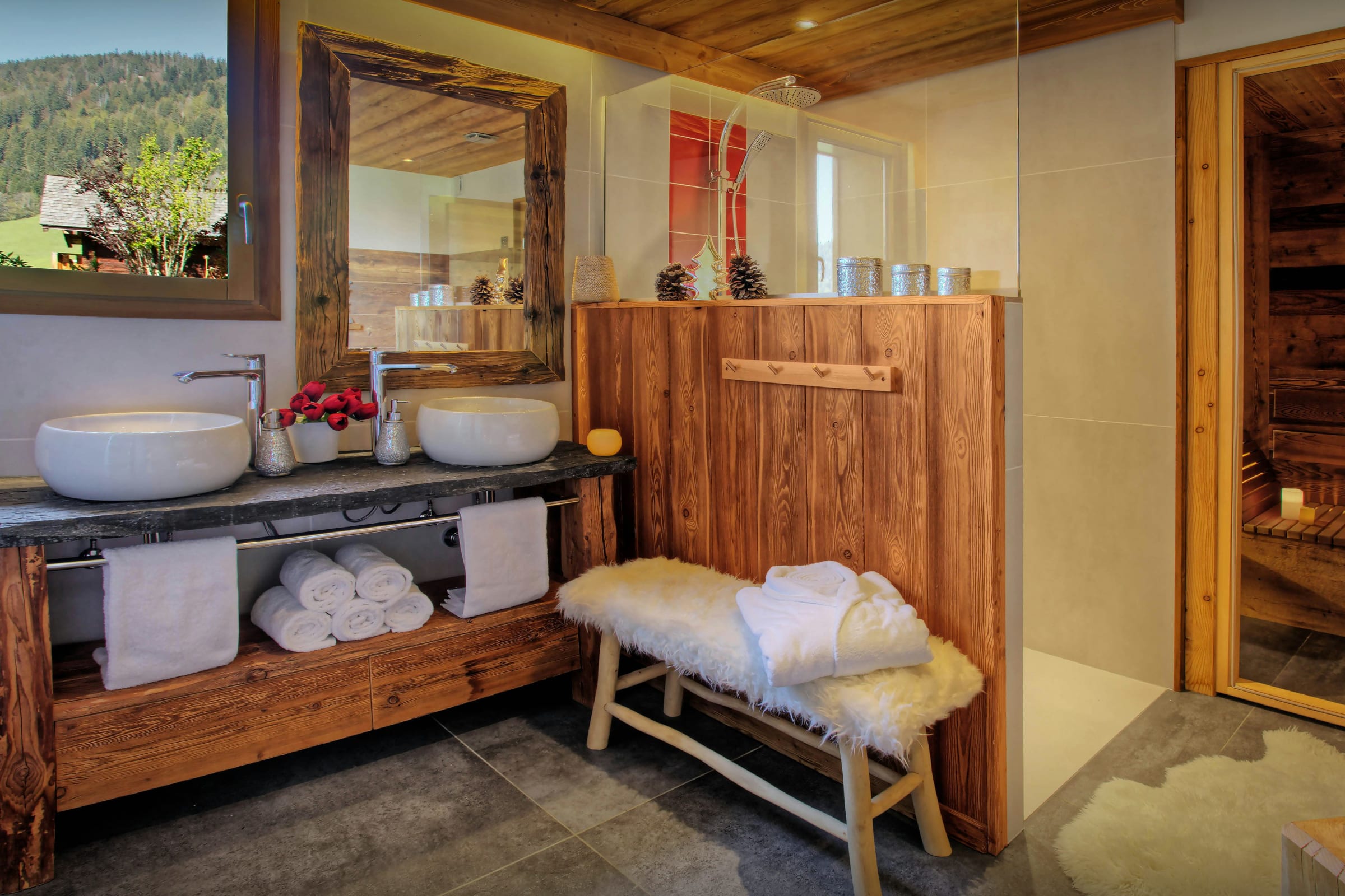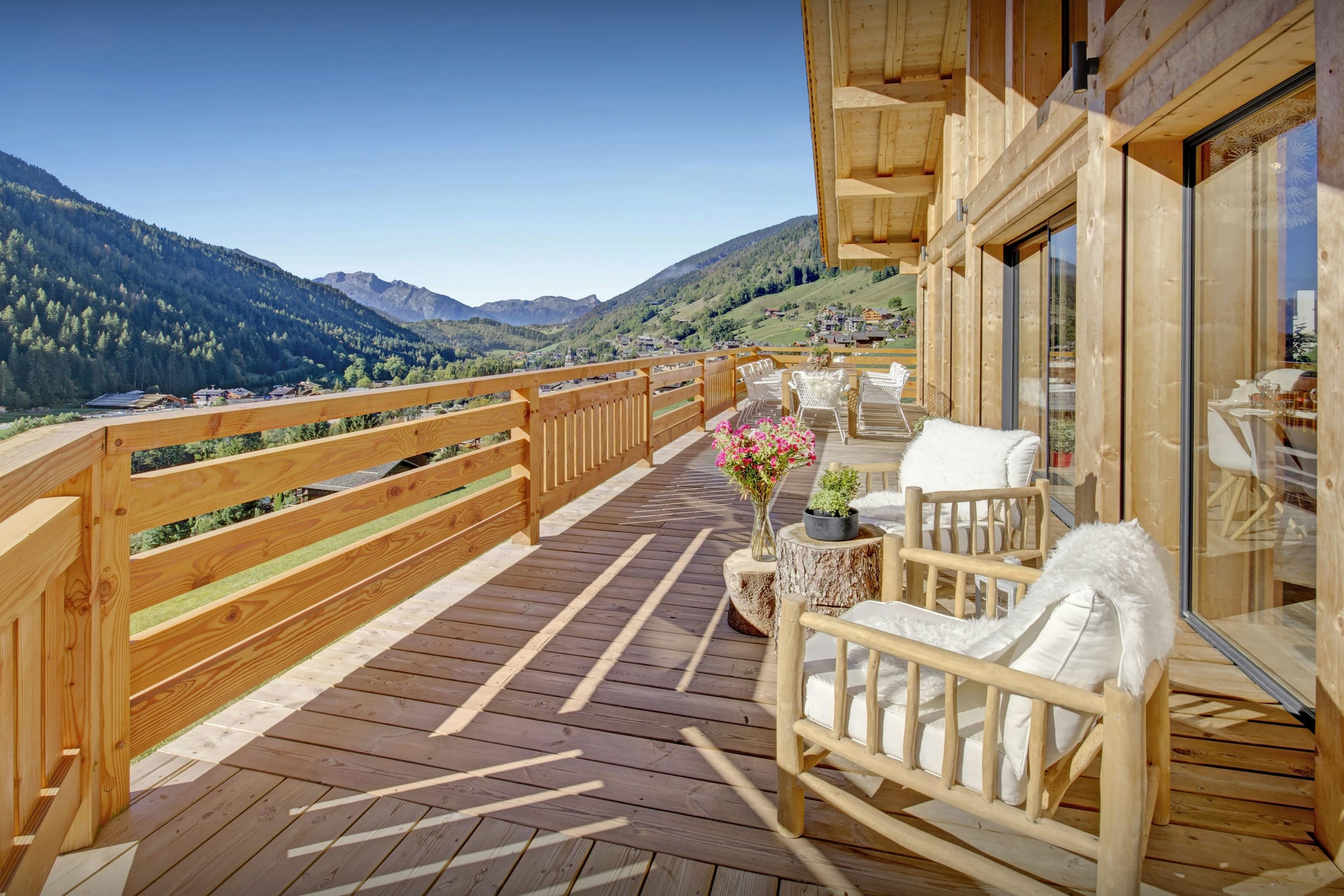 The chalet sits beautifully in the landscape; when indoors the outdoor spaces with spectacular views of the Aravis are part of the landscape of each room, views are open, the outdoor spaces are not overlooked, the chalet sits above open meadows. In fact in it’s great location, and special extra facilities such as the sheltered outdoor lounge, and the fabulous open air jacuzzi room Chalet Alti is a great place to stay all year round.