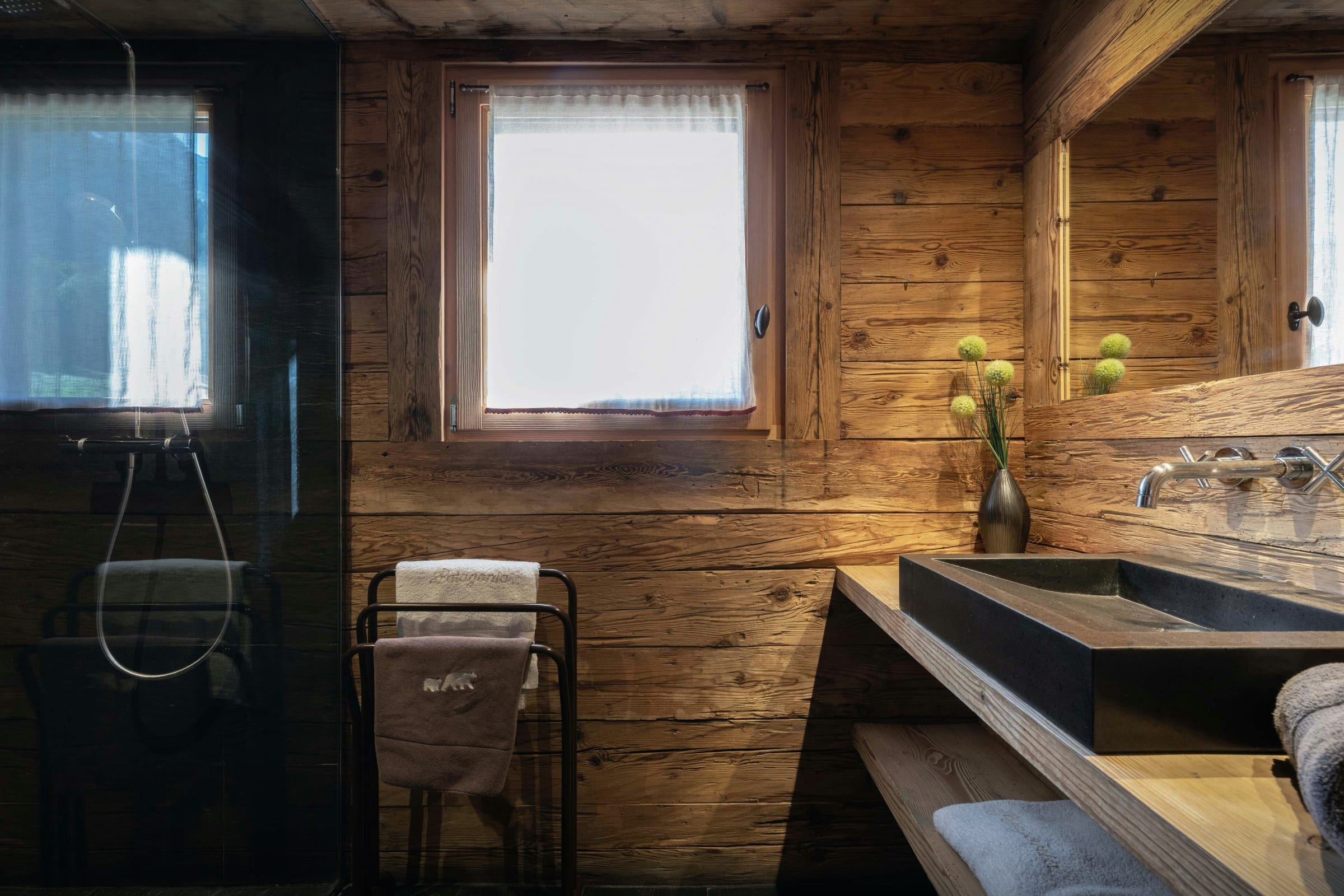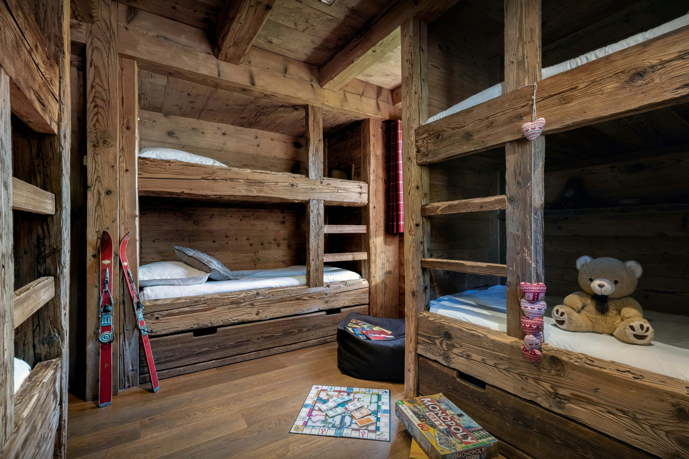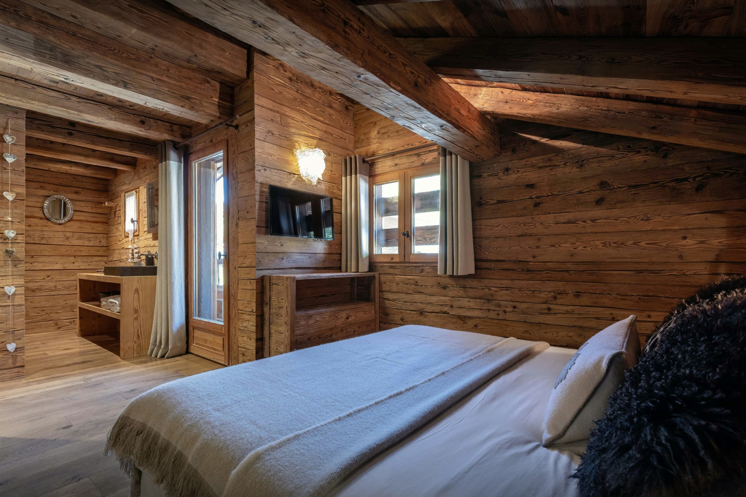 The stylish interior has been designed so that even when 12 people (8 adults max) are staying at Chalet Patagonia, everyone can find some privacy when they want it. Skilled local craftsmen were used to make much of the furniture, and the fittings are all of the highest quality. This attention to detail, combined with the chalet’s superb position close to the popular La Balme pistes, is sure to make your holiday very special.