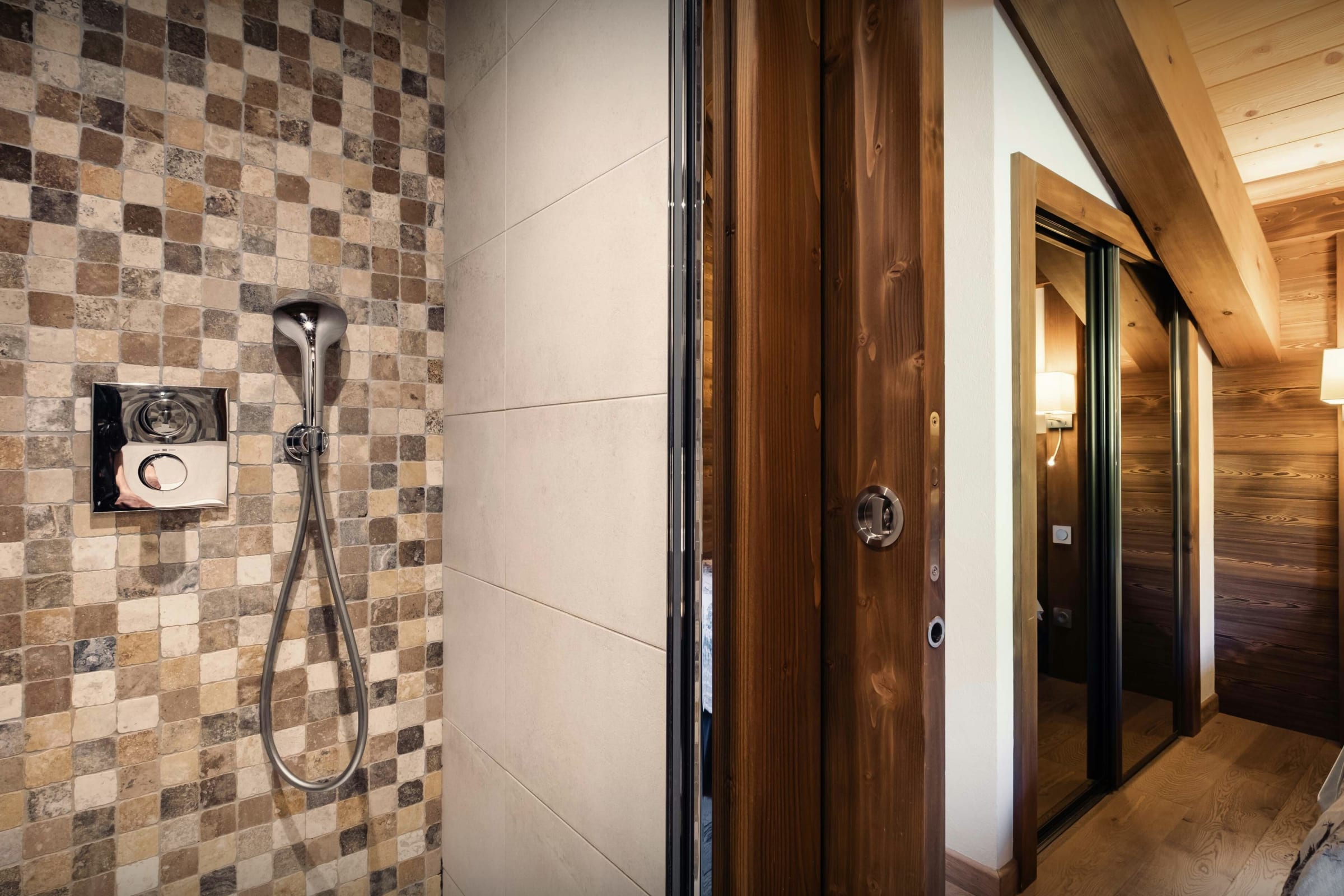 Le Peille has south facing balconies and a dining terrace to the west of the chalet from which to catch the sunset every night. There are only shower rooms in Le Peille. If you don't want to share a garage, or parking spaces this is not the property for you. The hammam is accessed via the garage, bath robes are provided.