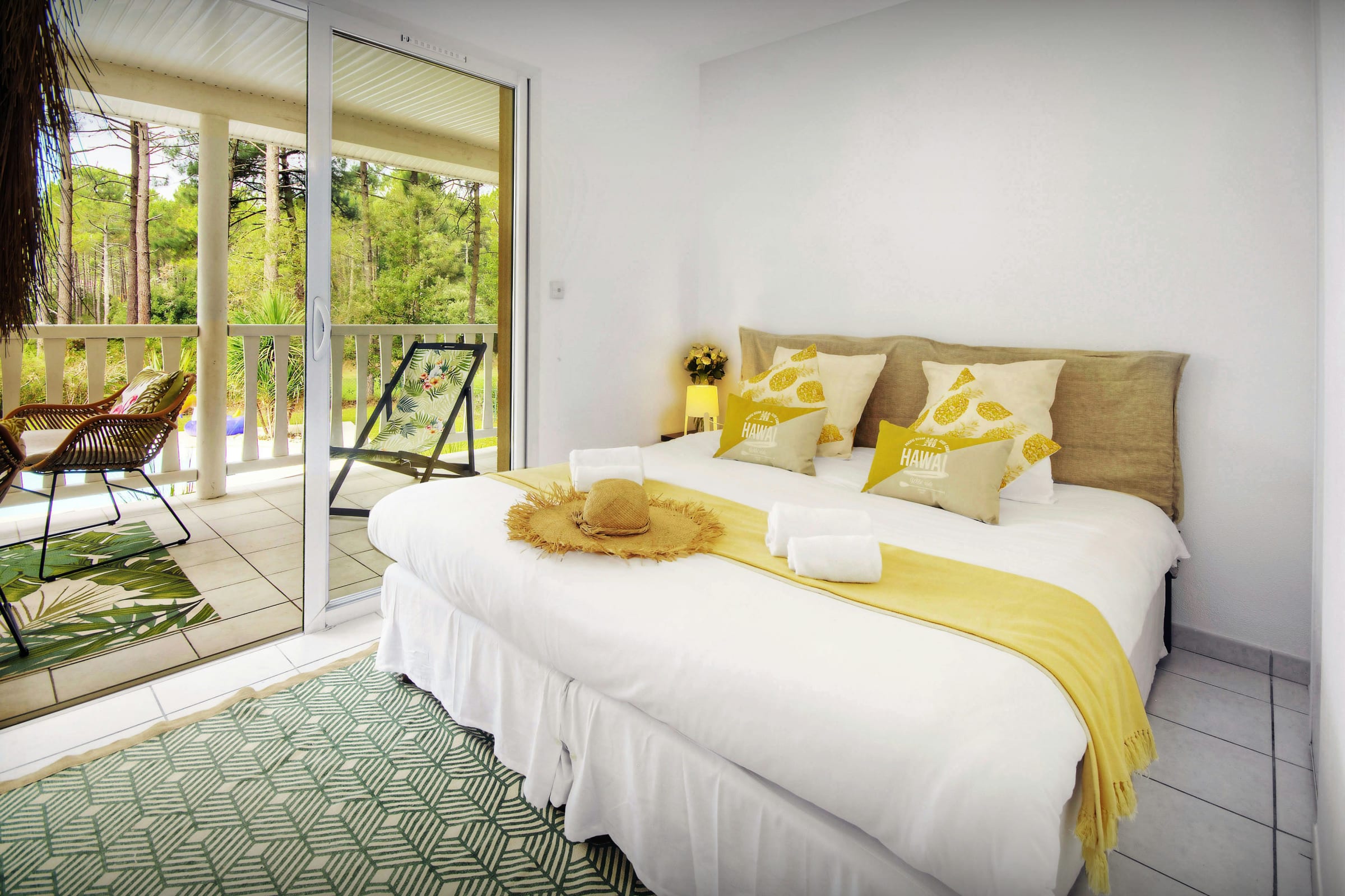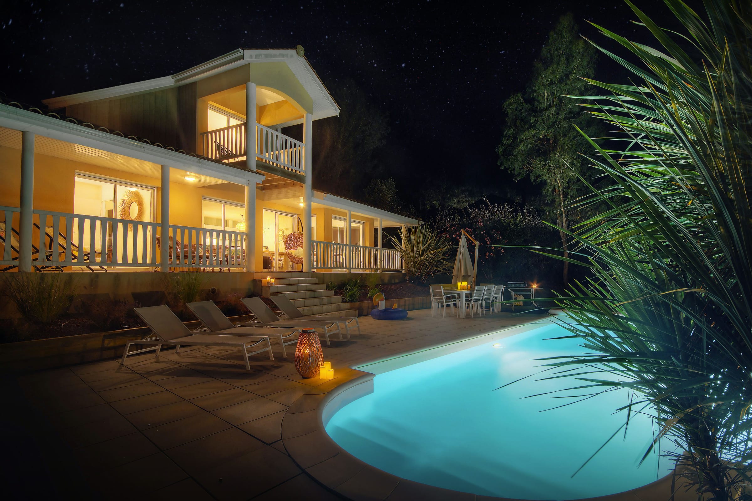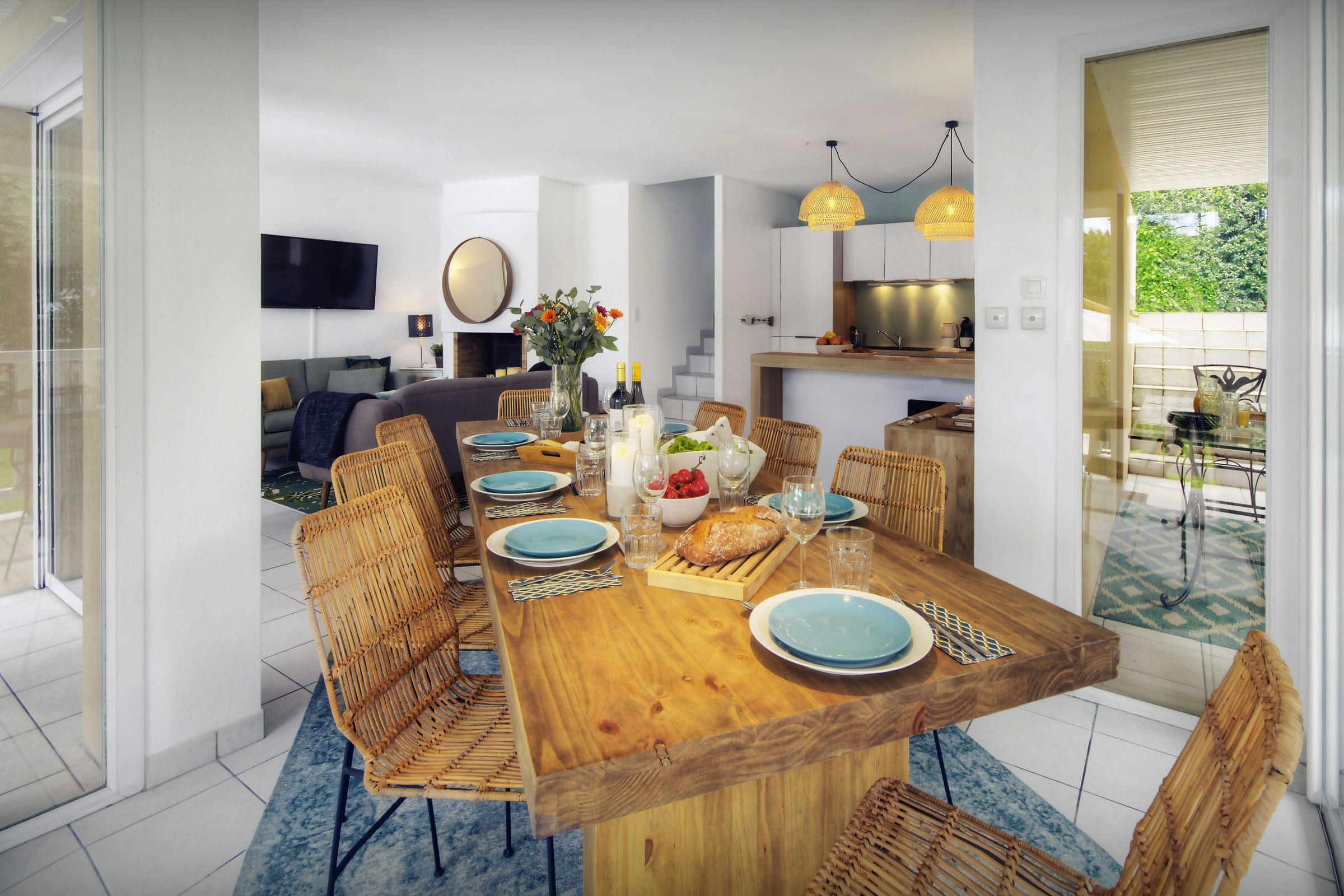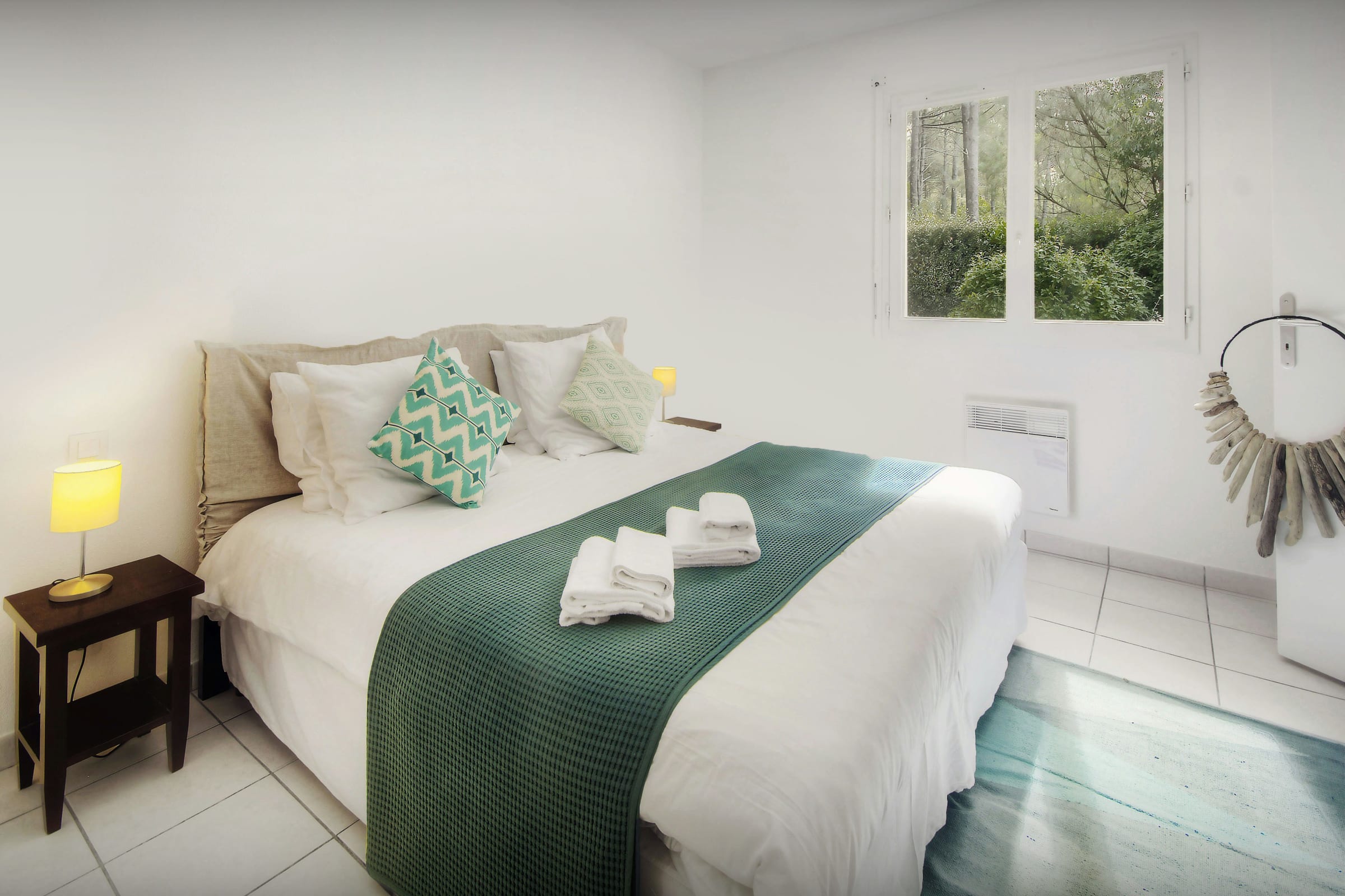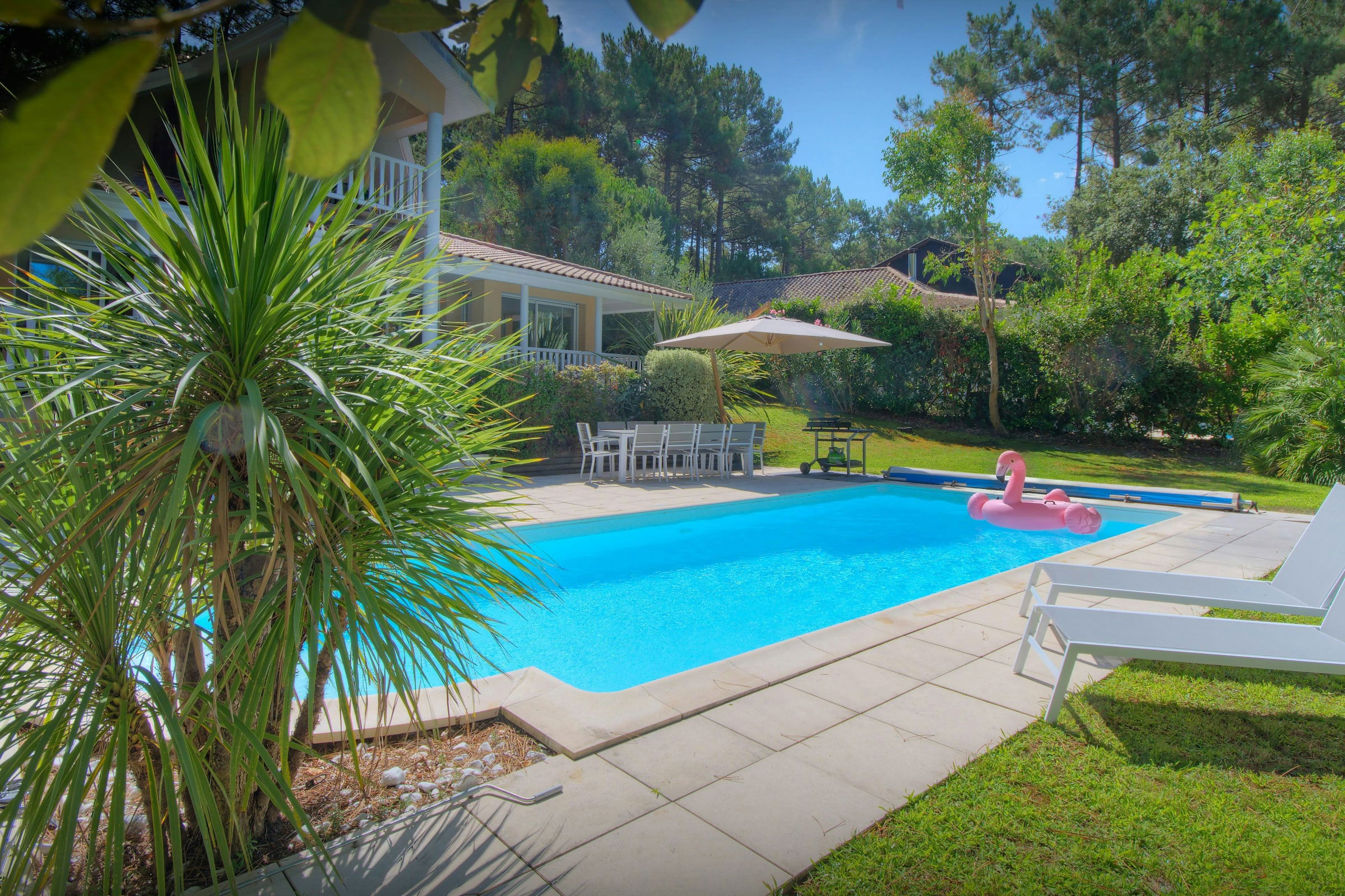 Villa Samasti is an OVO Network property. This pretty villa would comfortably suit groups of up to eight people, and covers 110m2 of floor space over three levels. It has a private outdoor pool and views across the golf course at Lacanau.