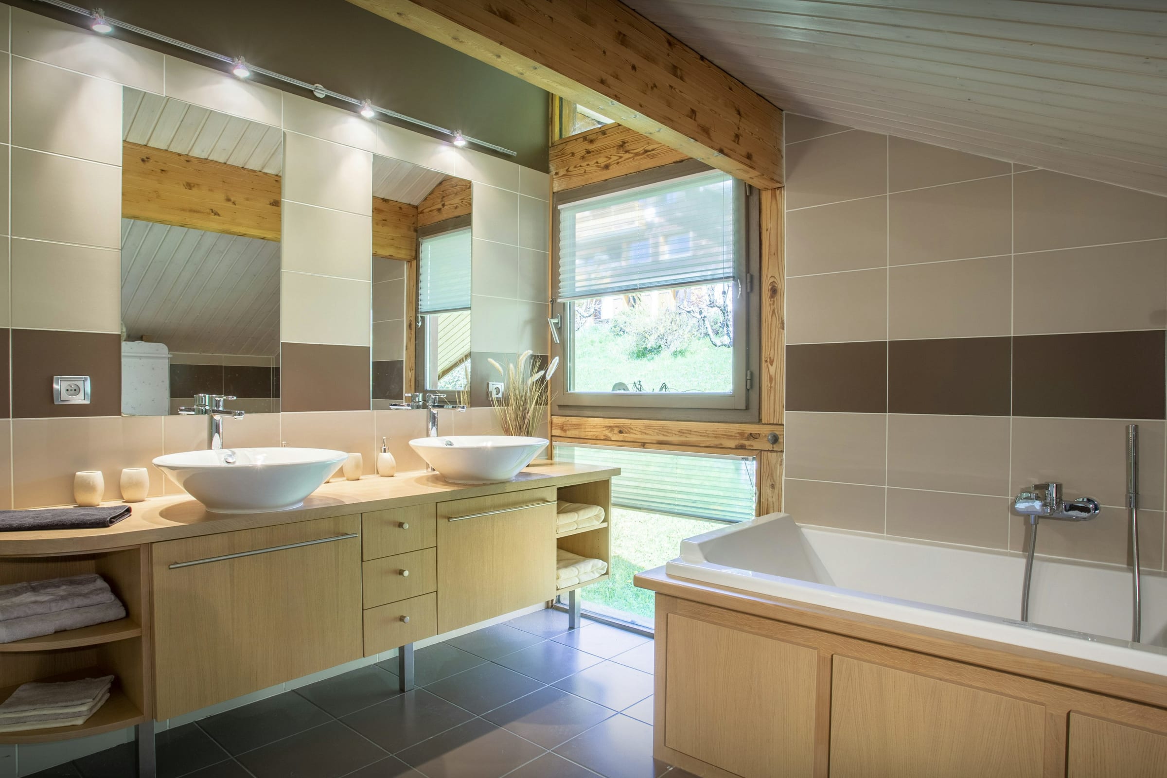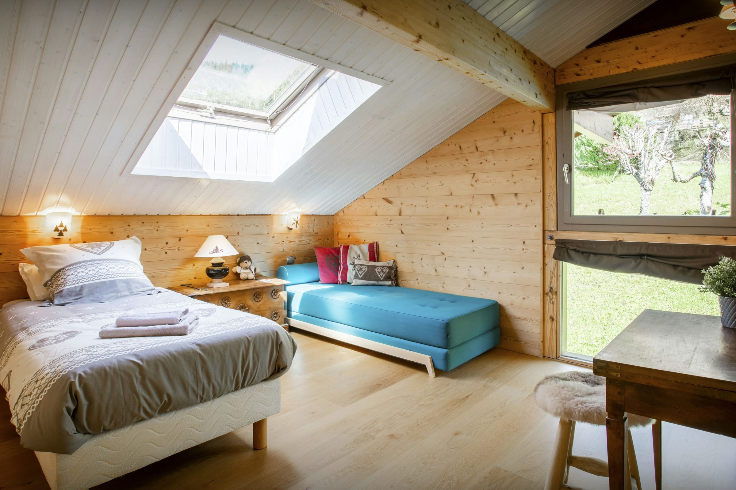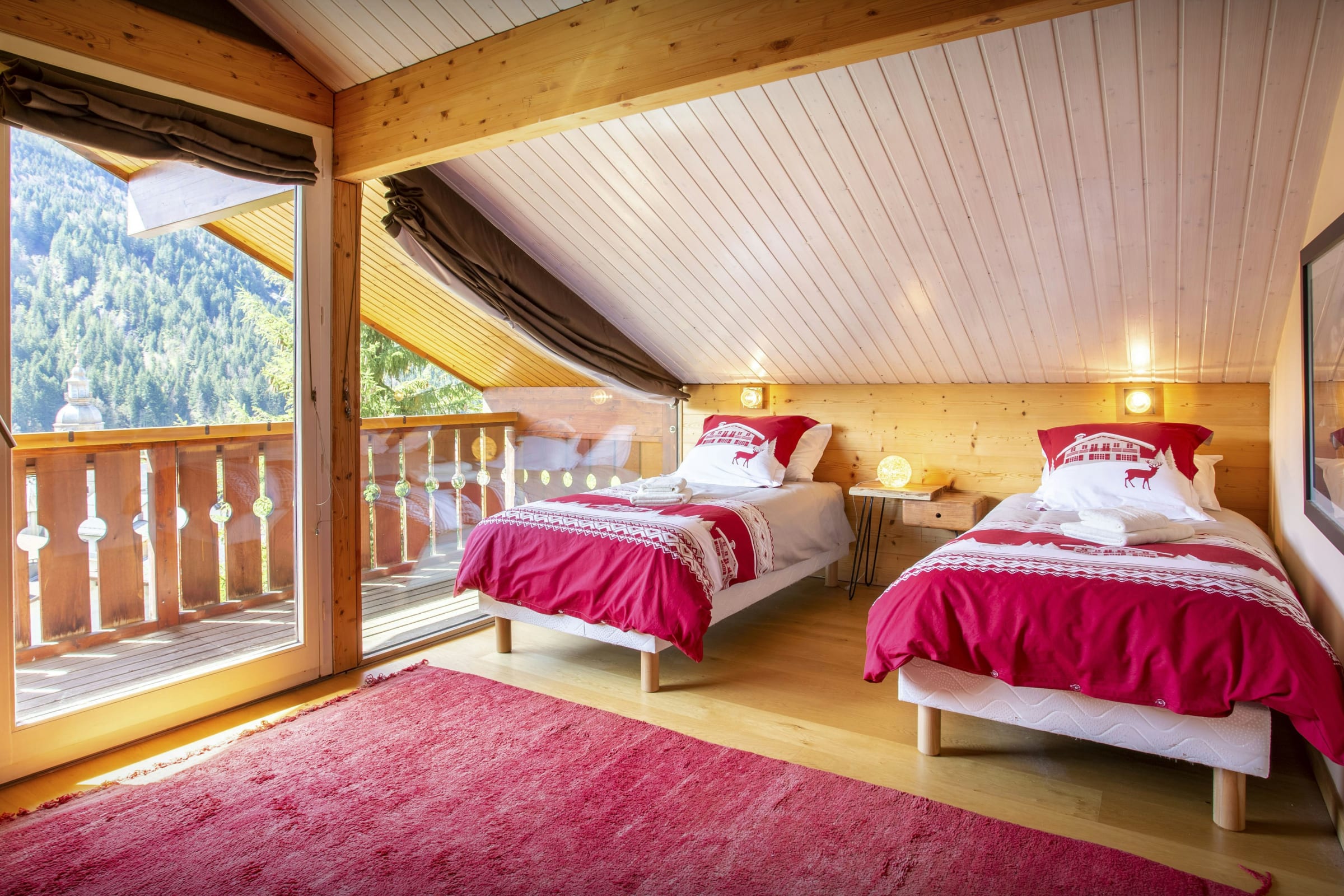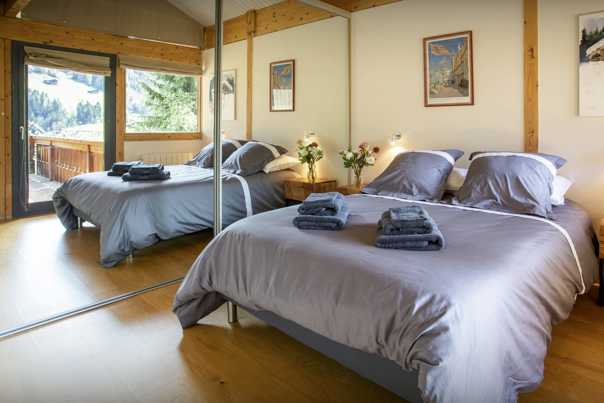 The chalet's four bedrooms are arranged over the ground and floors, but unfortunately not suited to guests with limited mobility. Two of the bedrooms have en suite bathrooms, and there's a large family bathroom which is shared by the other two rooms. Two of the bedrooms also open on to balconies - it's great to place to enjoy the coffee of the day!
