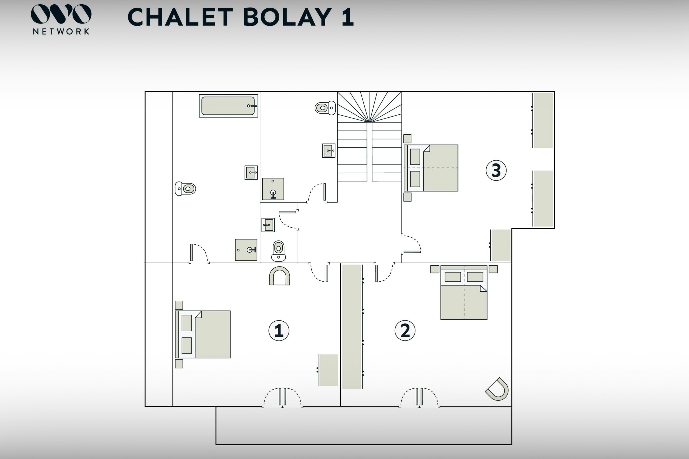 Chalet Bolay is an OVO Network property. It is a three-storey chalet for eight guests, with four bedroom and three bathrooms.