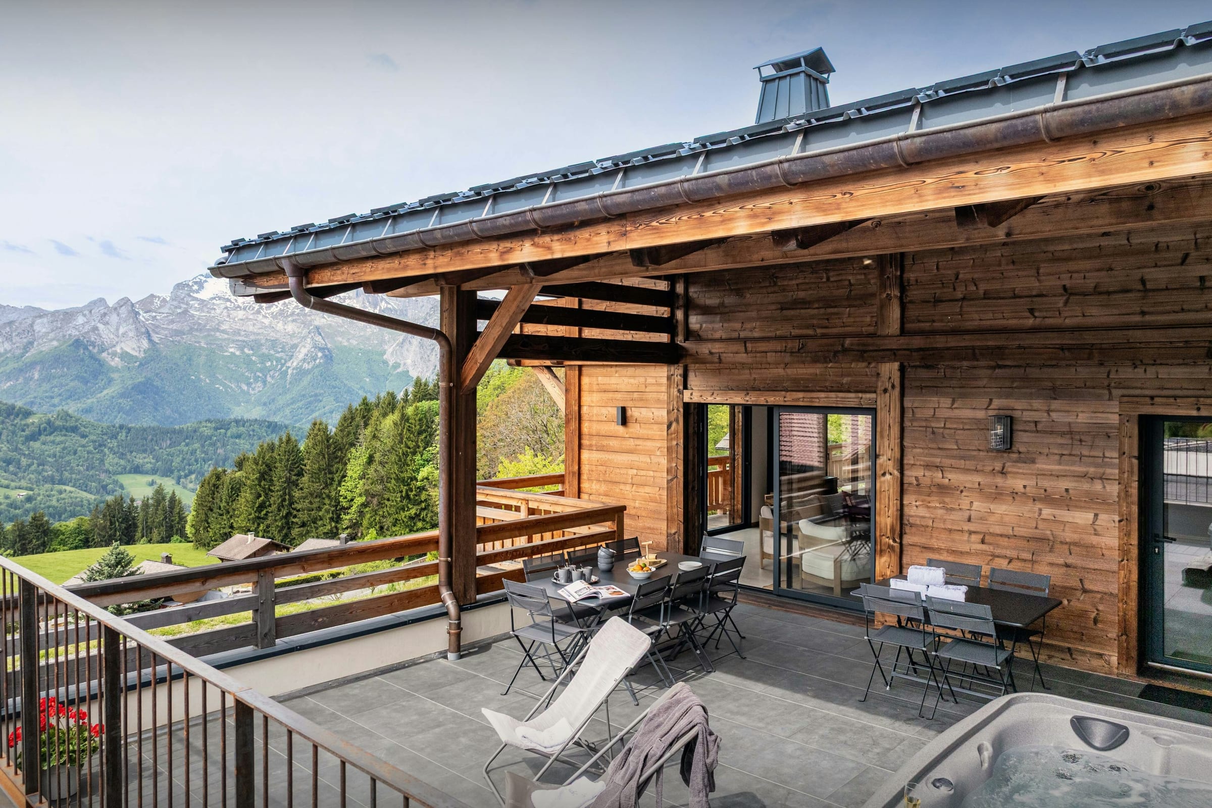 There's no better way to end a day in the mountains than with a soak in the hot tub - and the view of the Aravis mountains from the tub at Chalet Paralpin has to be one of the best!