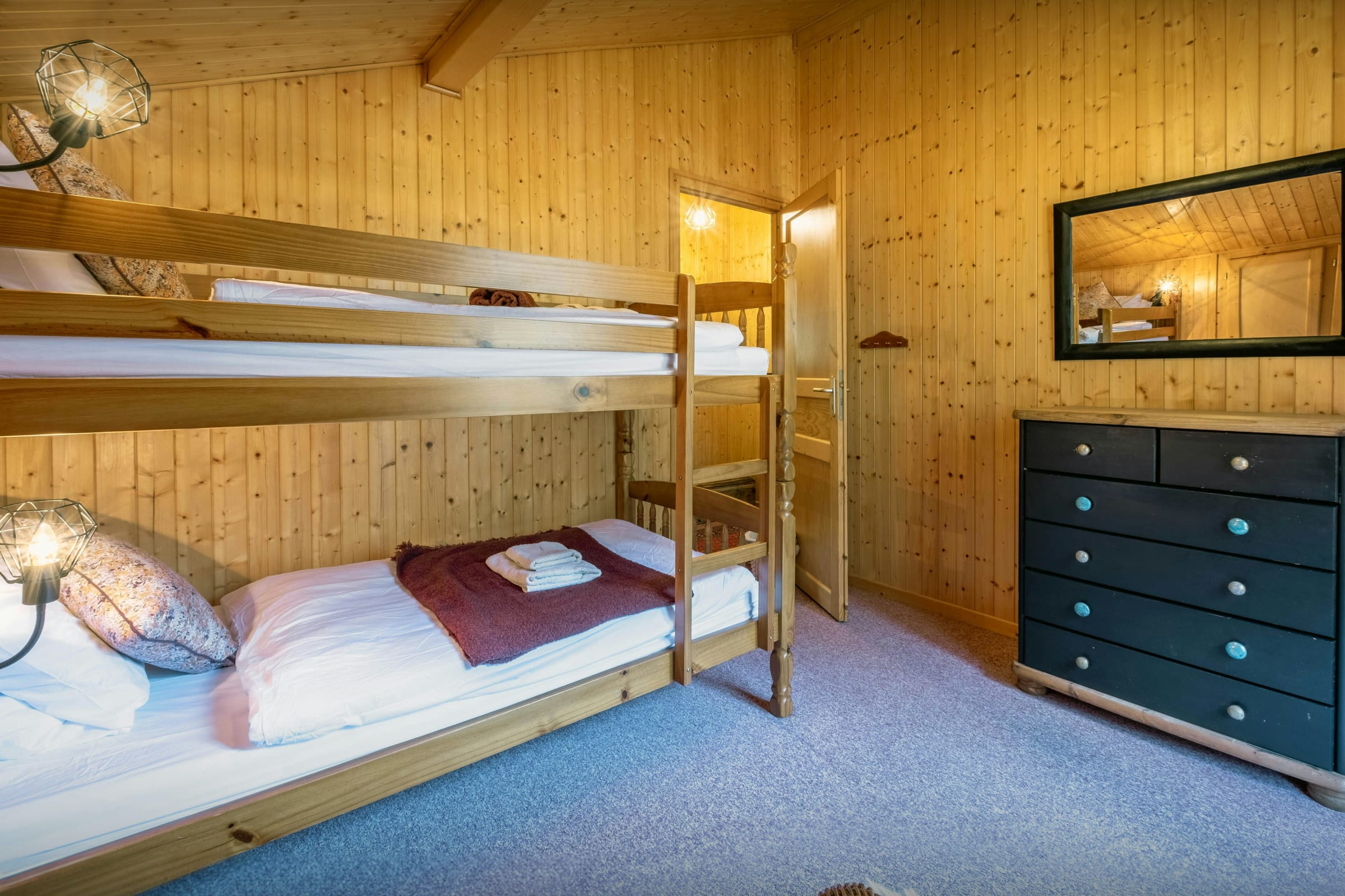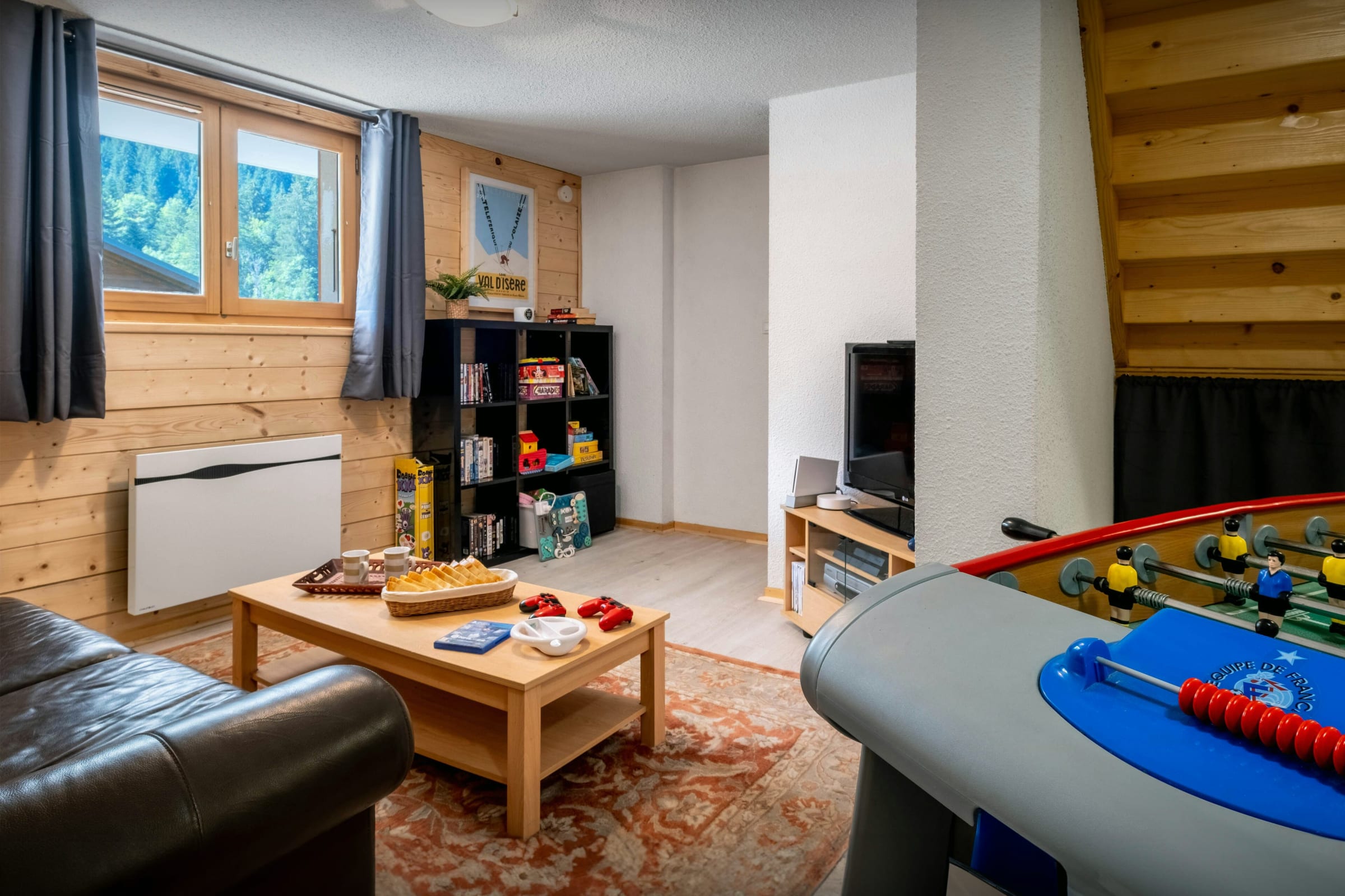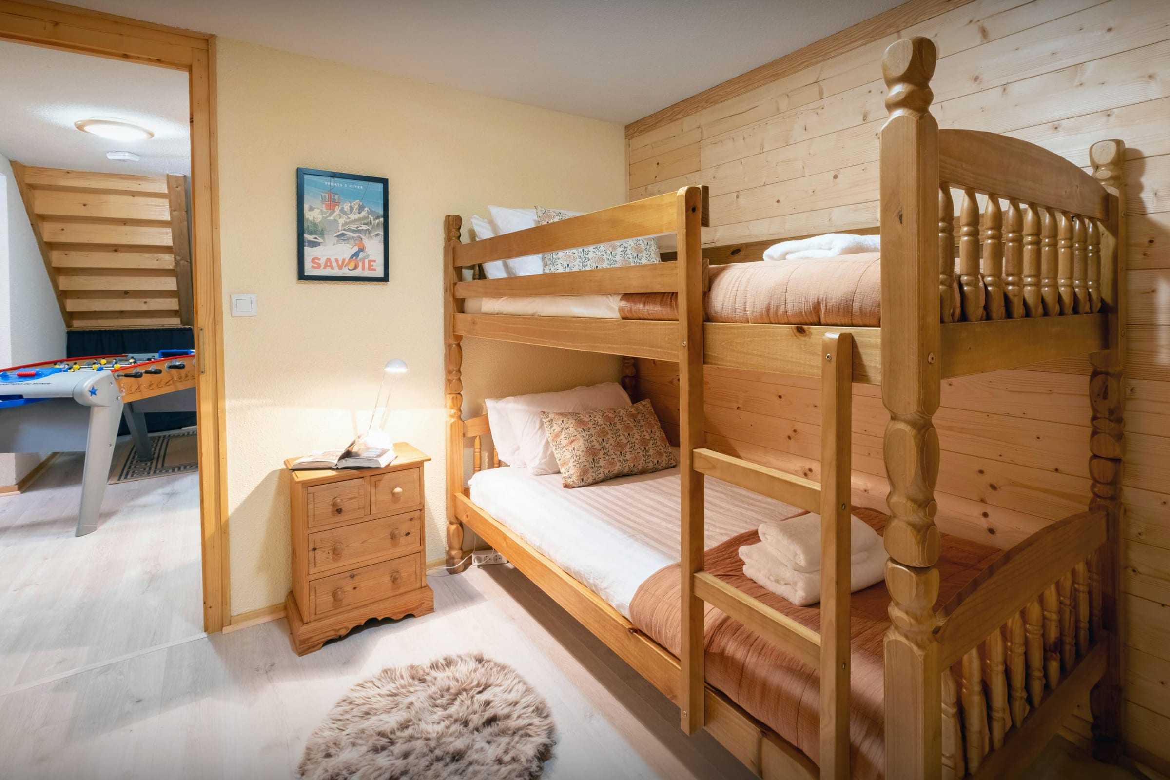 There are four bedrooms on the top floor, two with en-suite bath or shower rooms and two others with access to the balcony. There are two more bedrooms – a bunk room and one with two single beds – on the lower ground floor, along with a games/TV room and a bath room. Older children and teenagers will be thrilled to have their own space down here, where they can watch a film or play a game of table football. You may only see them at meal times!