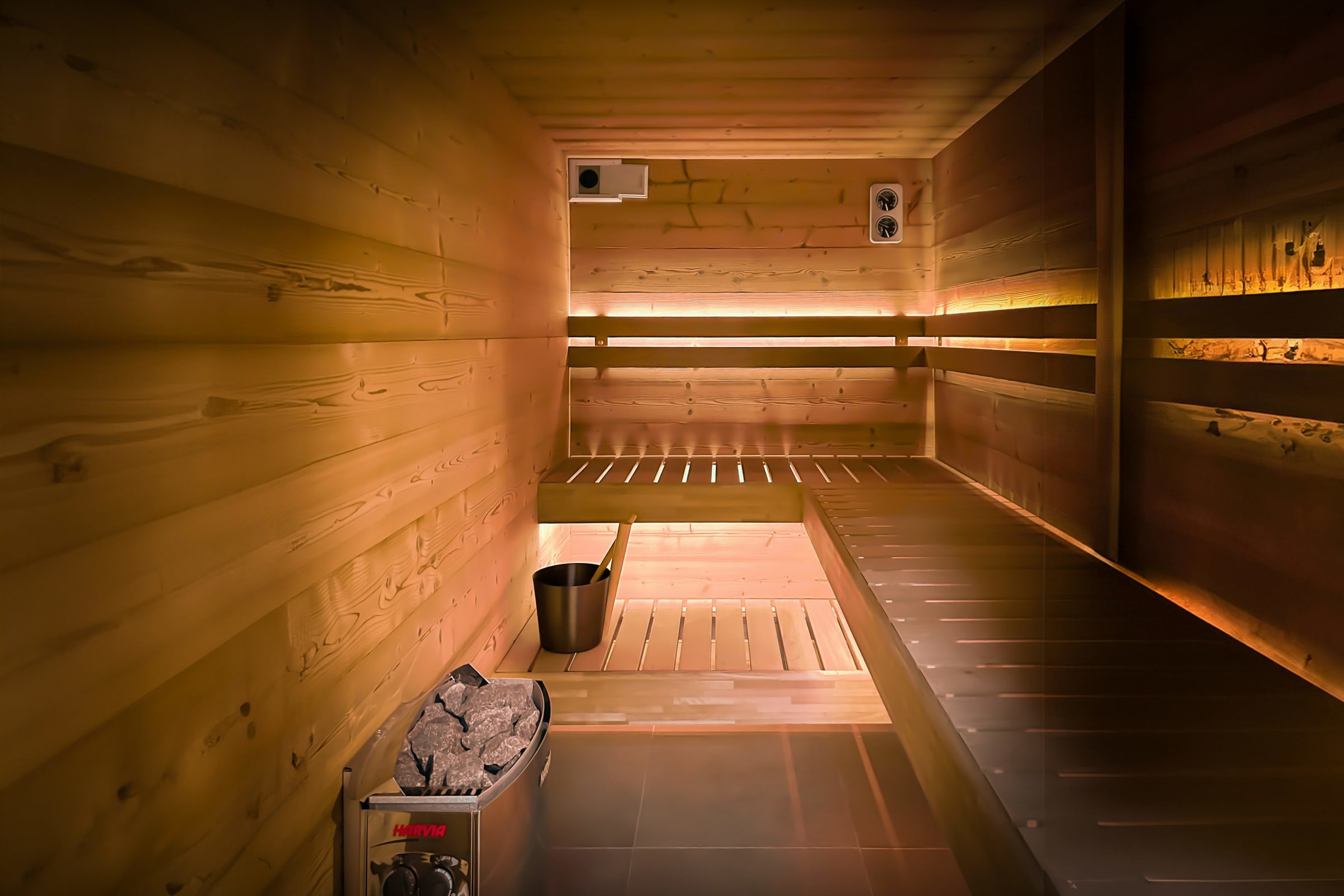 The ground floor has storage for outdoor clothes and a laundry cupboard with washer and dryer in the hall. There's also a ski room next to the garage, a traditional sauna, a WC, and a TV and games room, complete with books, board games and an Xbox game console.