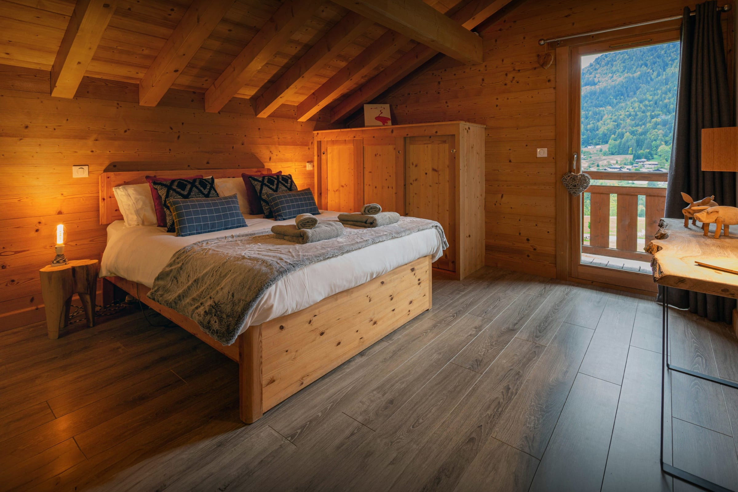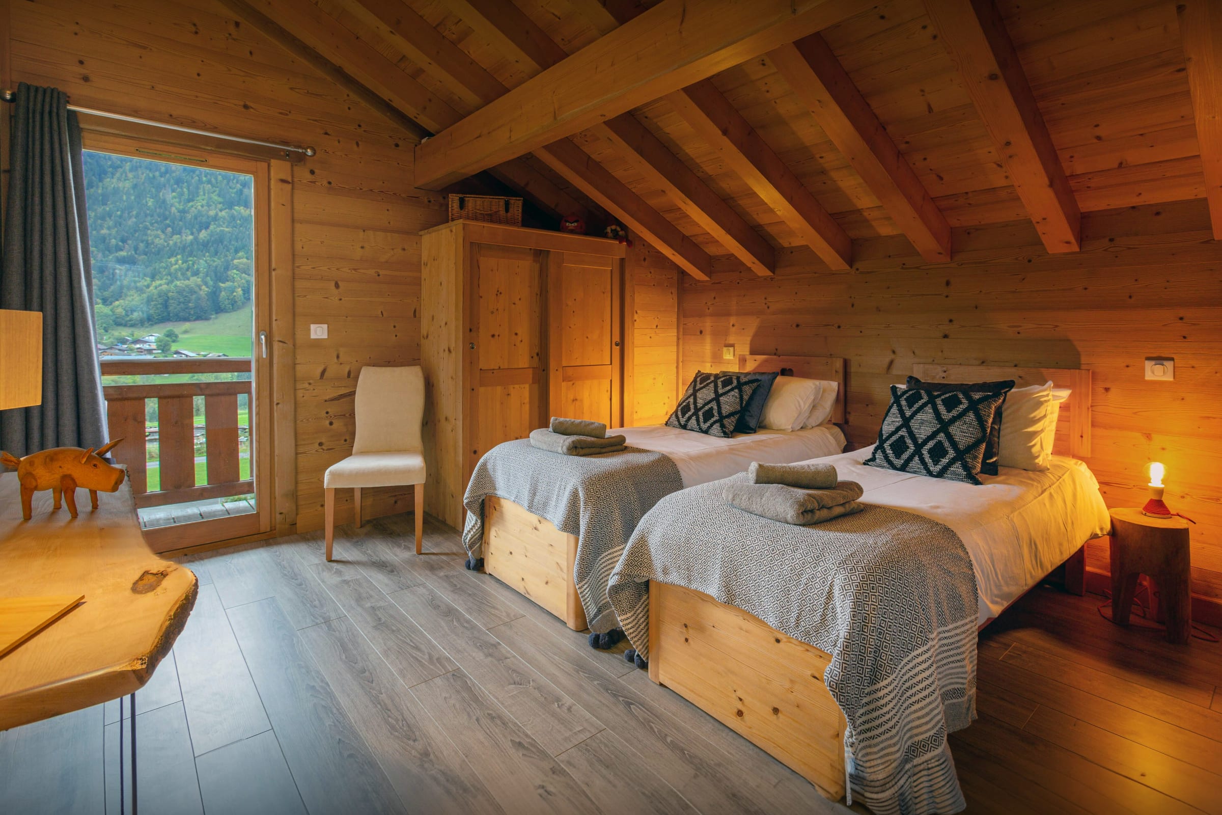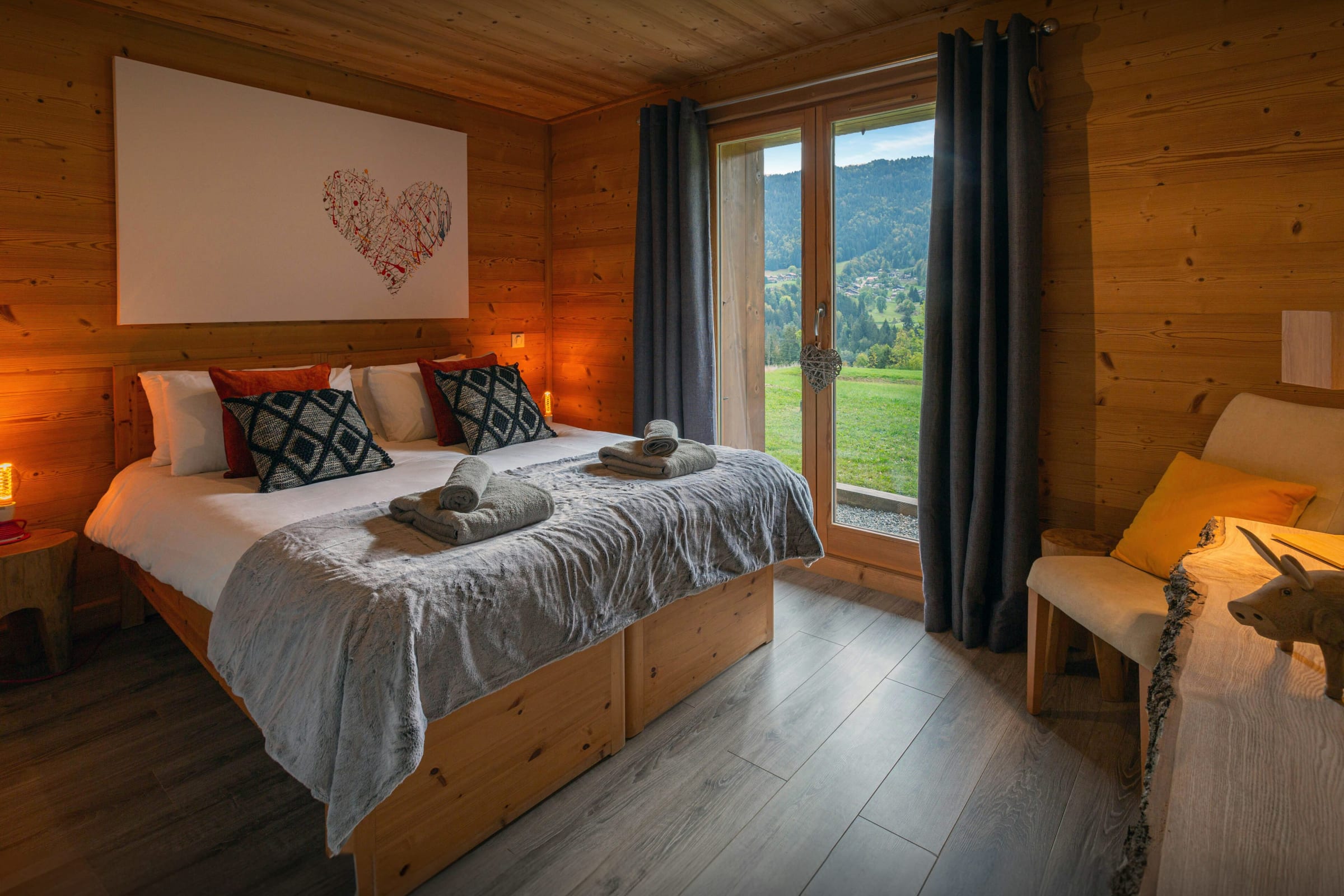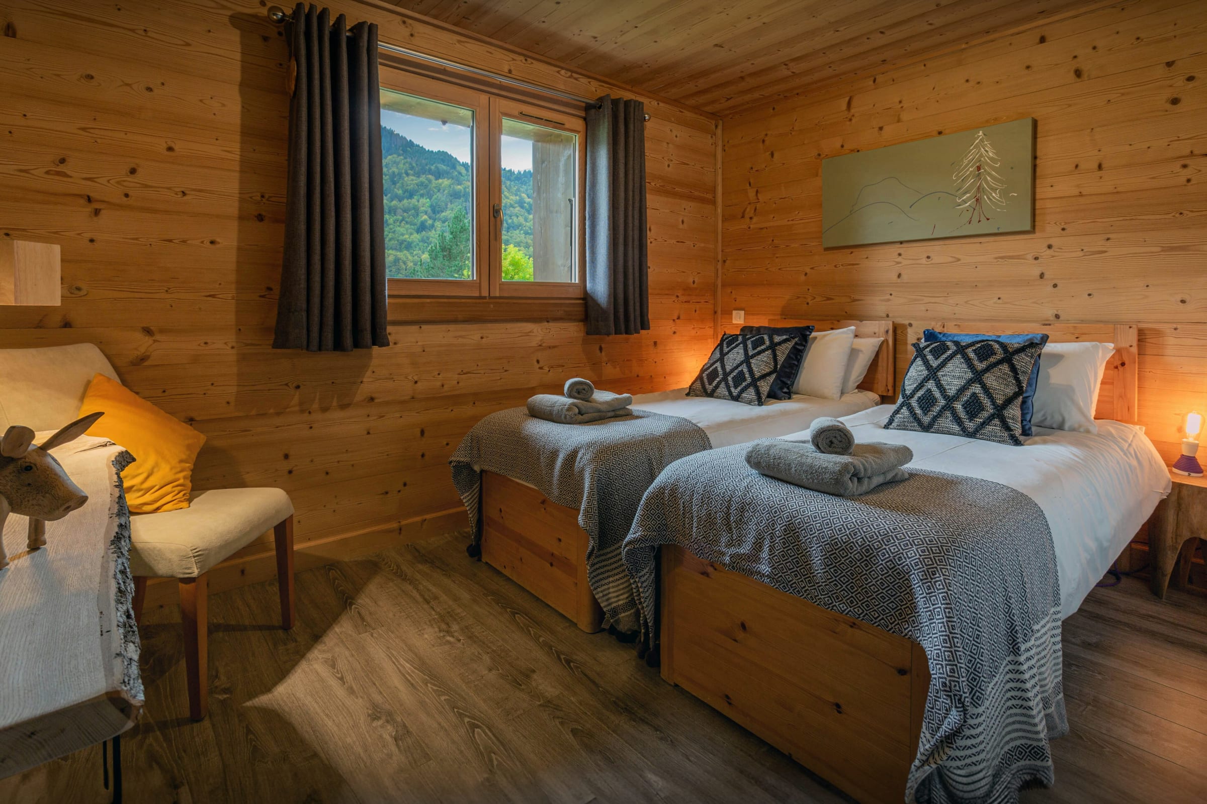 Whether you're travelling with friends or family, Chalet de Nantaux is well-designed to cater for all ages. There are four double en suite bedrooms, three of which can be arranged with kingsize or two single beds. Some of them also have access to the hot tub terrace or the balcony, too! Two families booking together will appreciate that two bedrooms are on the top floor and two on the lower ground floor, separated by the living area. It gives both groups privacy, with the opportunity to get together for meals.