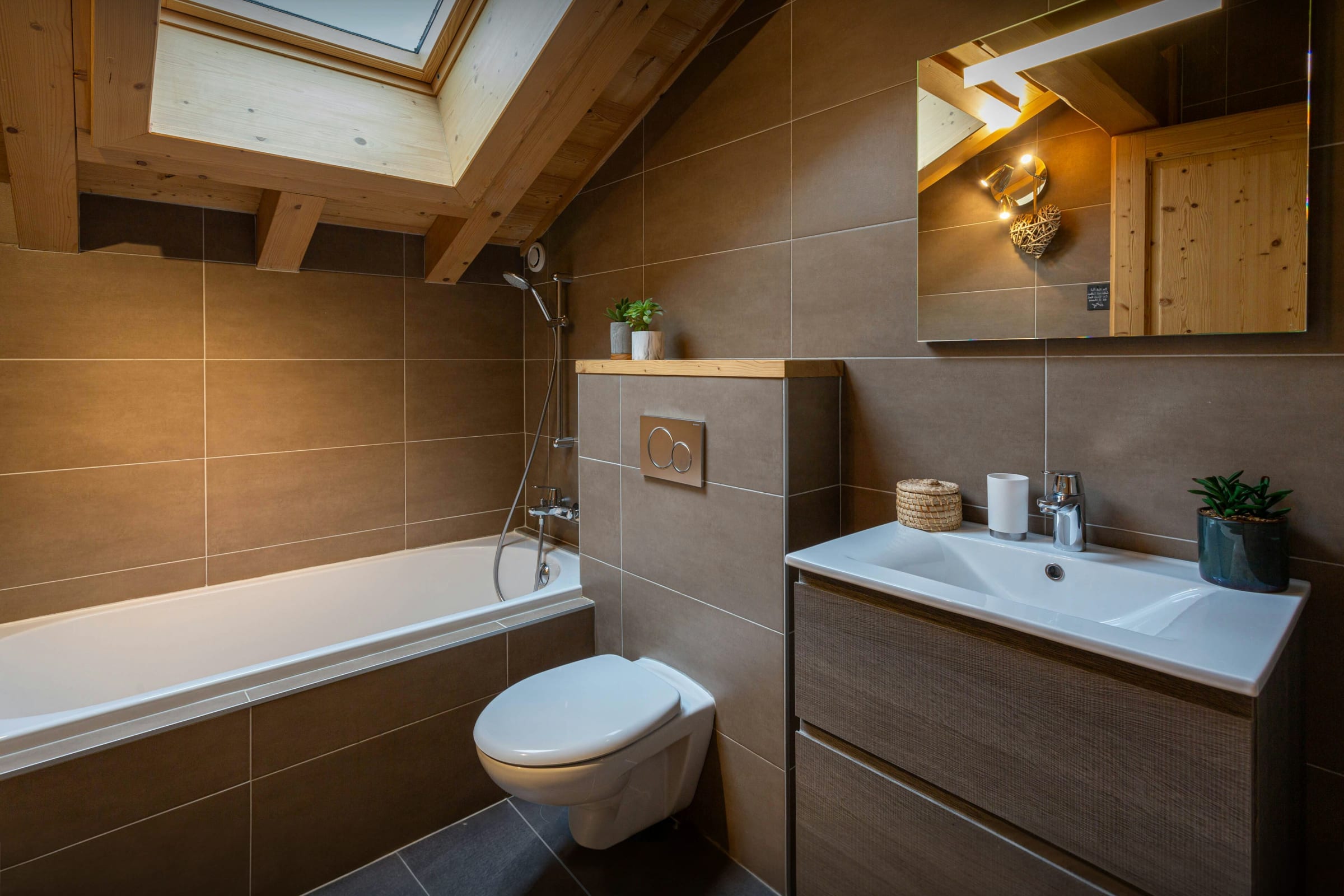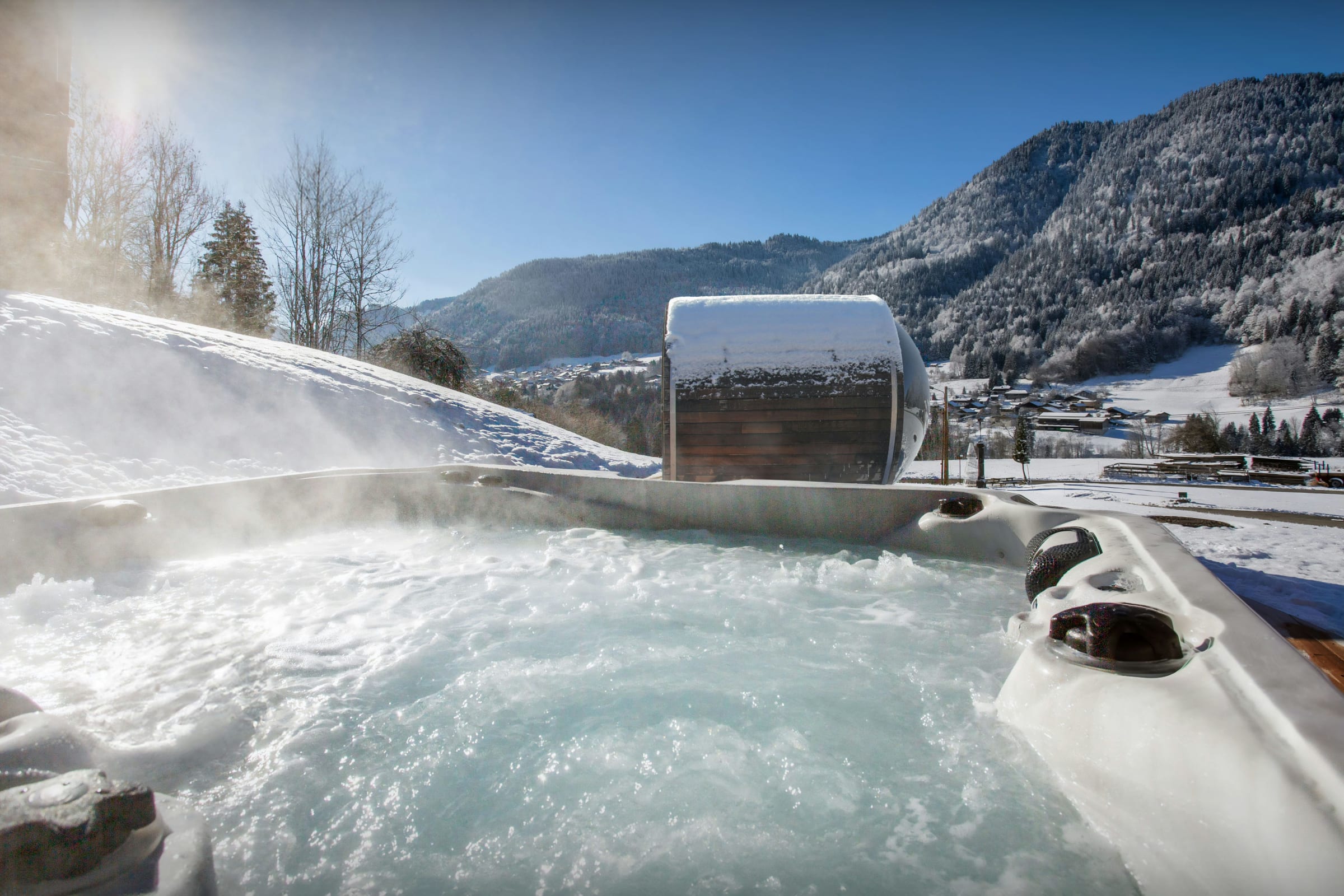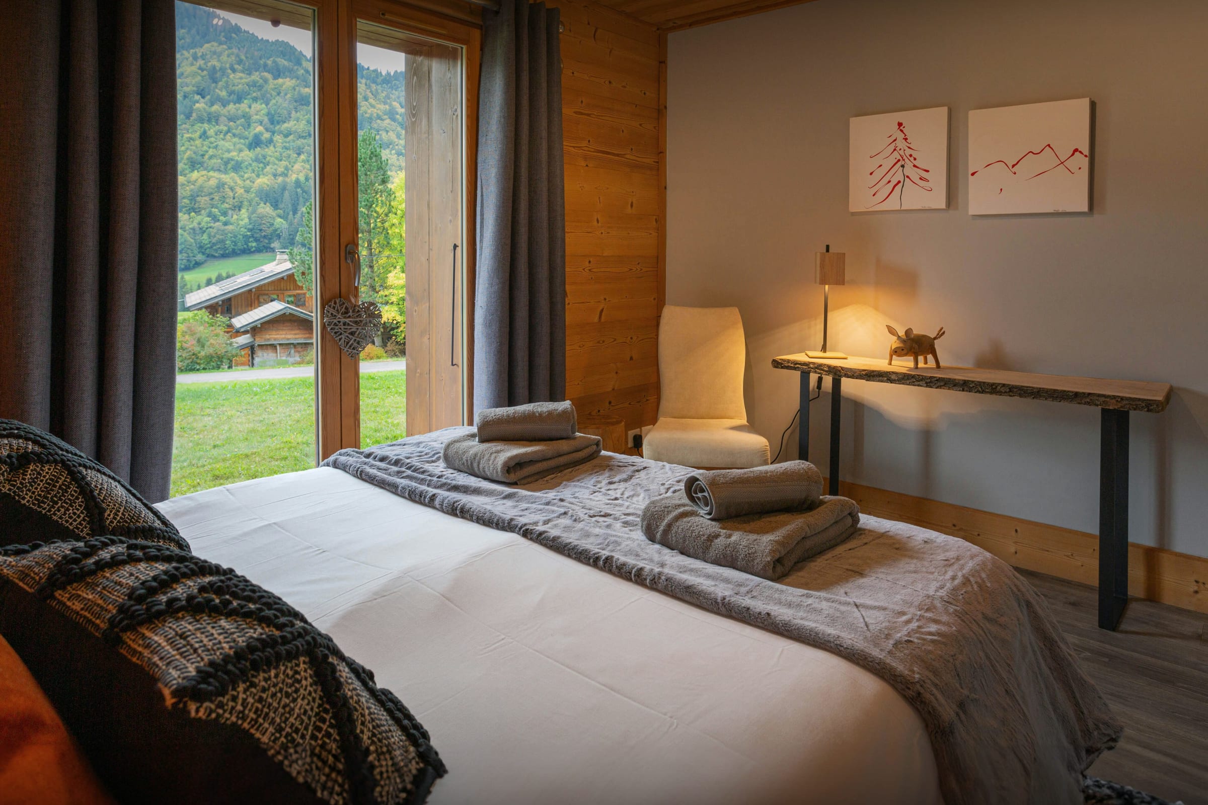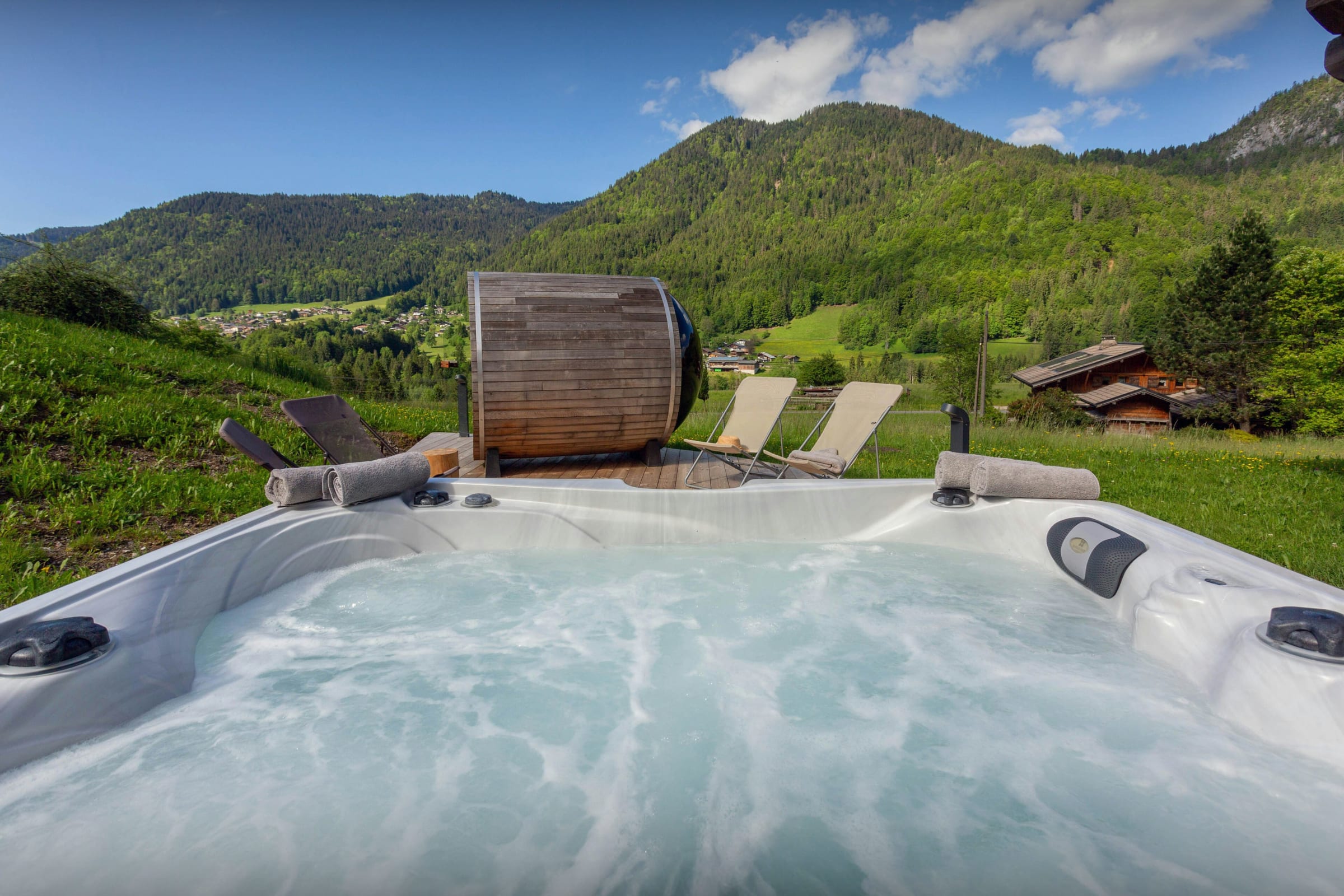 Whether you're travelling with friends or family, Chalet de Nantaux is well-designed to cater for all ages. There are four double en suite bedrooms, three of which can be arranged with kingsize or two single beds. Some of them also have access to the hot tub terrace or the balcony, too! Two families booking together will appreciate that two bedrooms are on the top floor and two on the lower ground floor, separated by the living area. It gives both groups privacy, with the opportunity to get together for meals.